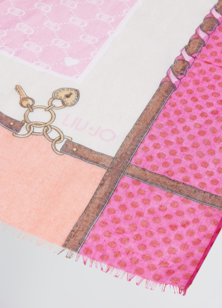Stola stampata, motivo a pois e grafico con logo, bordi sfrangiati, combina colori e motivi grafici per trasformare ogni look in una dichiarazione di stile