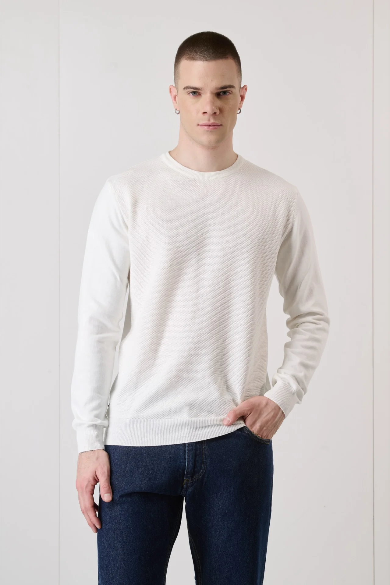 Il maglioncino Punto Riso รจ realizzato in 100% puro cotone. Vestibilitร perfetta e morbidezza ne fanno un capo adatto a ogni situazione, in grado di garantirti il massimo comfort e uno stile unico.