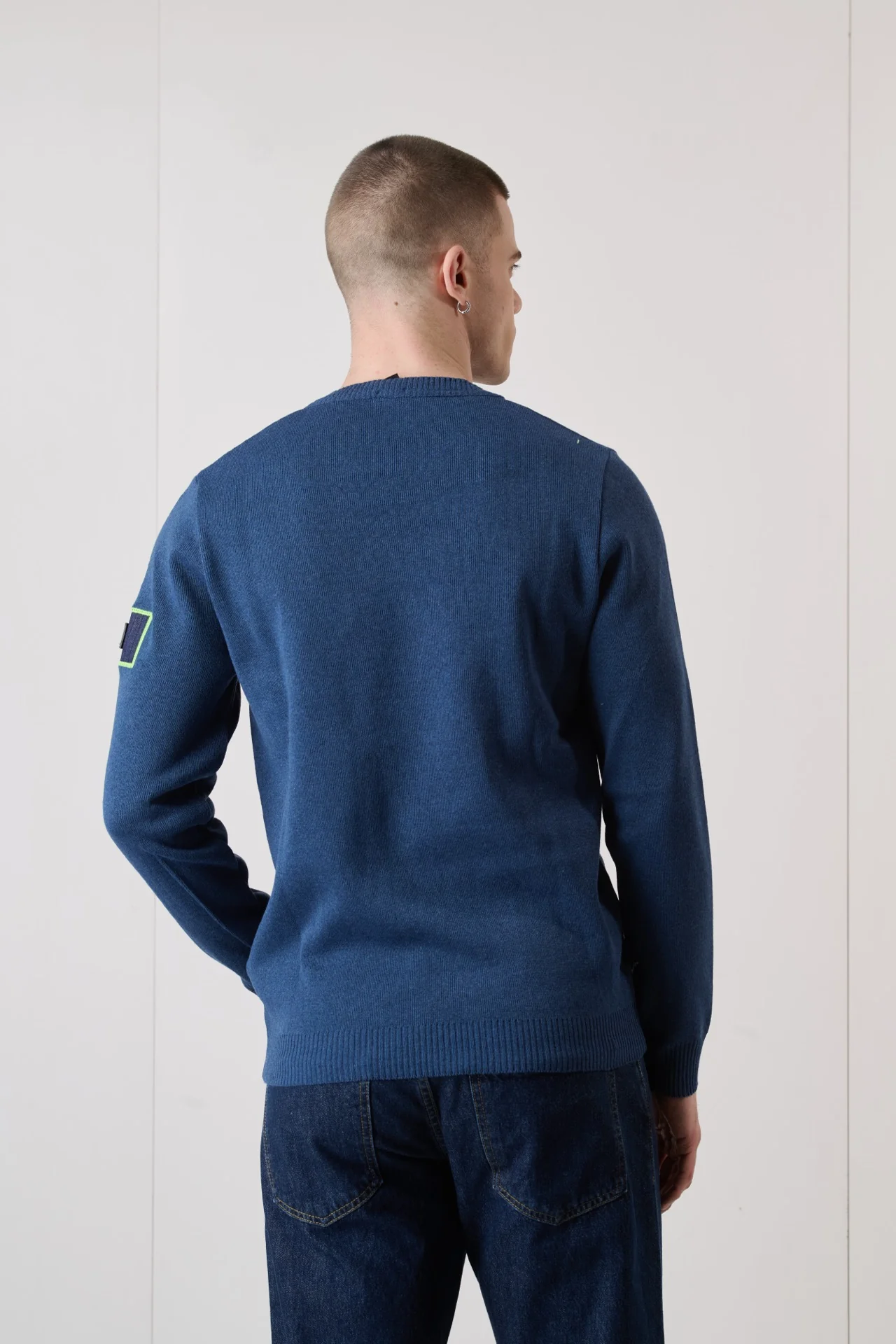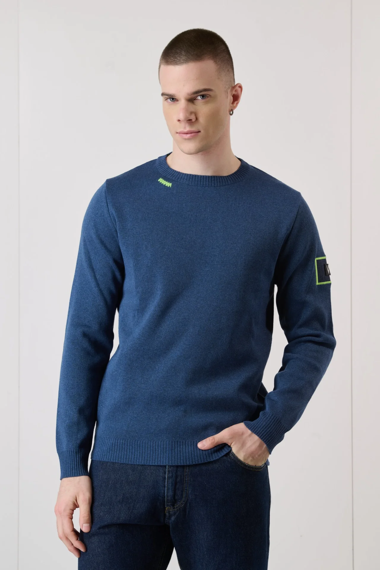 Maglioncino Punto Stoffa Jeans con Patchwork ricamata in tessuto V2
