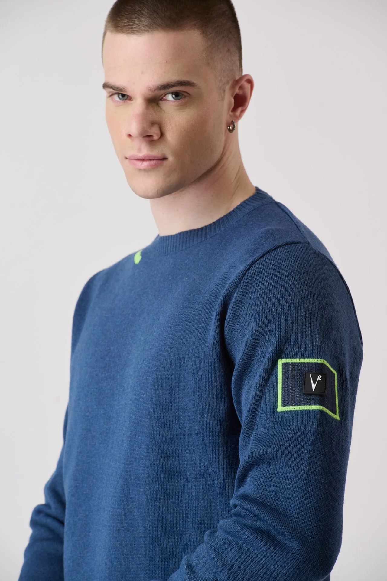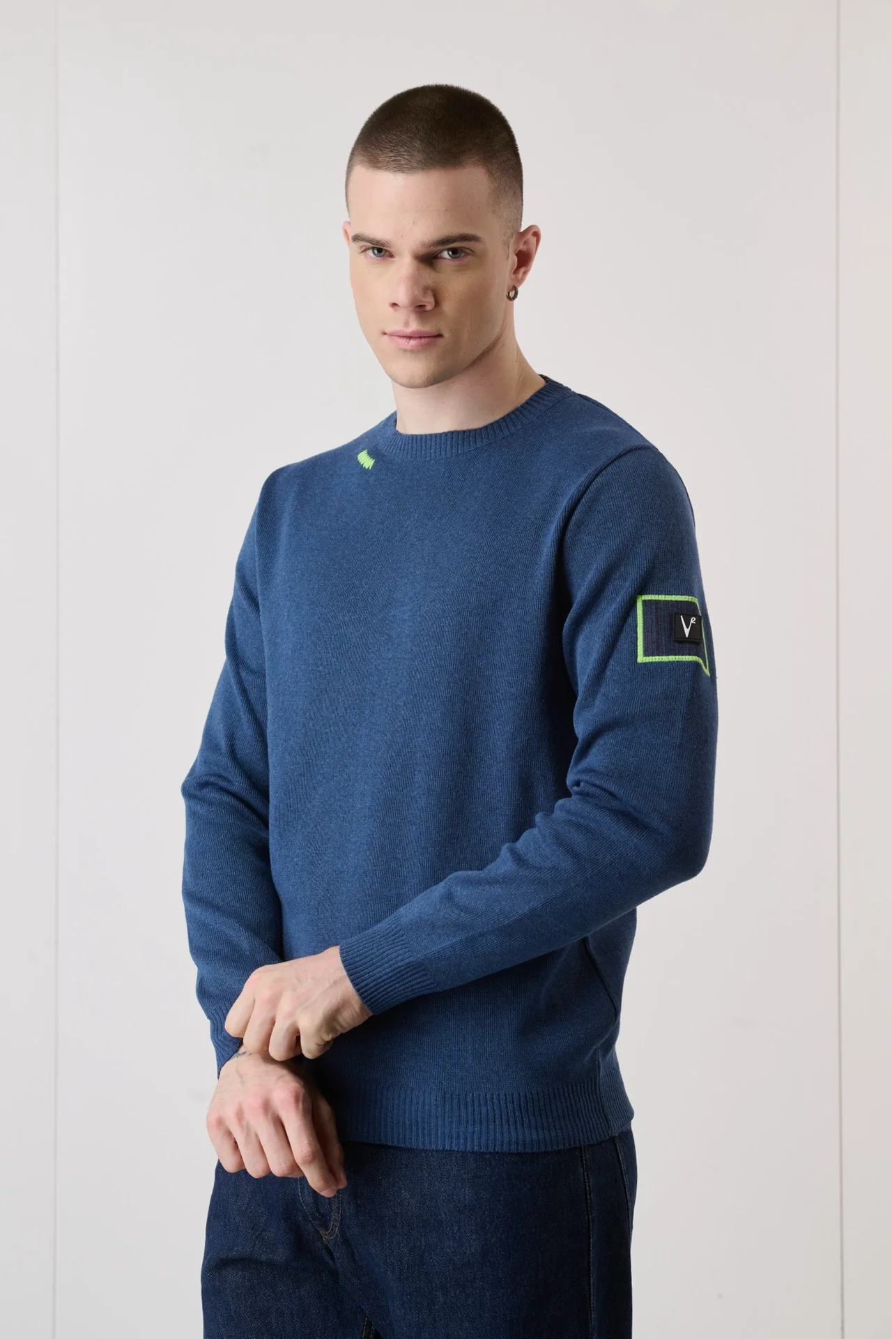 Dai un boost al tuo look casual con il maglioncino in punto stoffa. I dettagli sartoriali unici, come i ricami sul collo e la patch laterale in tessuto V2, lo rendono un pezzo originale e di tendenza.