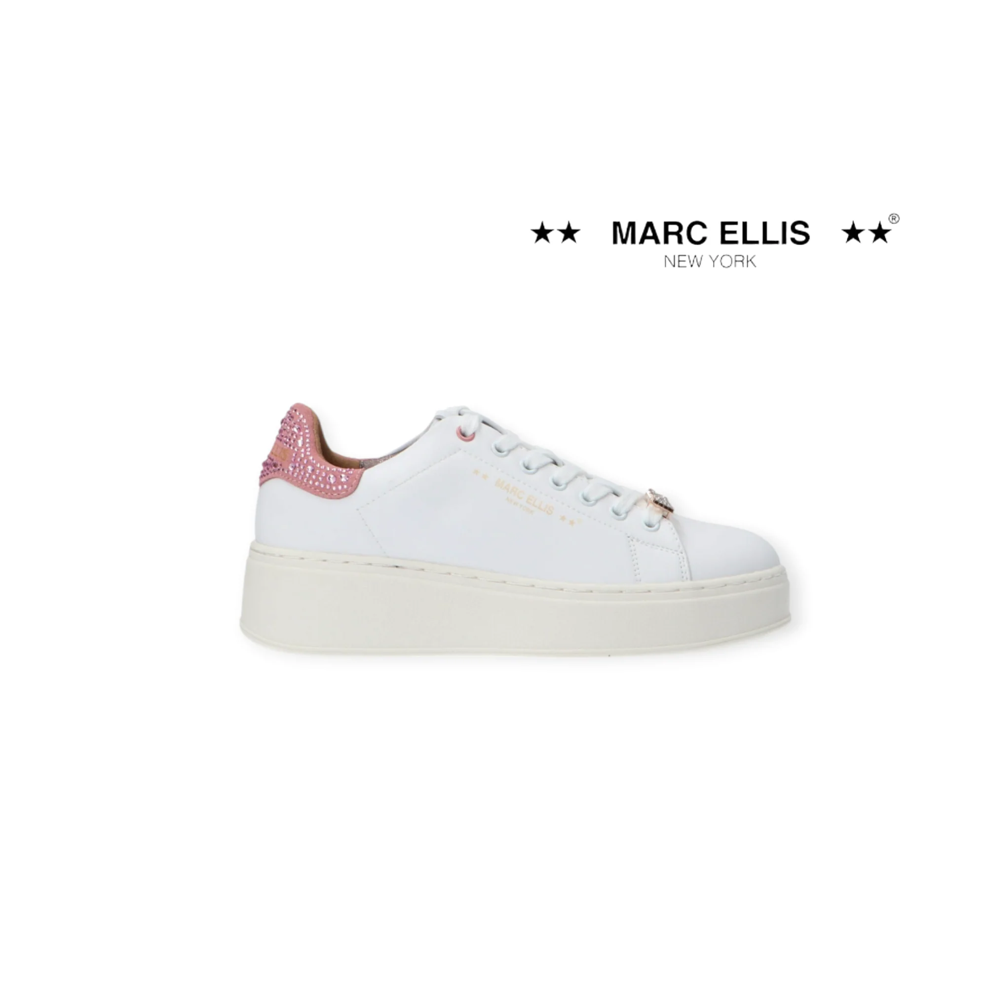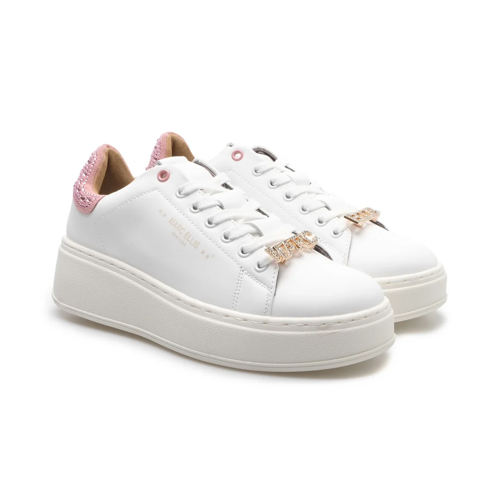 MARC ELLIS SNEAKERS DONNA CON LOGO 305 ROSA Sneakers con punta tonda, suola in gomma 5 cm, logo laterale, logo retro con strass, logo su targhetta con strass removibile