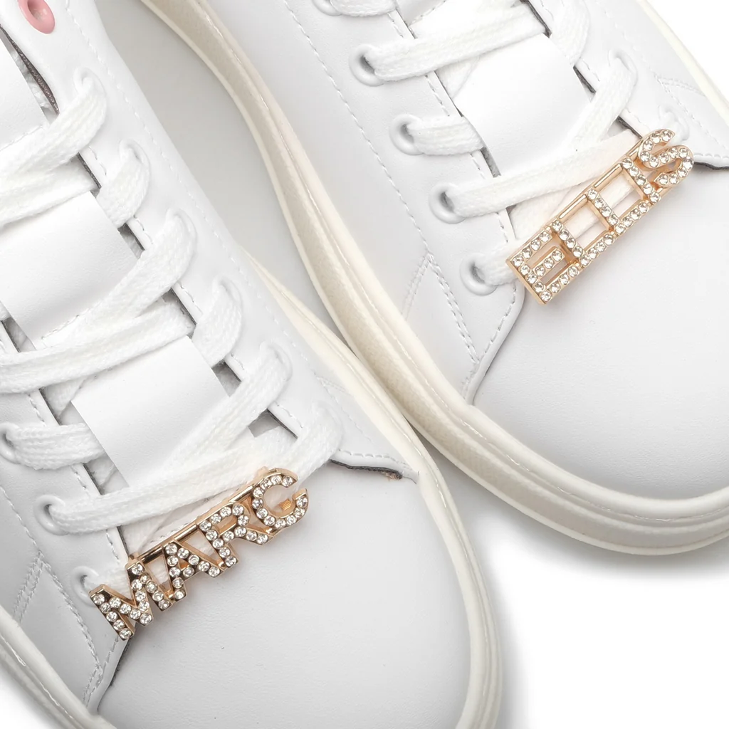 Sneakers con punta tonda, suola in gomma 5 cm, logo laterale, logo retro con strass, logo su targhetta con strass removibile