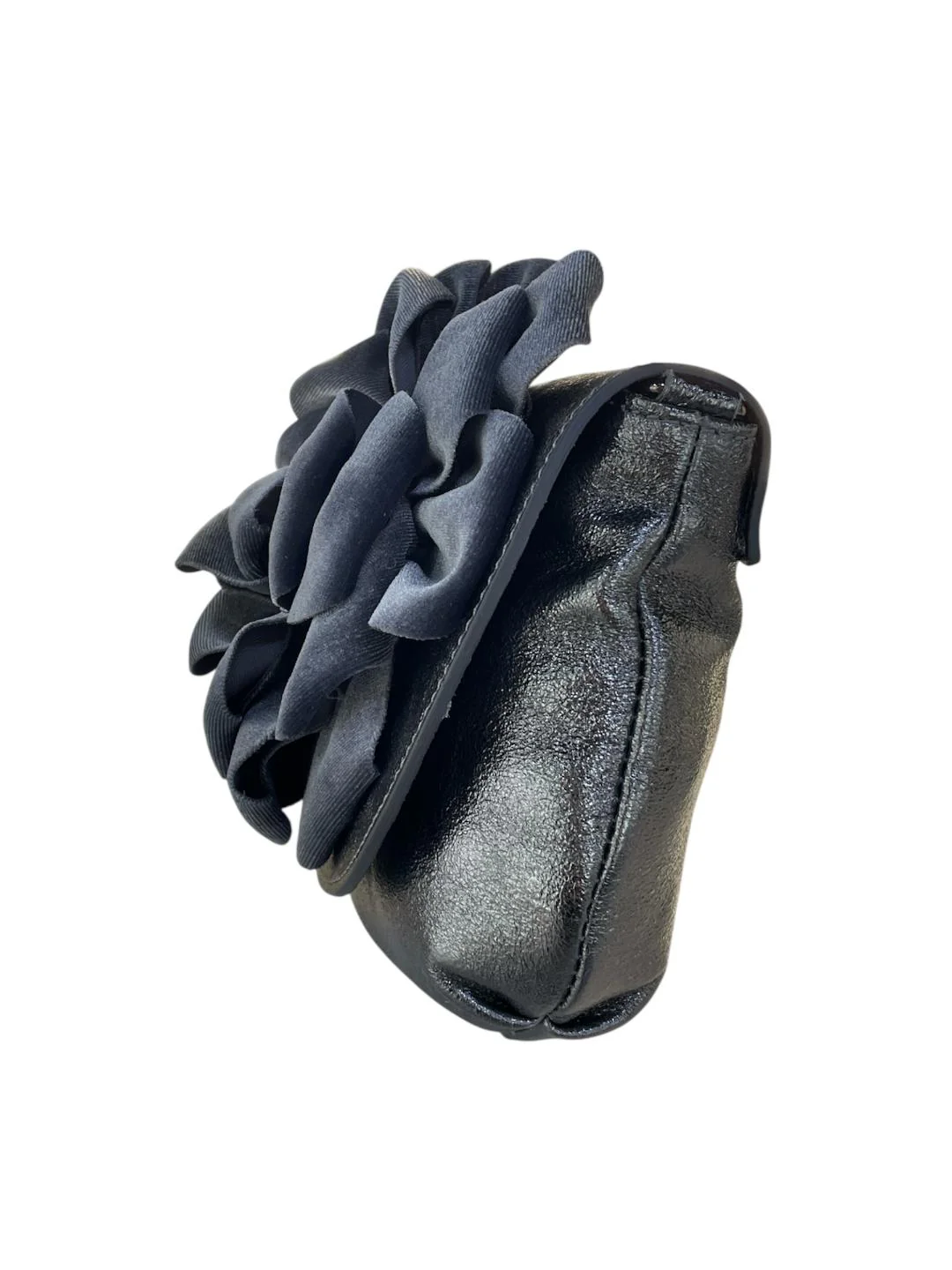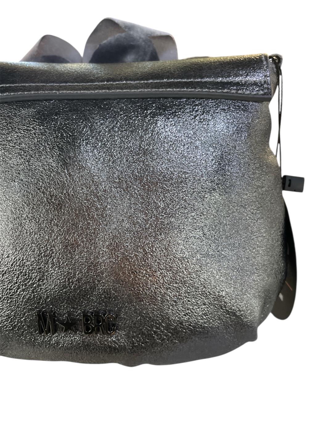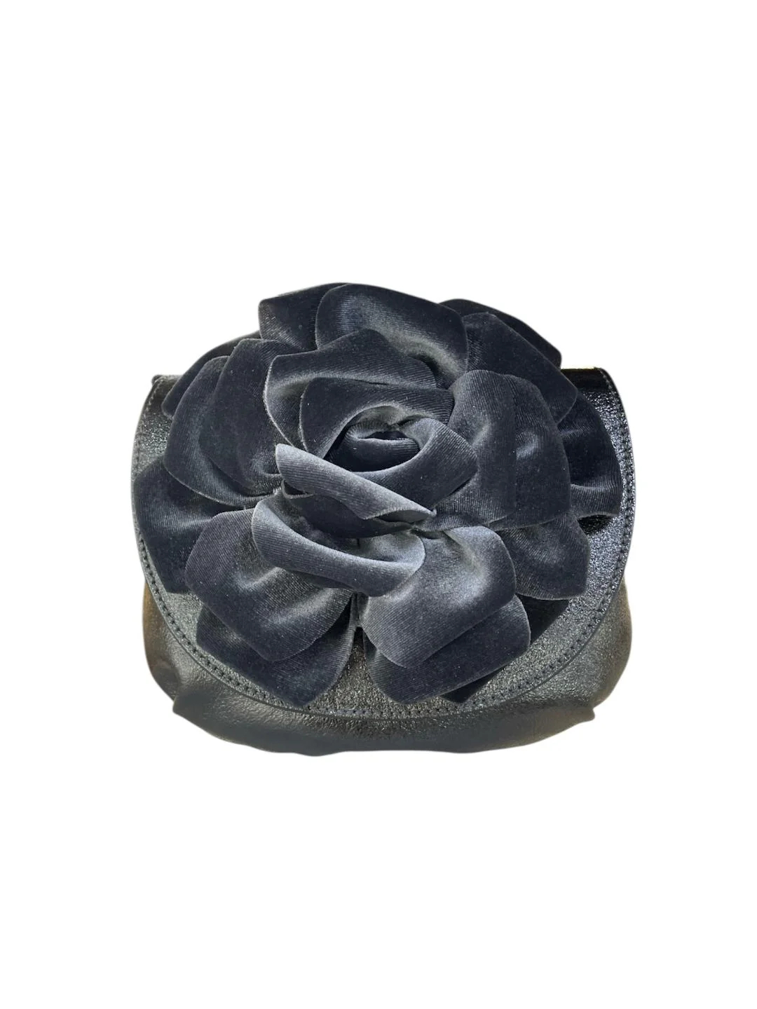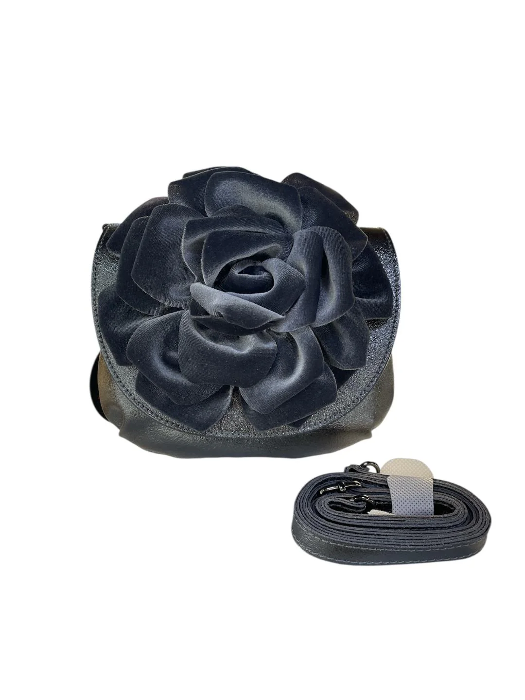 MBRC borsa piccola grigia in pelle con fiore in velluto e tracolla
