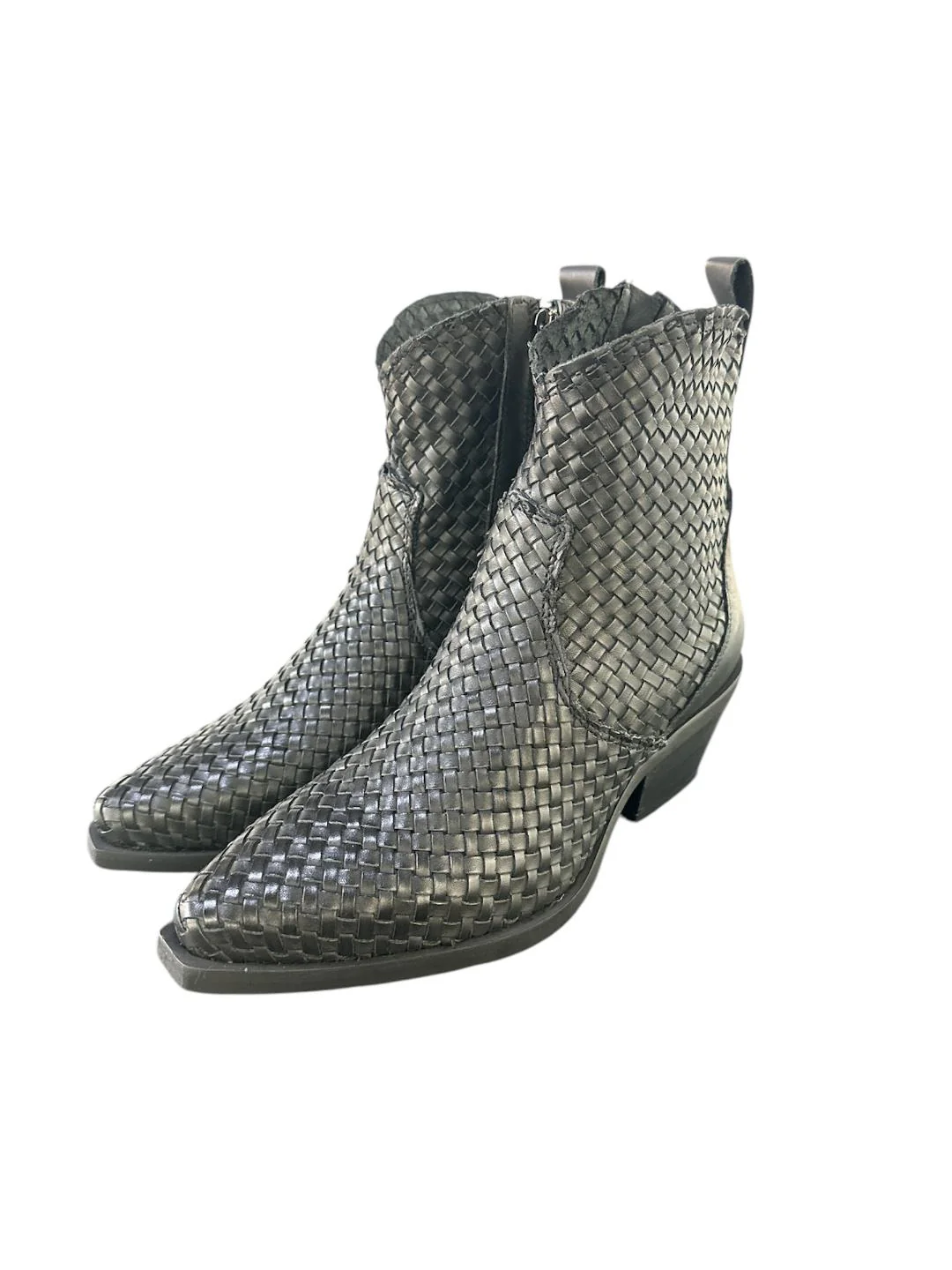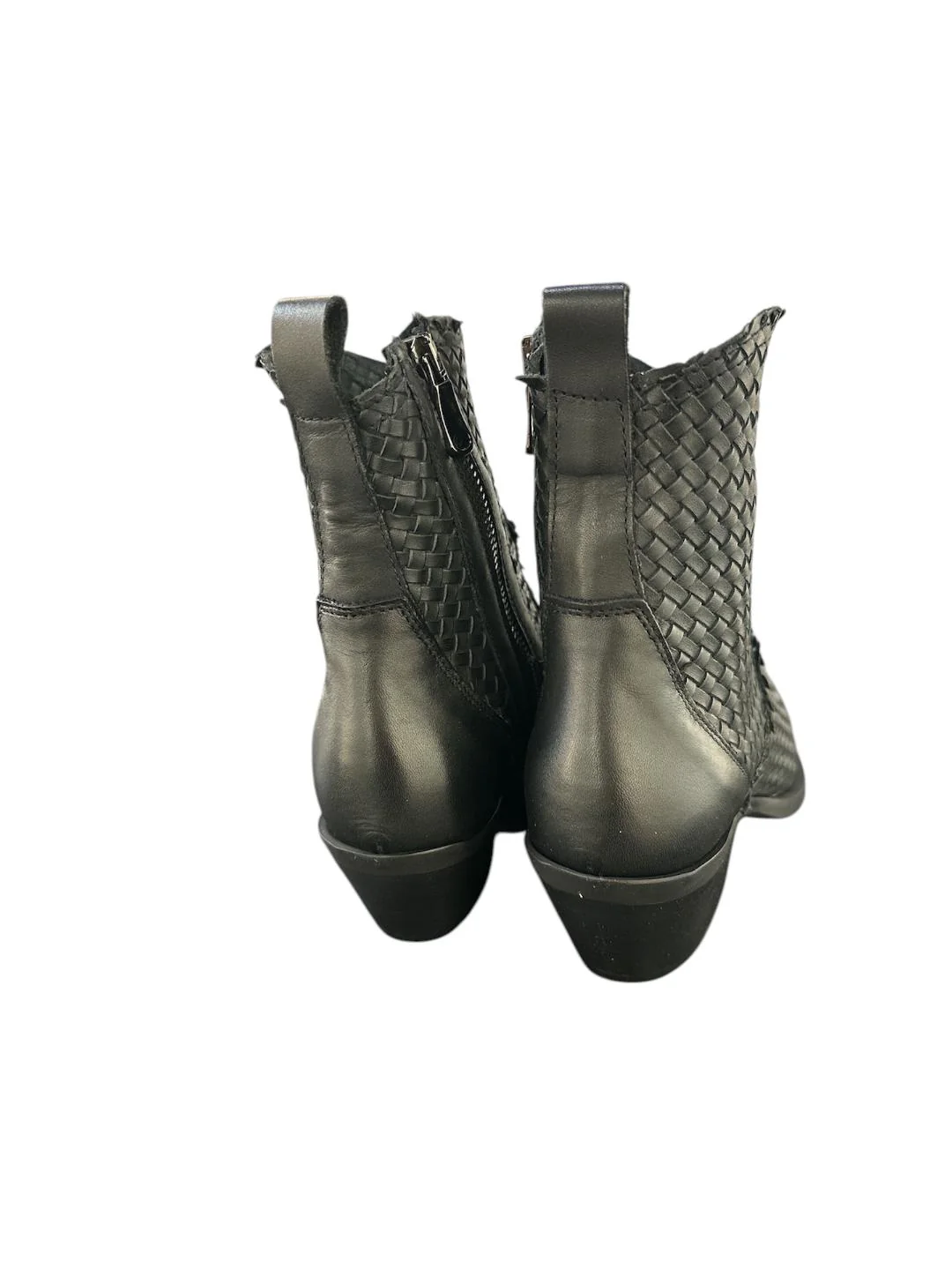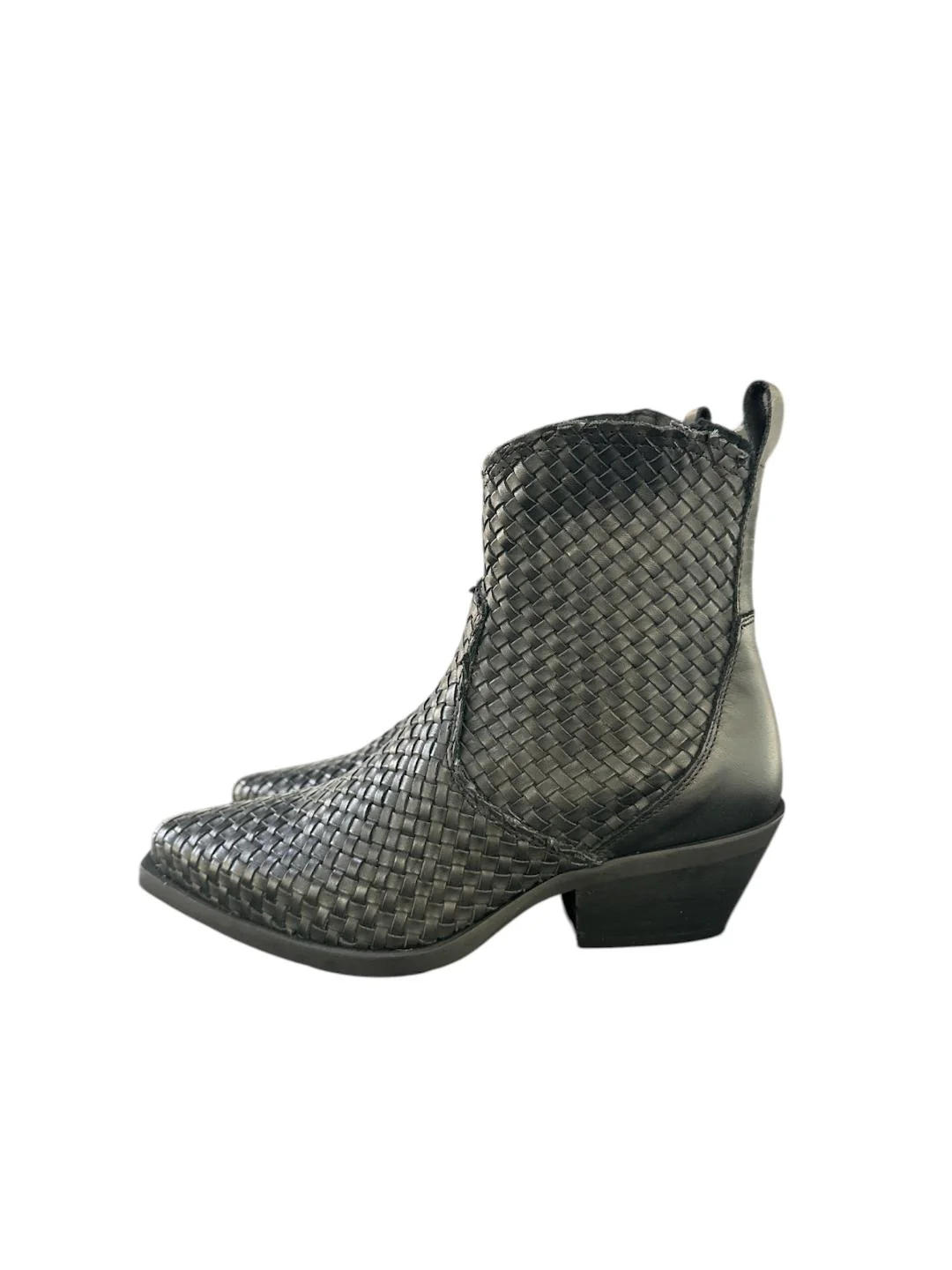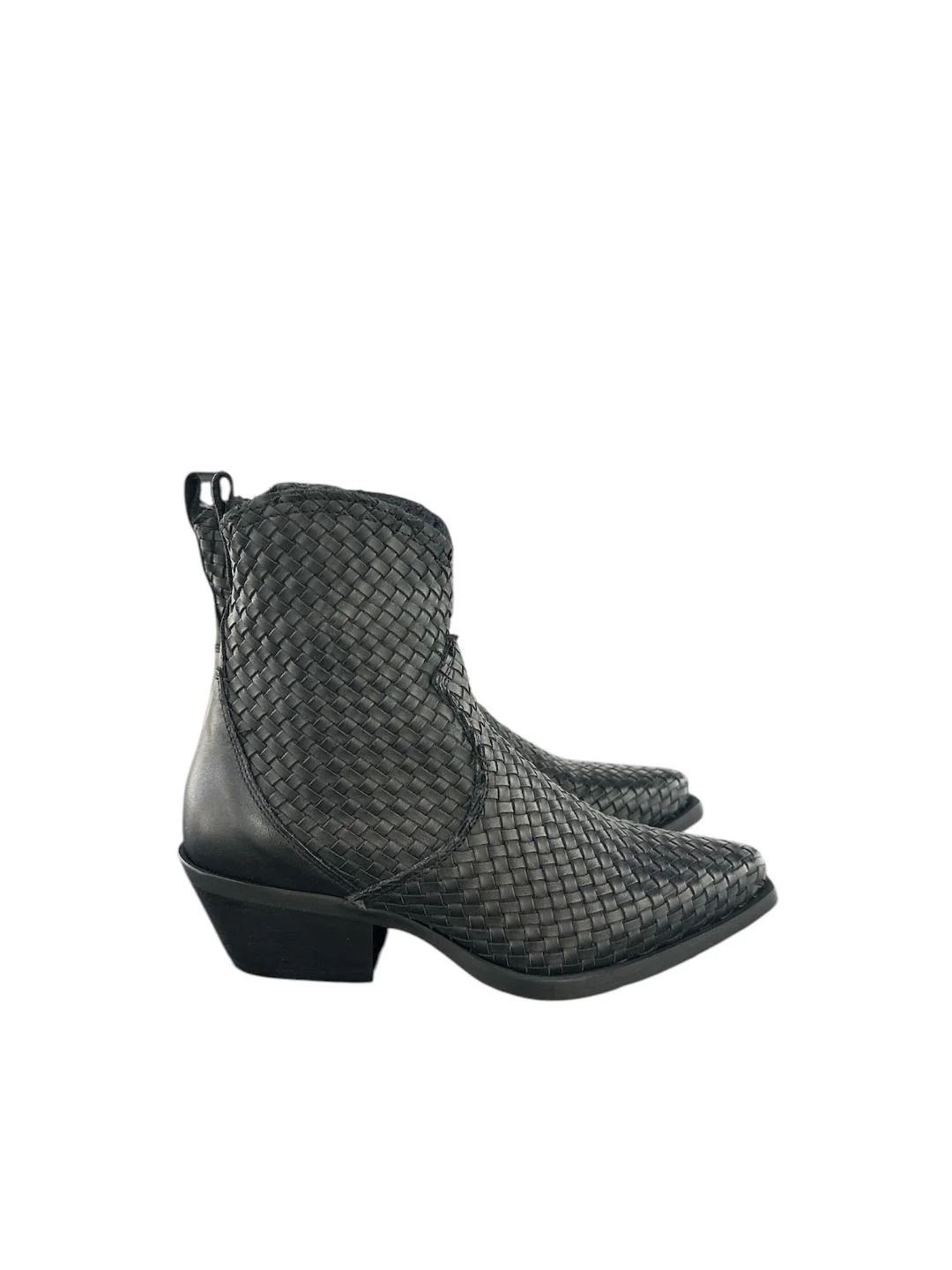 Metisse stivali tronchetti texani in pelle intrecciati neri