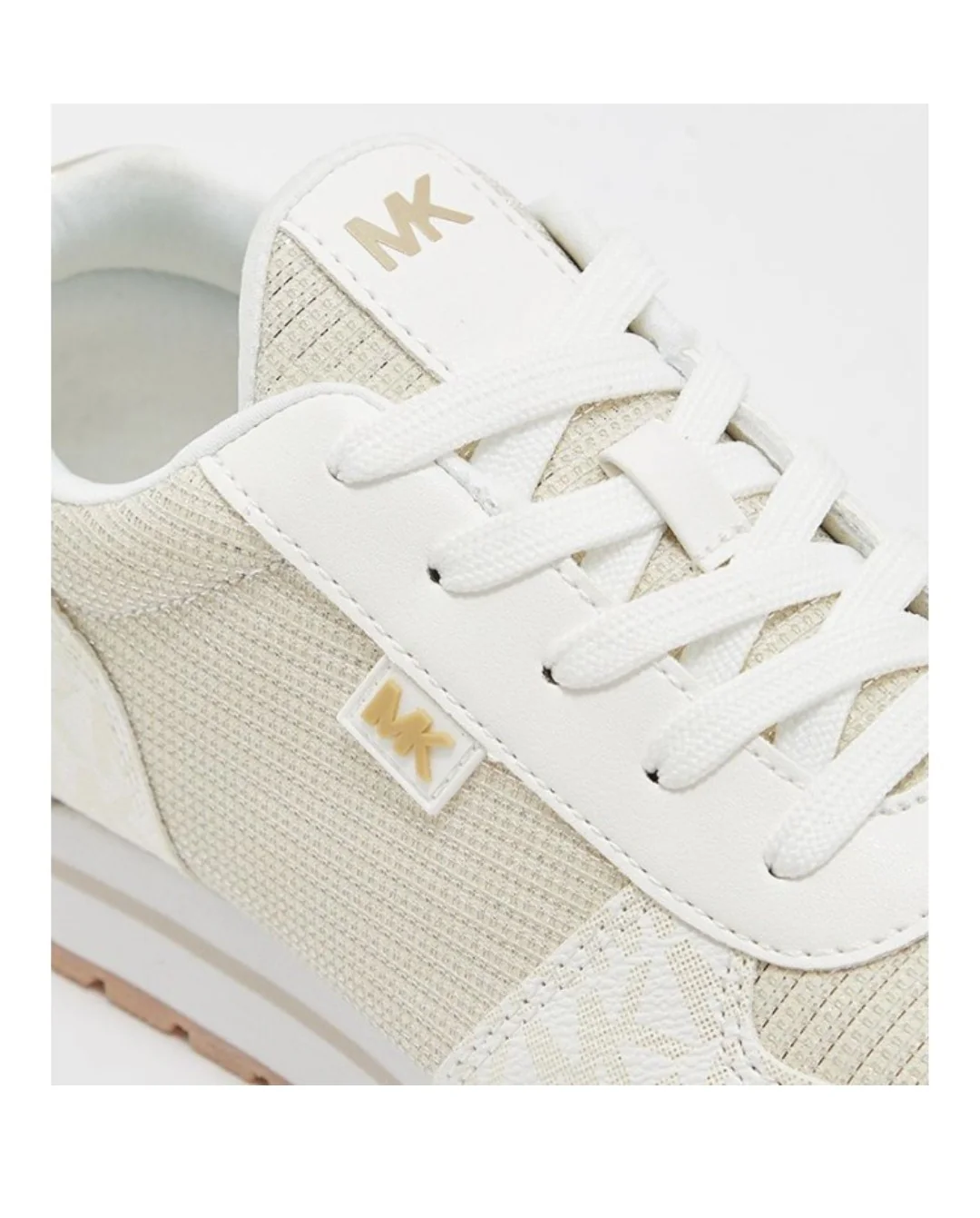 MICHAEL KORS SNEAKERS STRINGATE MK100937 MONIQUE BEIGE GOLD Sneakers con tomaia in ecopelle, fodera e plantare in tessuto, fondo in gomma, chiusura con lacci