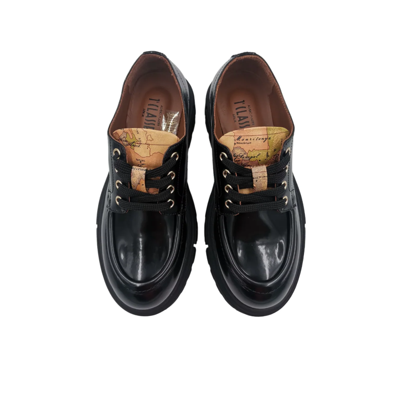 I mocassini da donna Alviero Martini 1A Classe in pelle nera lucida sono una perfetta combinazione di eleganza e originalitร . Dotati di lacci e caratterizzati da una linguetta con dettagli dell’iconica stampa Geo Classic, questi mocassini aggiungono un tocco distintivo e raffinato al tuo look. Ideali per chi cerca uno stile classico con un tocco di modernitร , questi mocassini sono perfetti per outfit sia casual che eleganti.