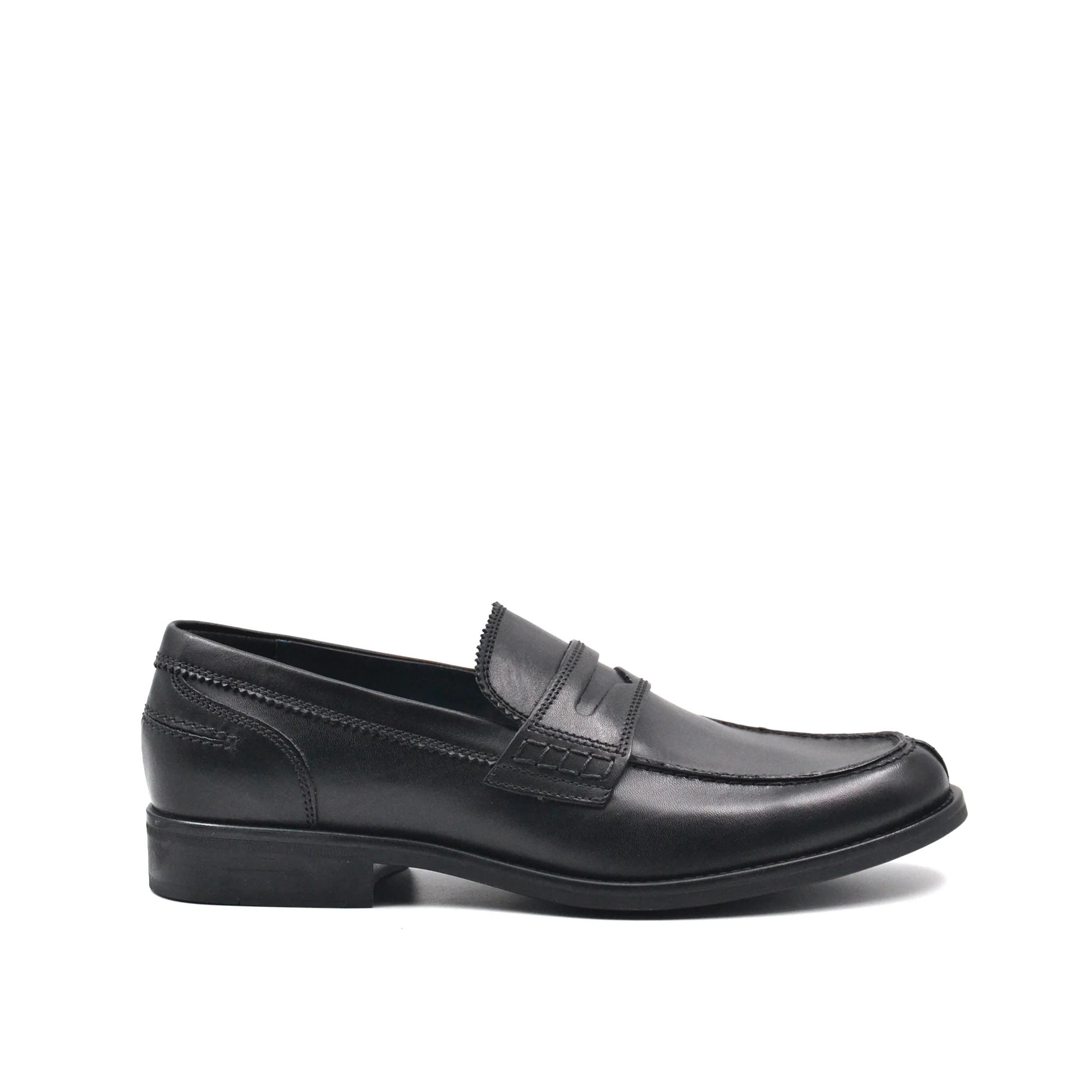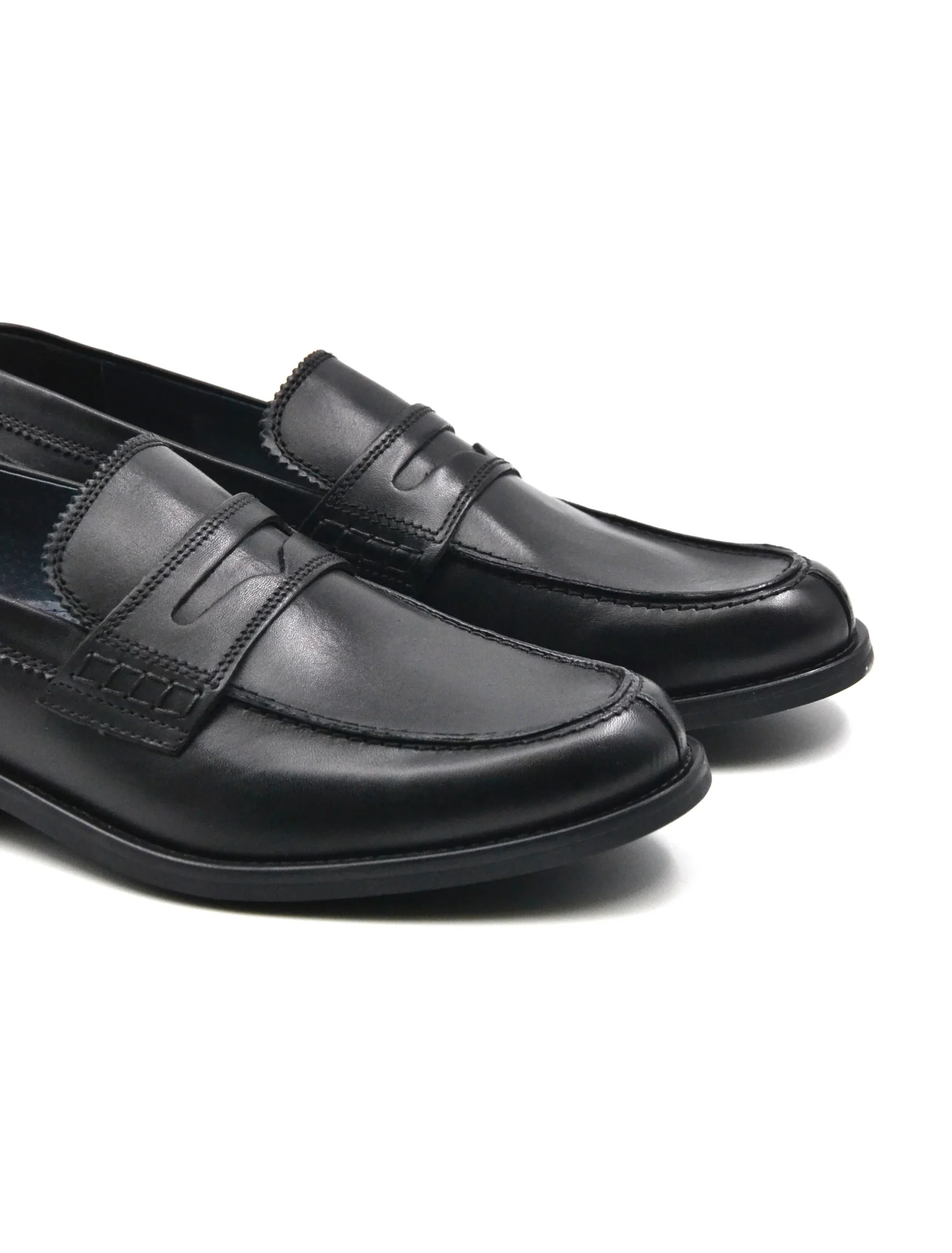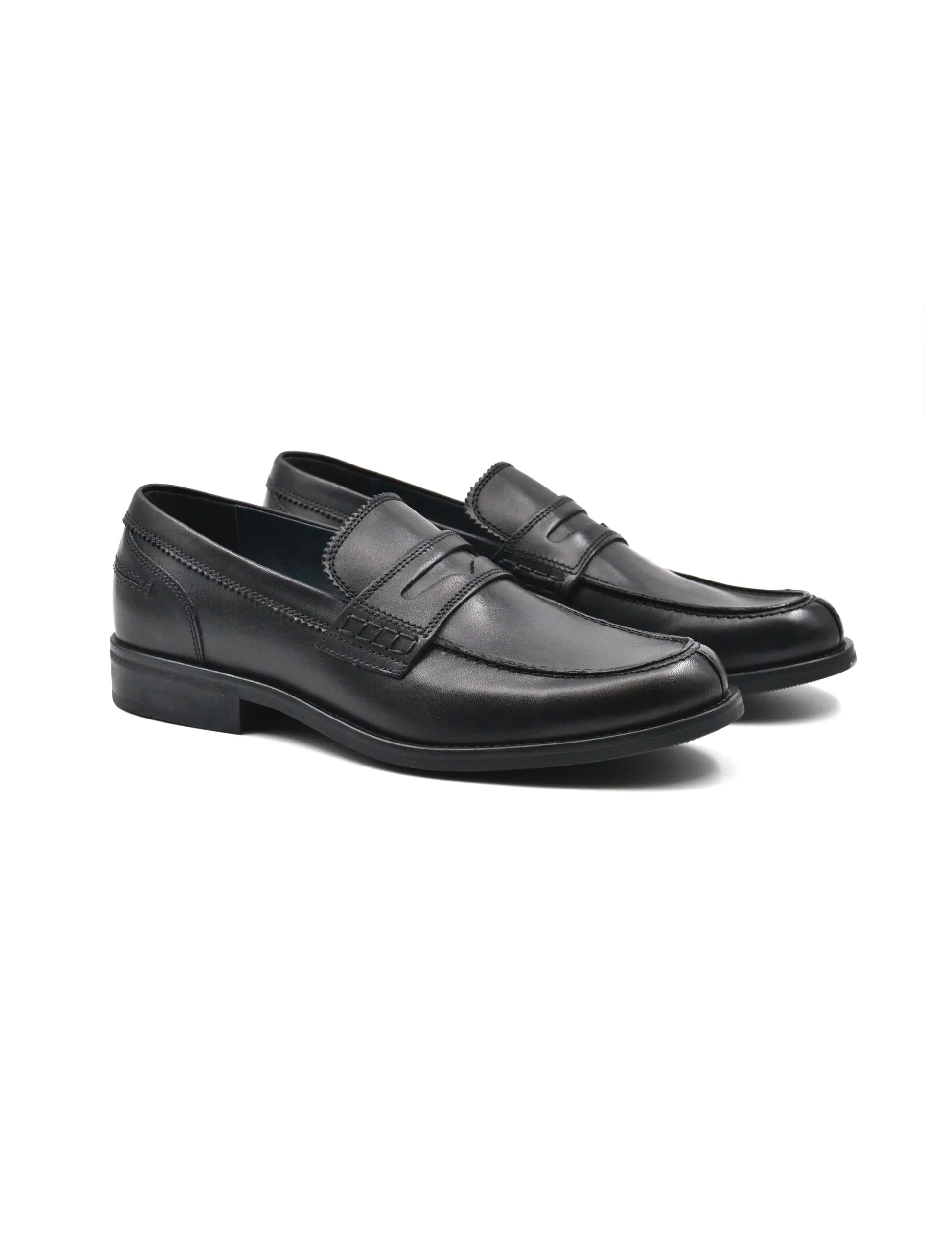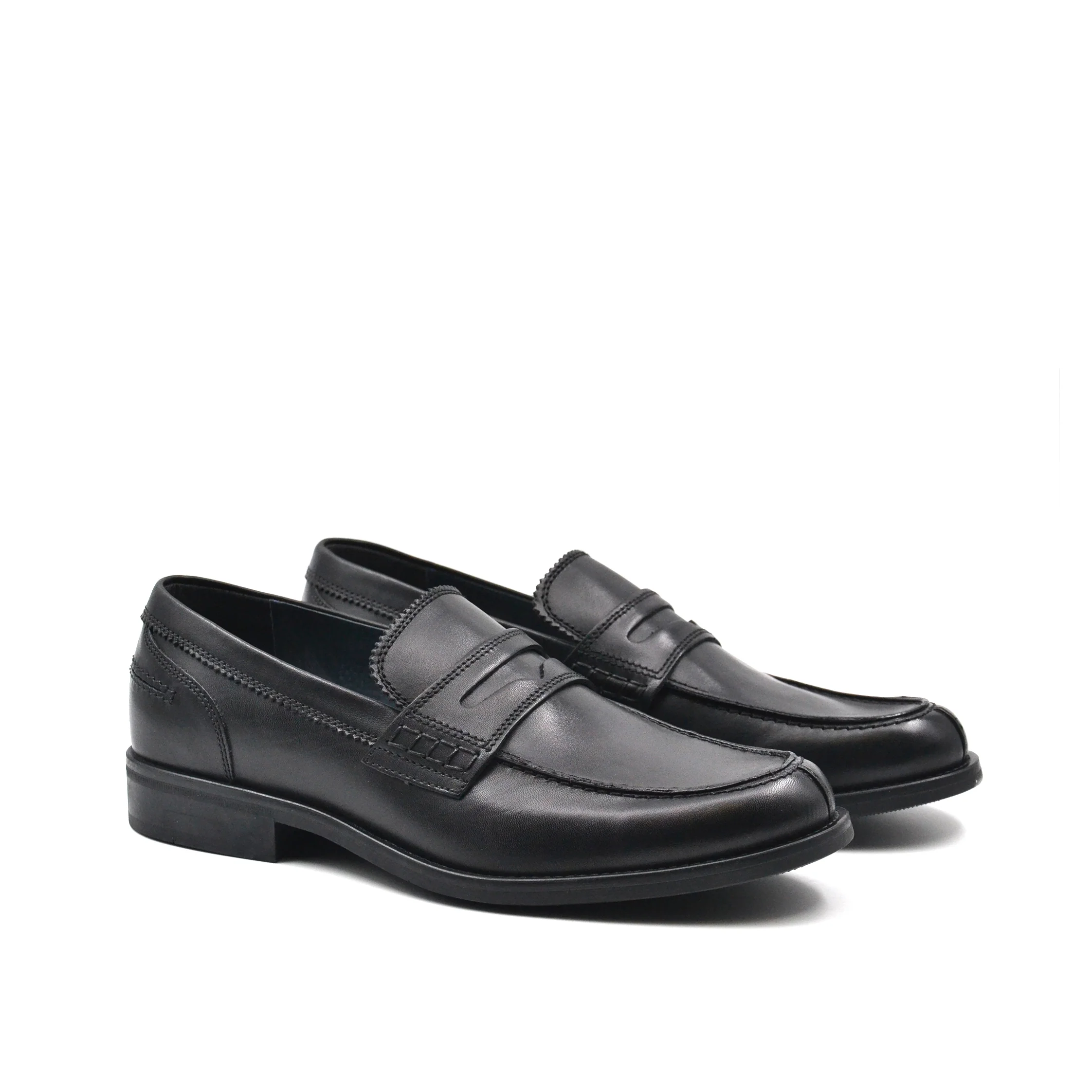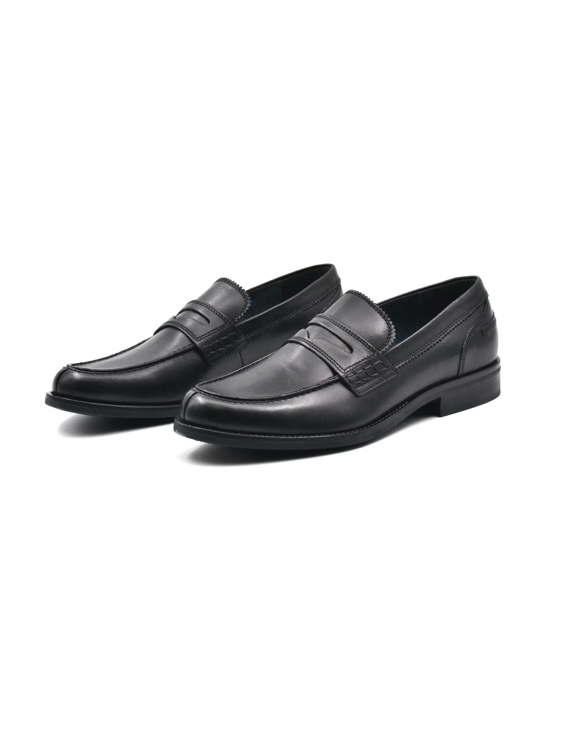 Mocassino da uomo Conte’ in vera pelle nera, il morbido sottopiede in vera pelle Extra Soft e la suola flessibile in vera gomma garantiscono un ottimo comfort, perfetto per le tue giornate in ufficio.