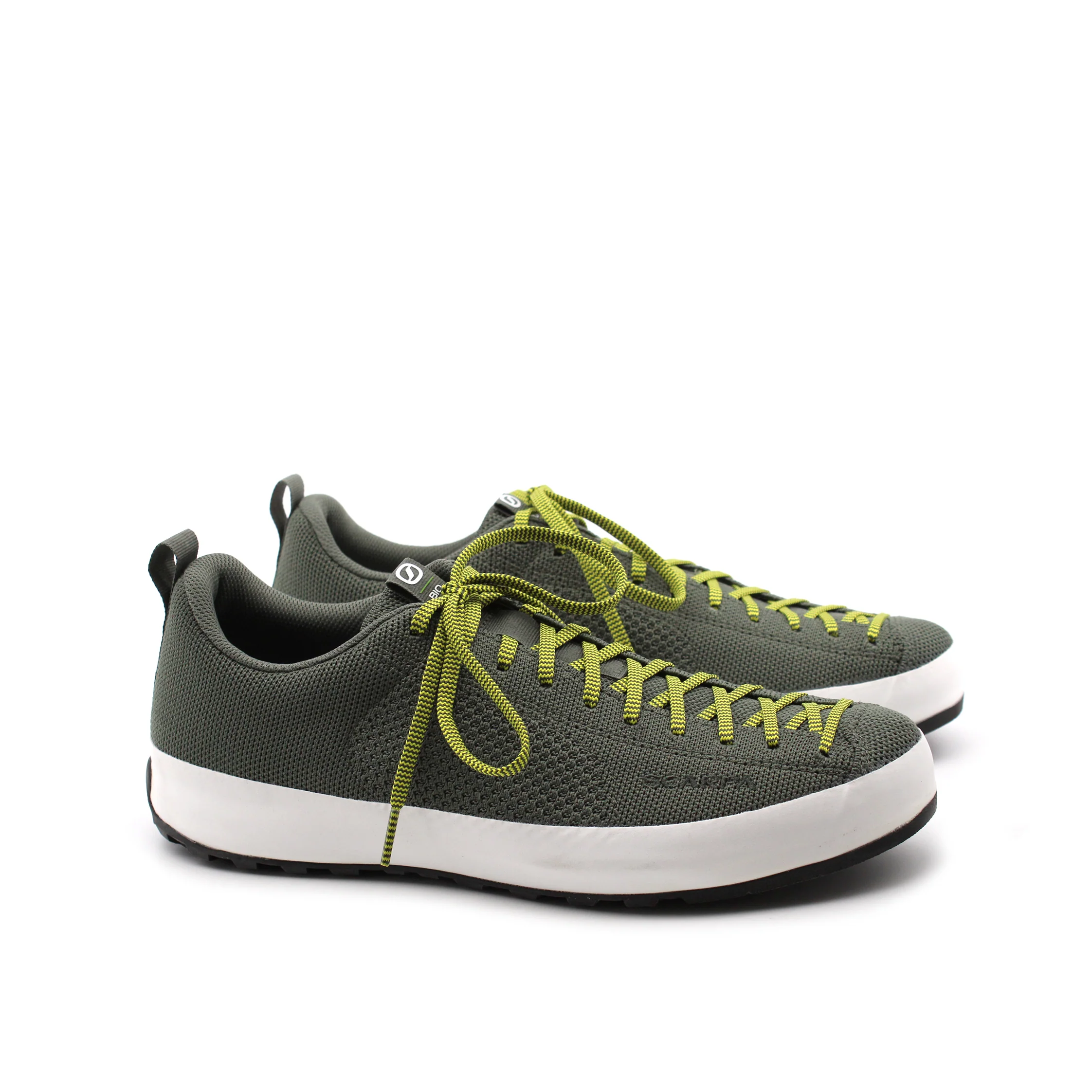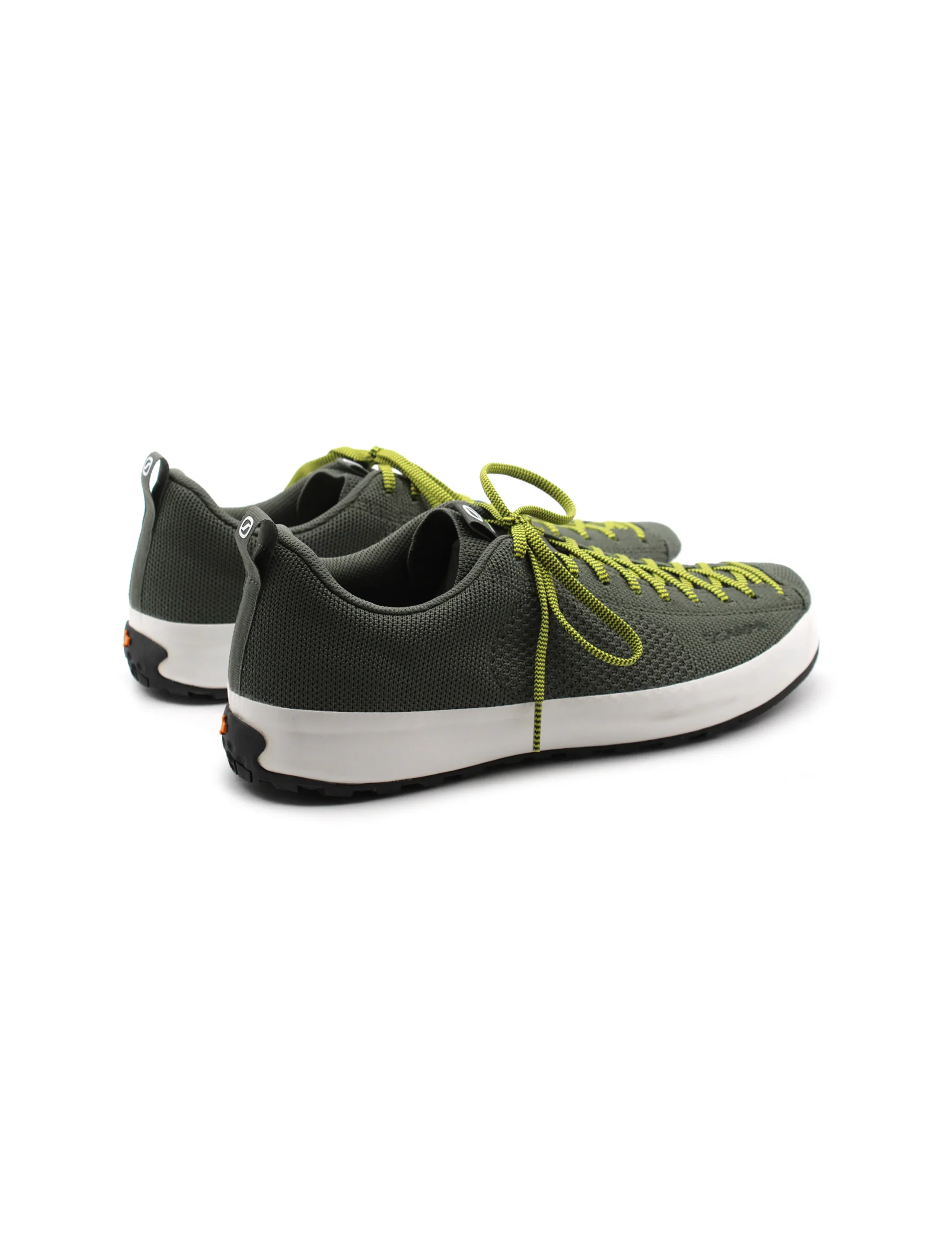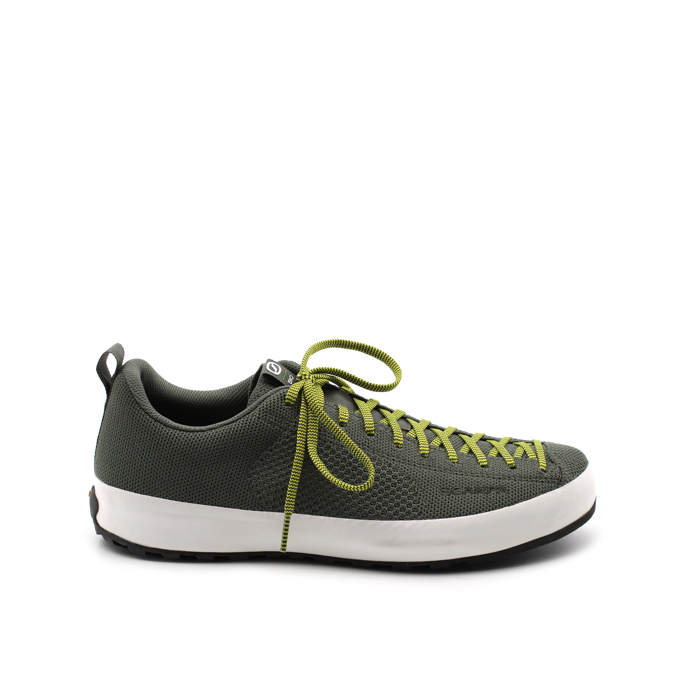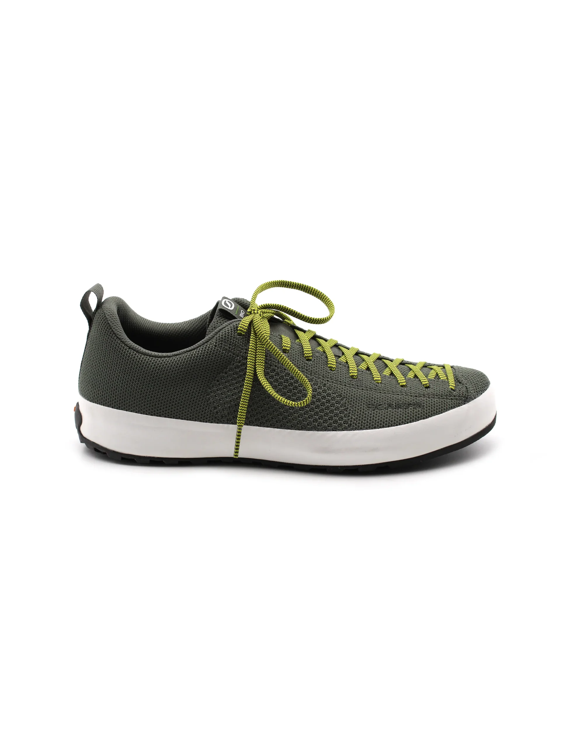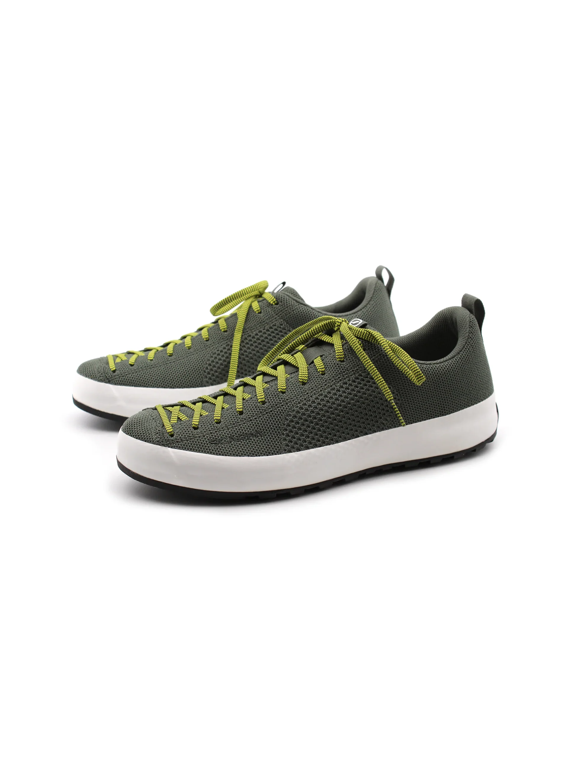 Sneaker sostenibile e traspirante da uomo Scarpa Mojito Wrap Bio con tomaia in in PET filato con tecnologia knit, sottopiede removibile in tessuto e fondo Presa in gomma. Ideale per le tue passeggiate e per l’uso di tutti i giorni. I materiali di questo modello sono biodegradabili secondo la certificazione Green Leaf di Intertek.