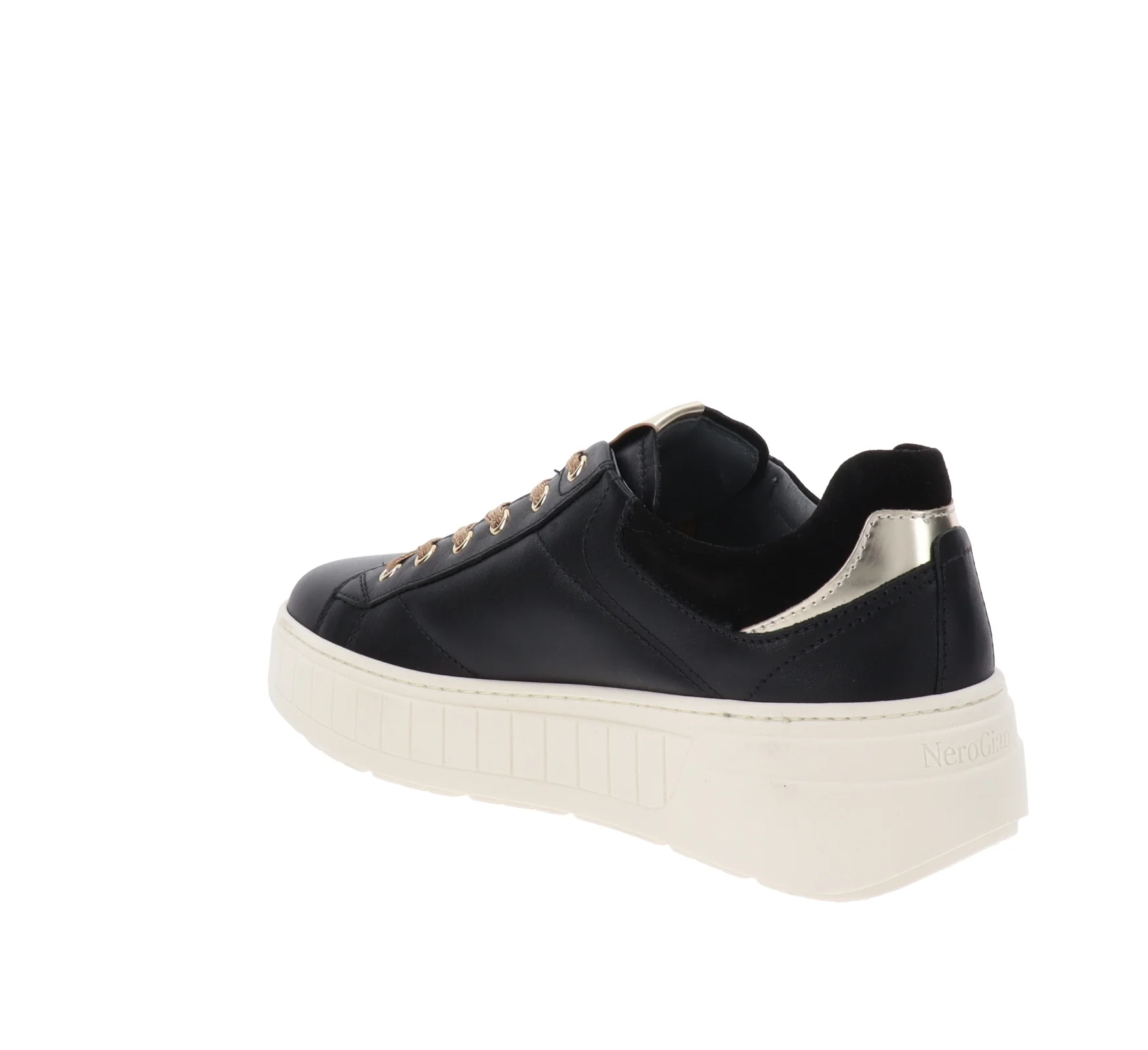 Le Sneakers Donna in Pelle di NeroGiardini si distinguono per lโuso di materiali di elevata qualitร che assicurano comfort e durata. Il design moderno e curato nei dettagli offre una calzata ergonomica e unโestetica versatile, perfetta per accompagnare look quotidiani con un tocco di classe e funzionalitร .