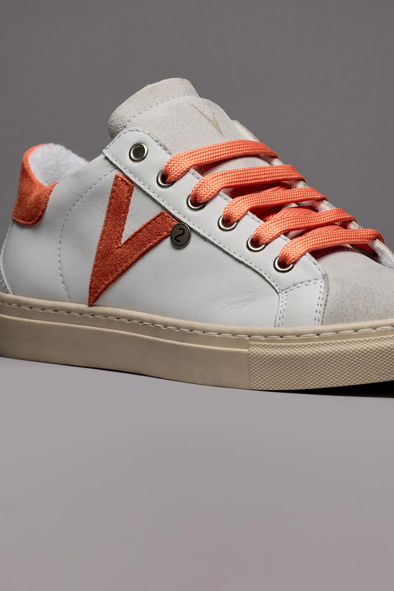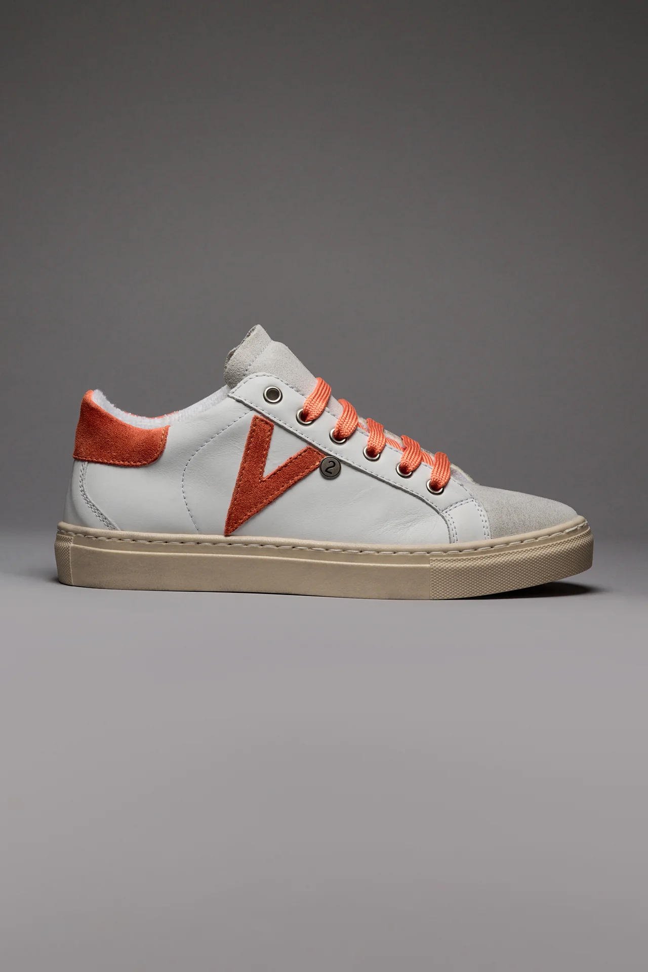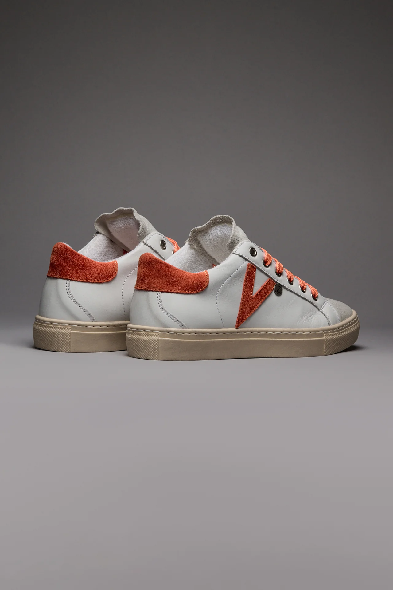 OLYMPIC – Sneakers a suola bassa Bianca con retro e inserto scamosciato Arancio