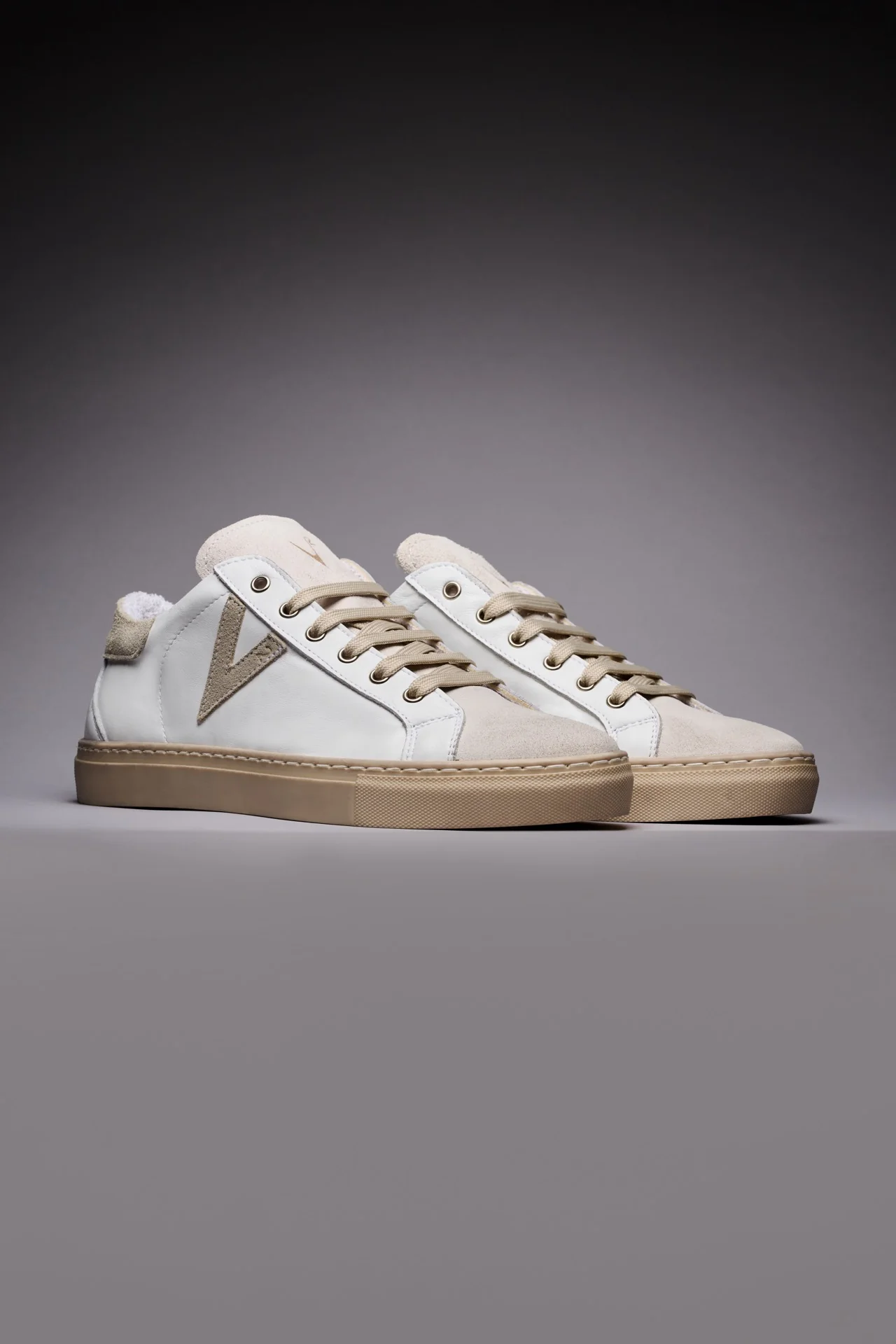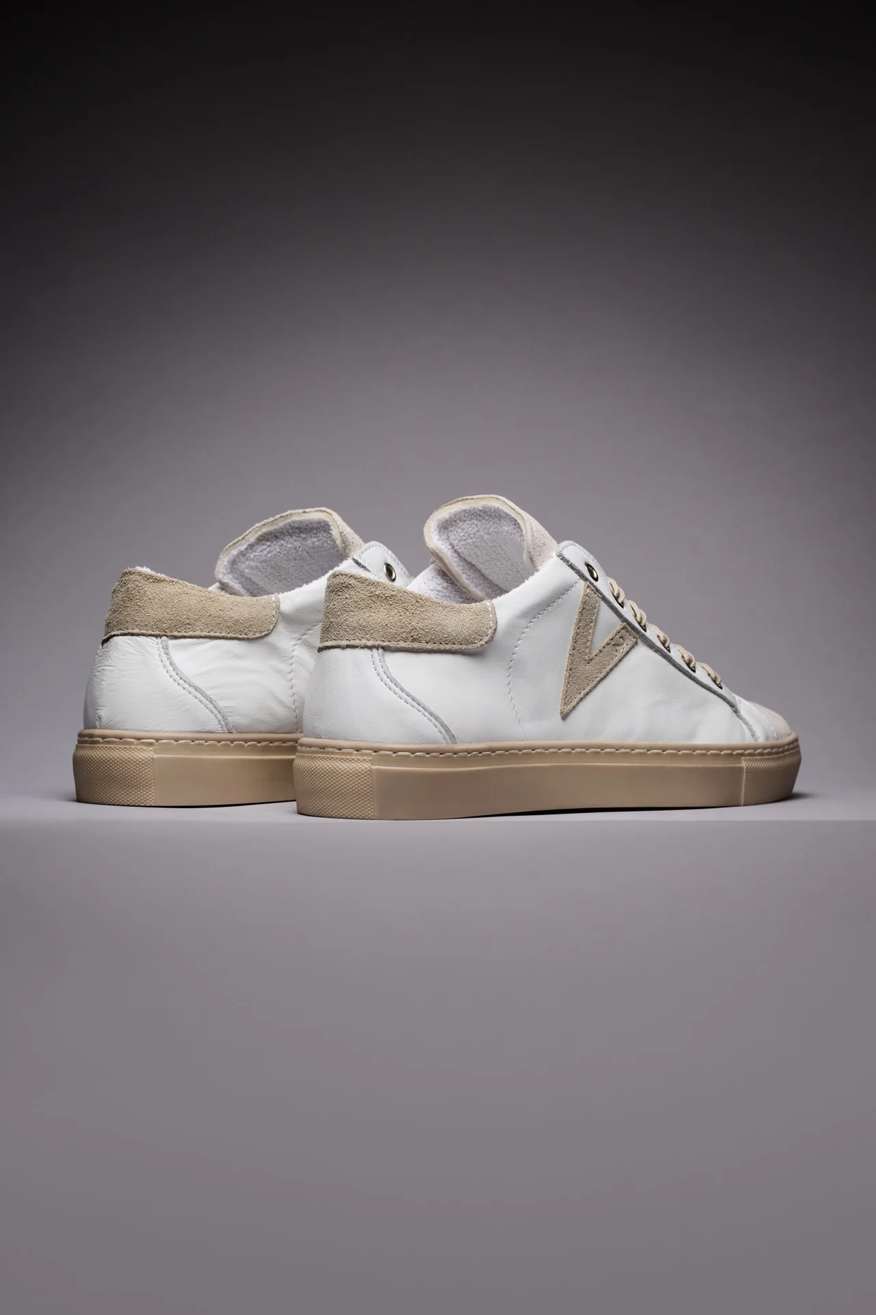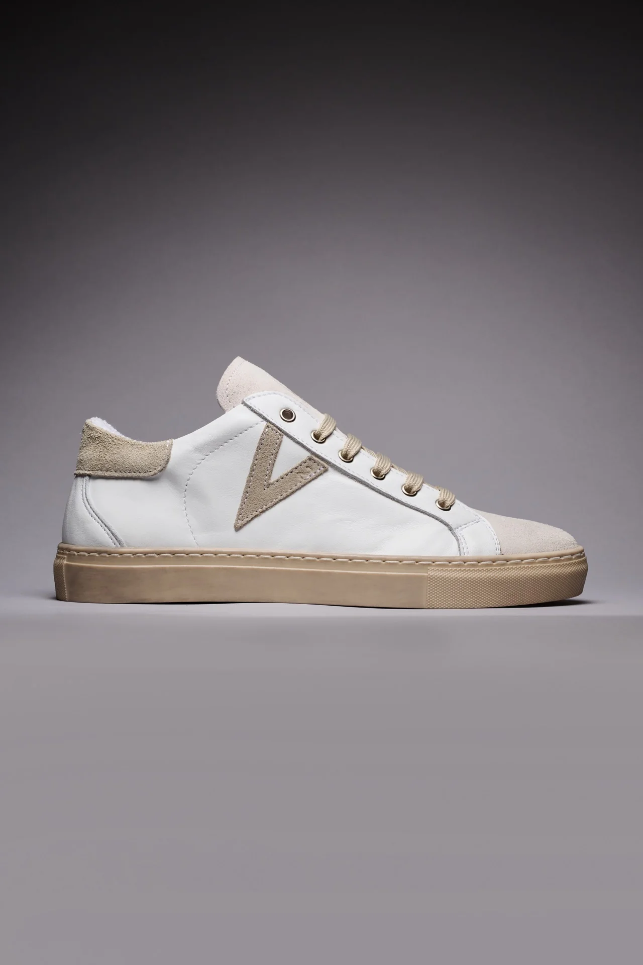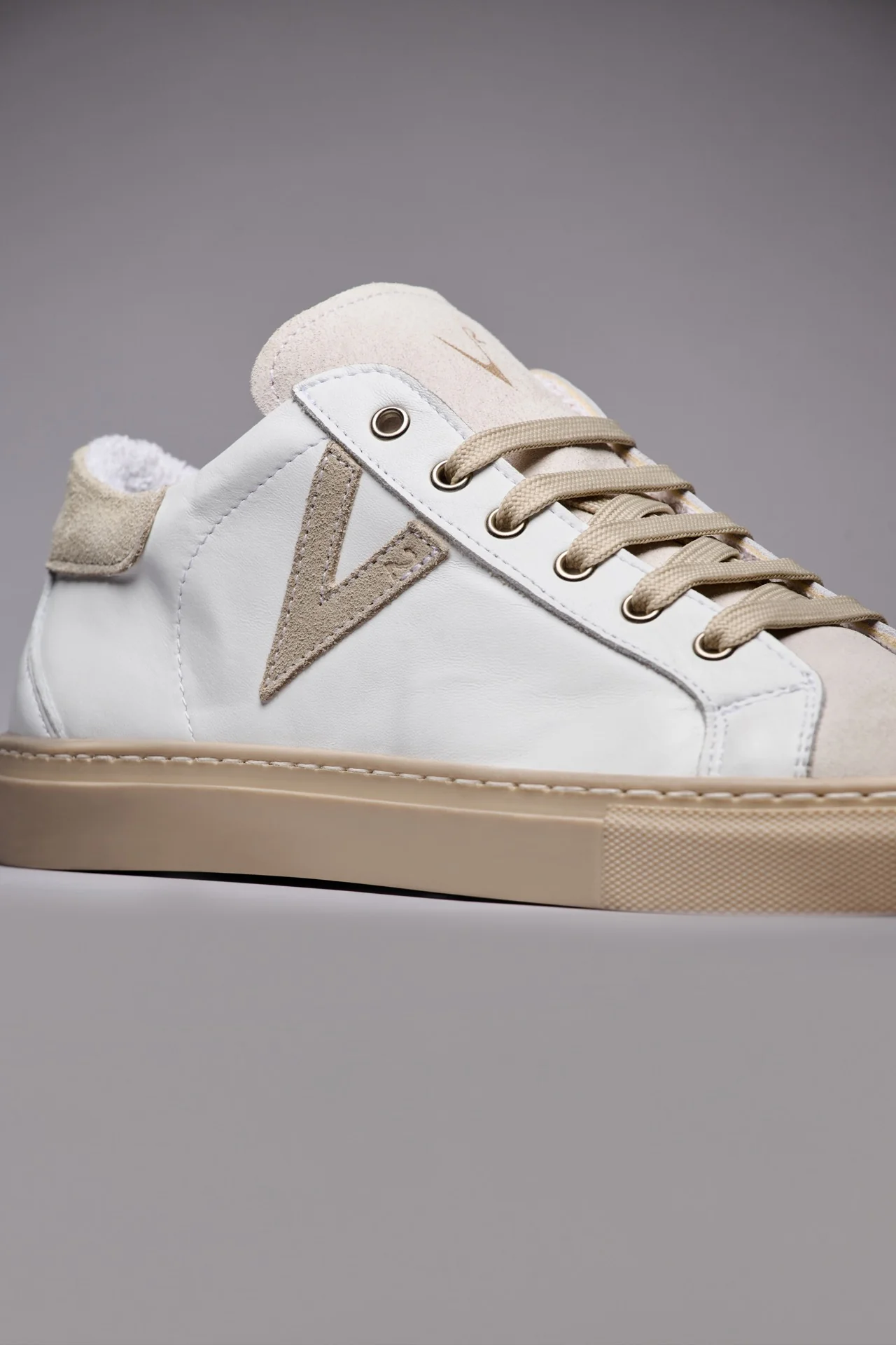 OLYMPIC – Sneakers a suola bassa Bianca con retro e inserto scamosciato Sabbia
