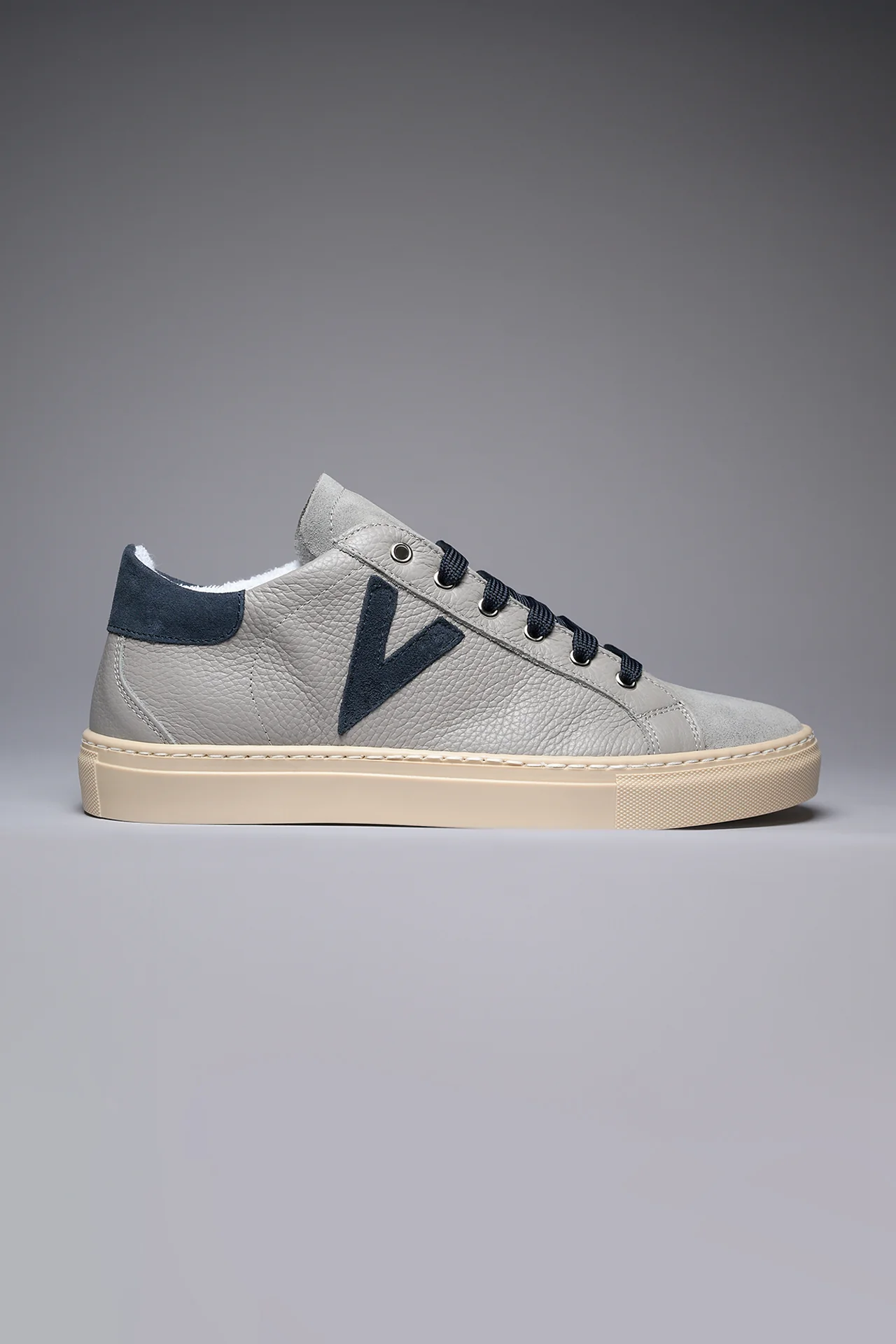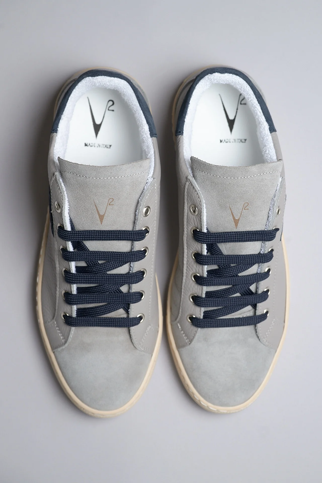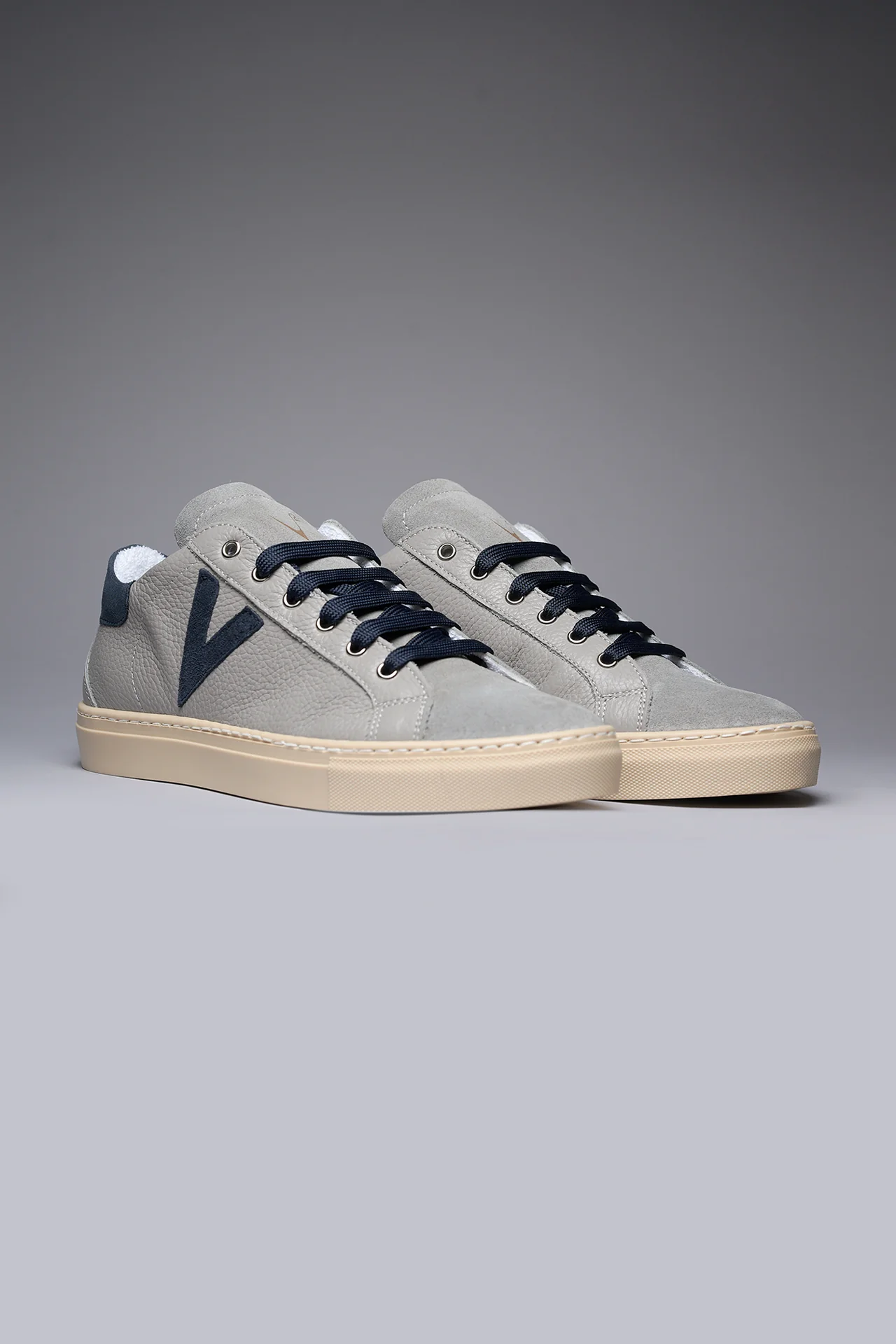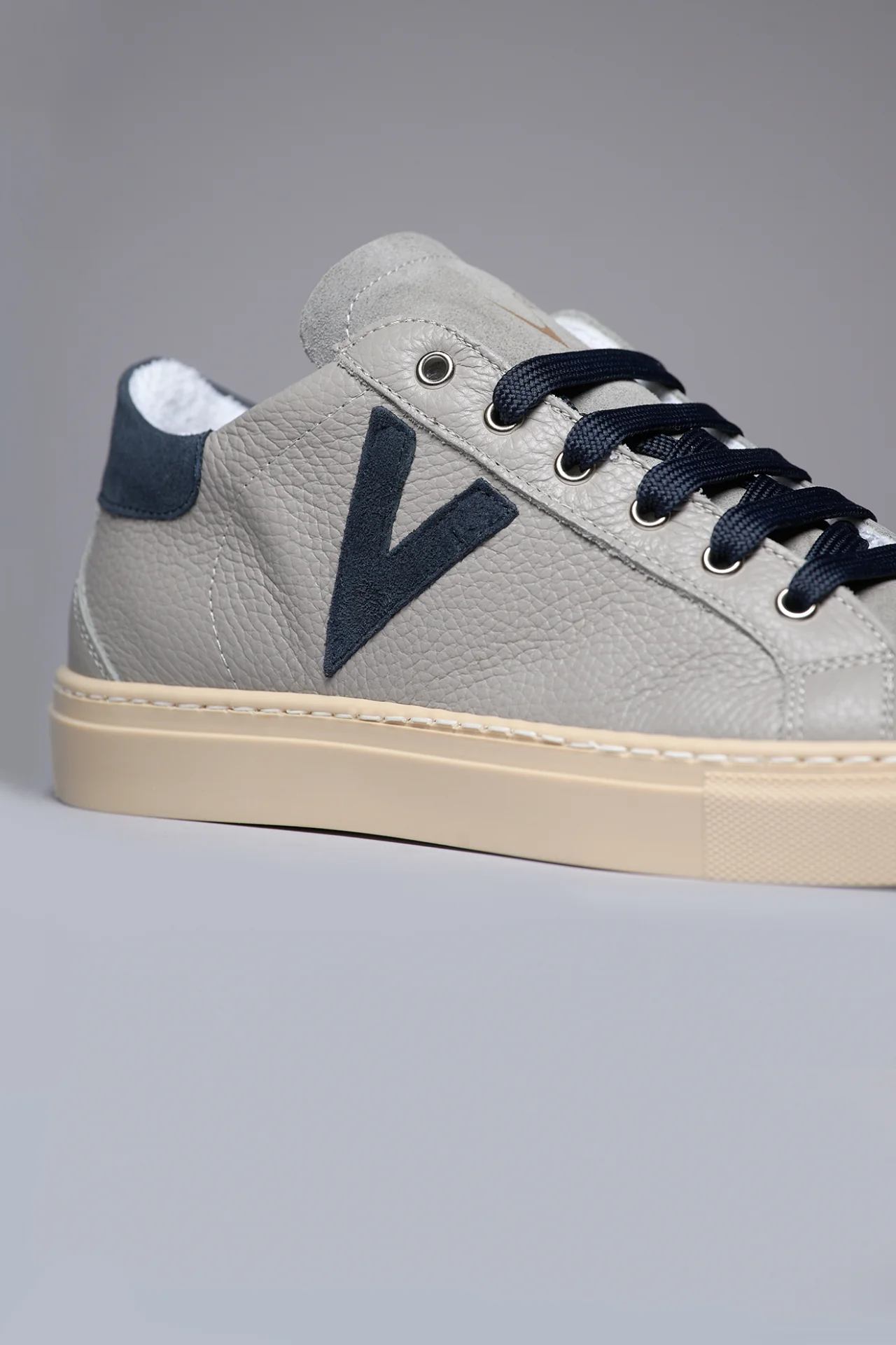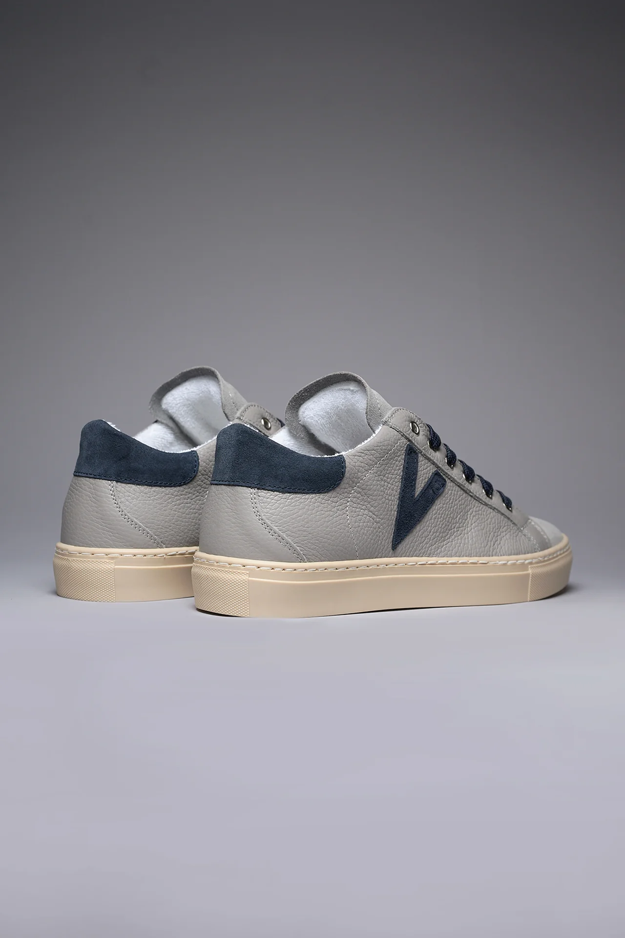 OLYMPIC – Sneakers a suola bassa in pelle martellata Grigia con retro e inserto Blu