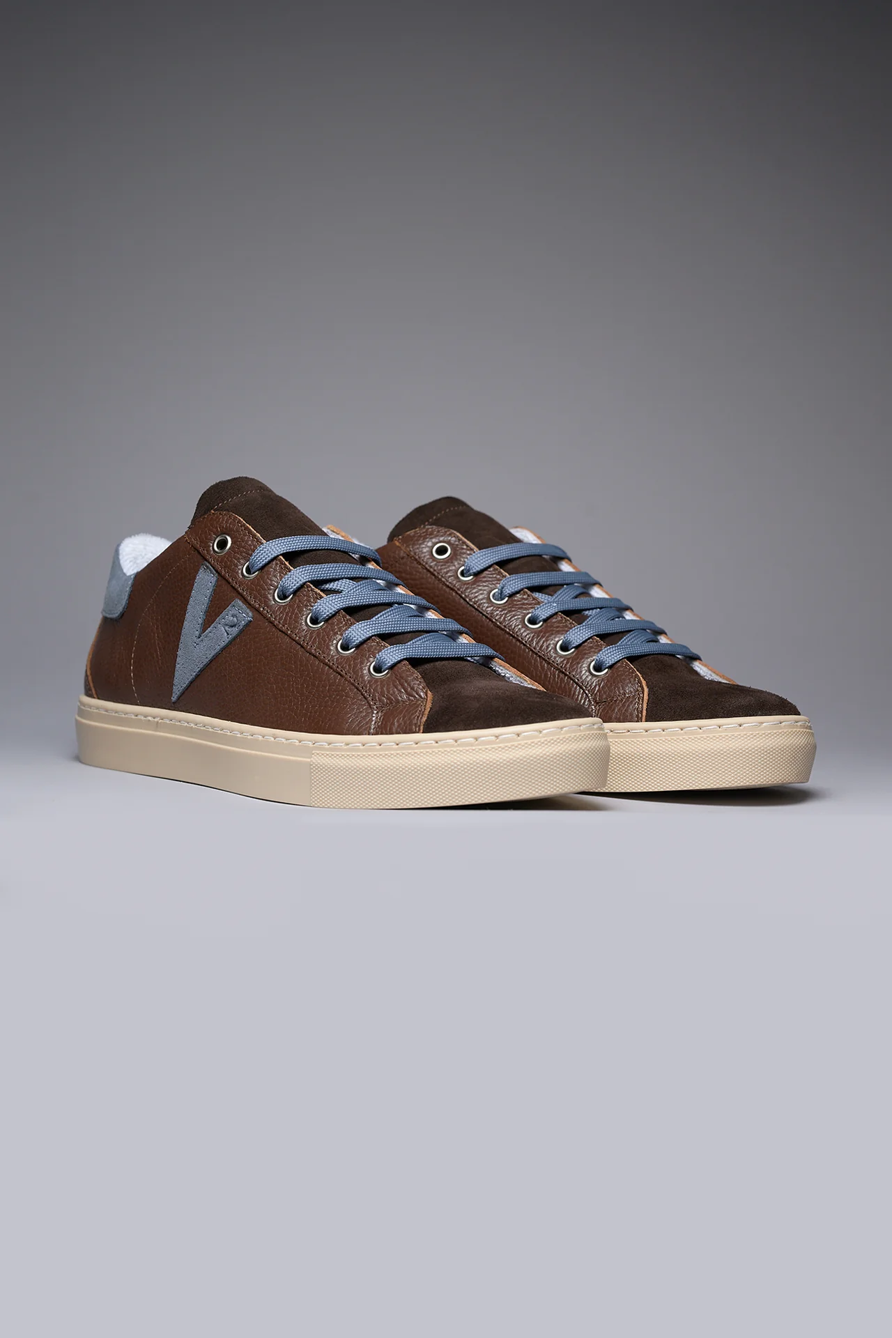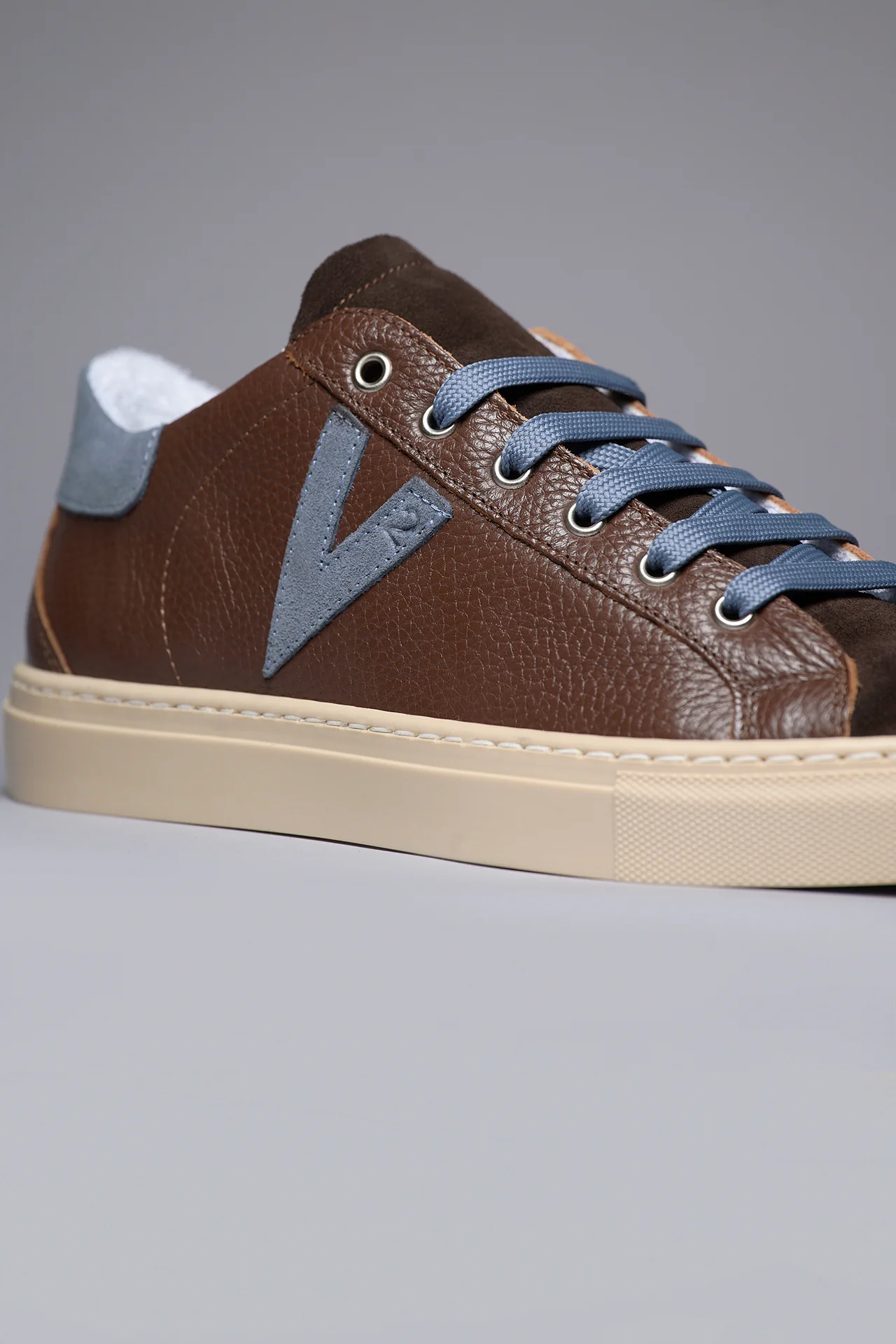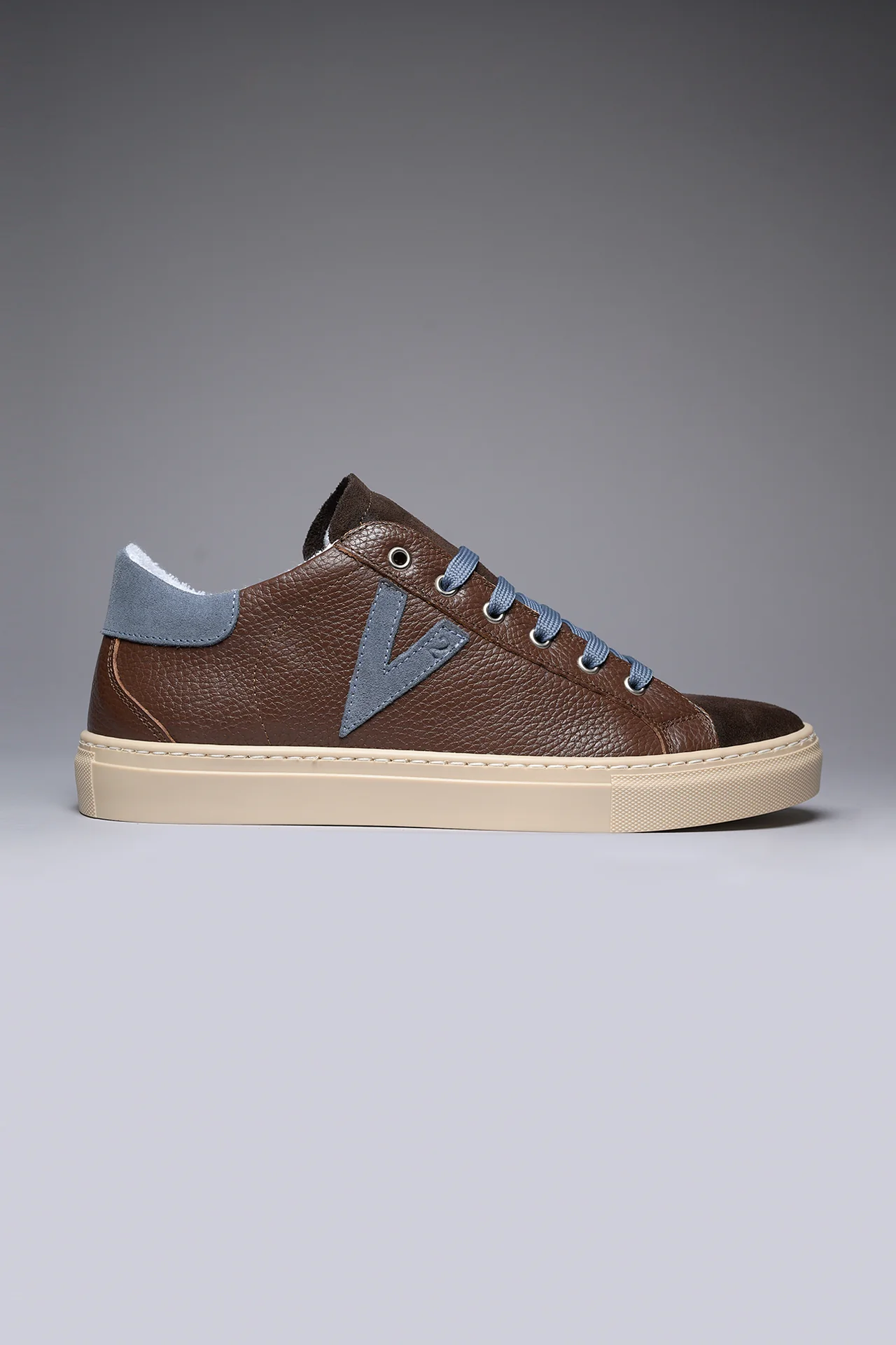 OLYMPIC – Sneakers a suola bassa in pelle martellata Moro con retro e inserto Jeans