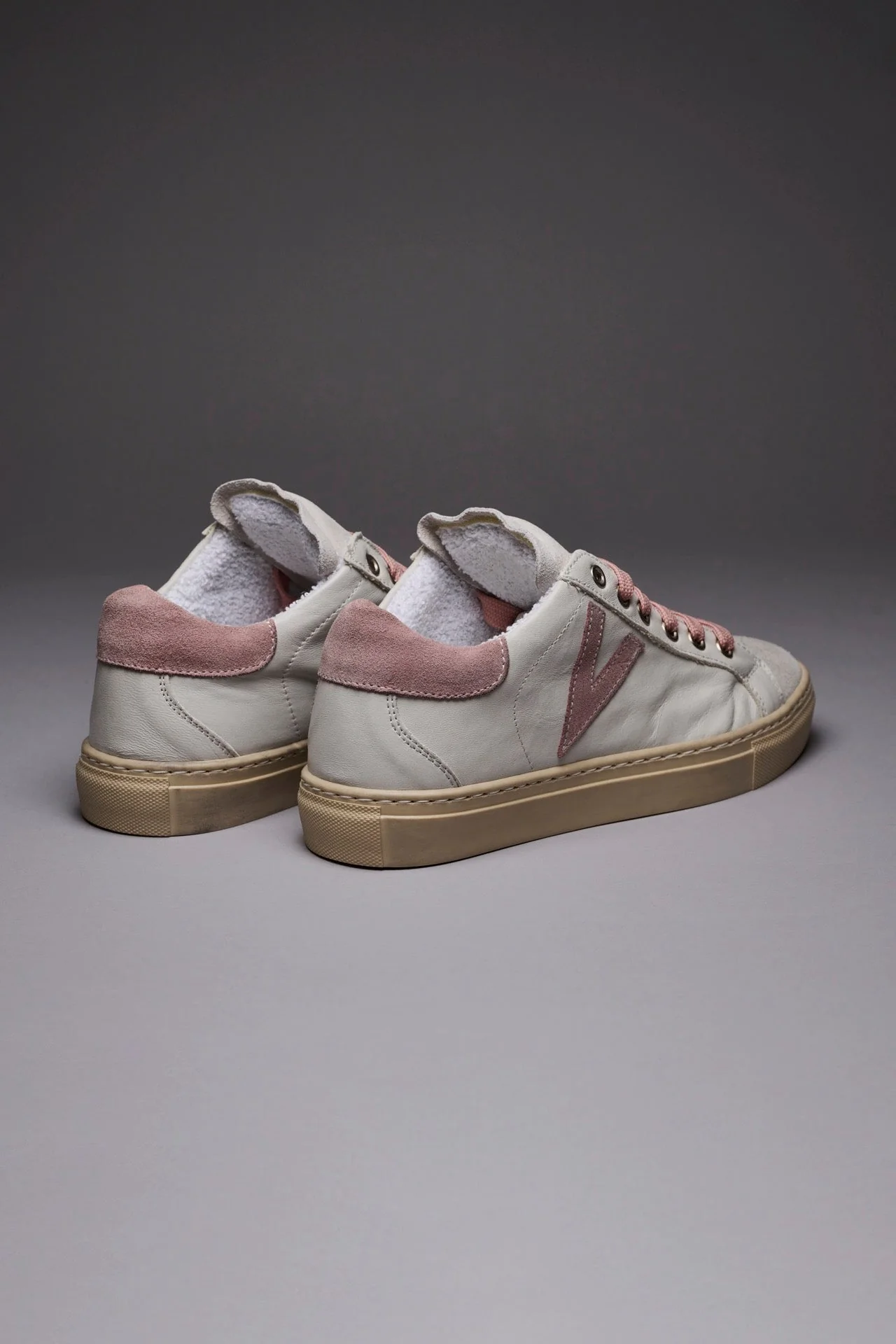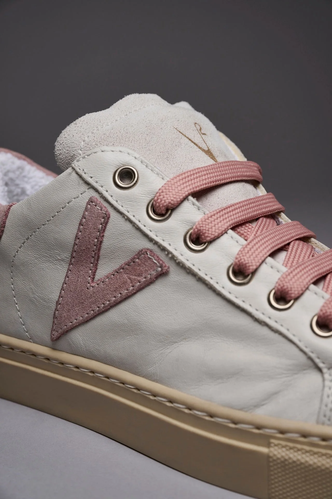 A completare il suo look ci pensano gli immancabili dettagli: lacci rosa, retro e inserto laterale in pelle scamosciata Rosa e il loro classico effetto invecchiato.
