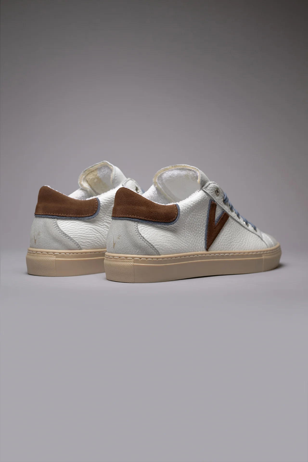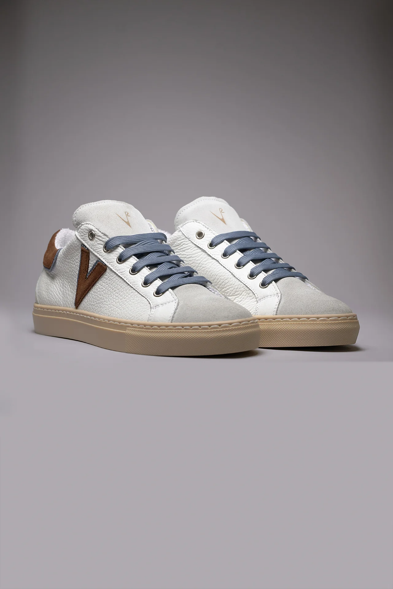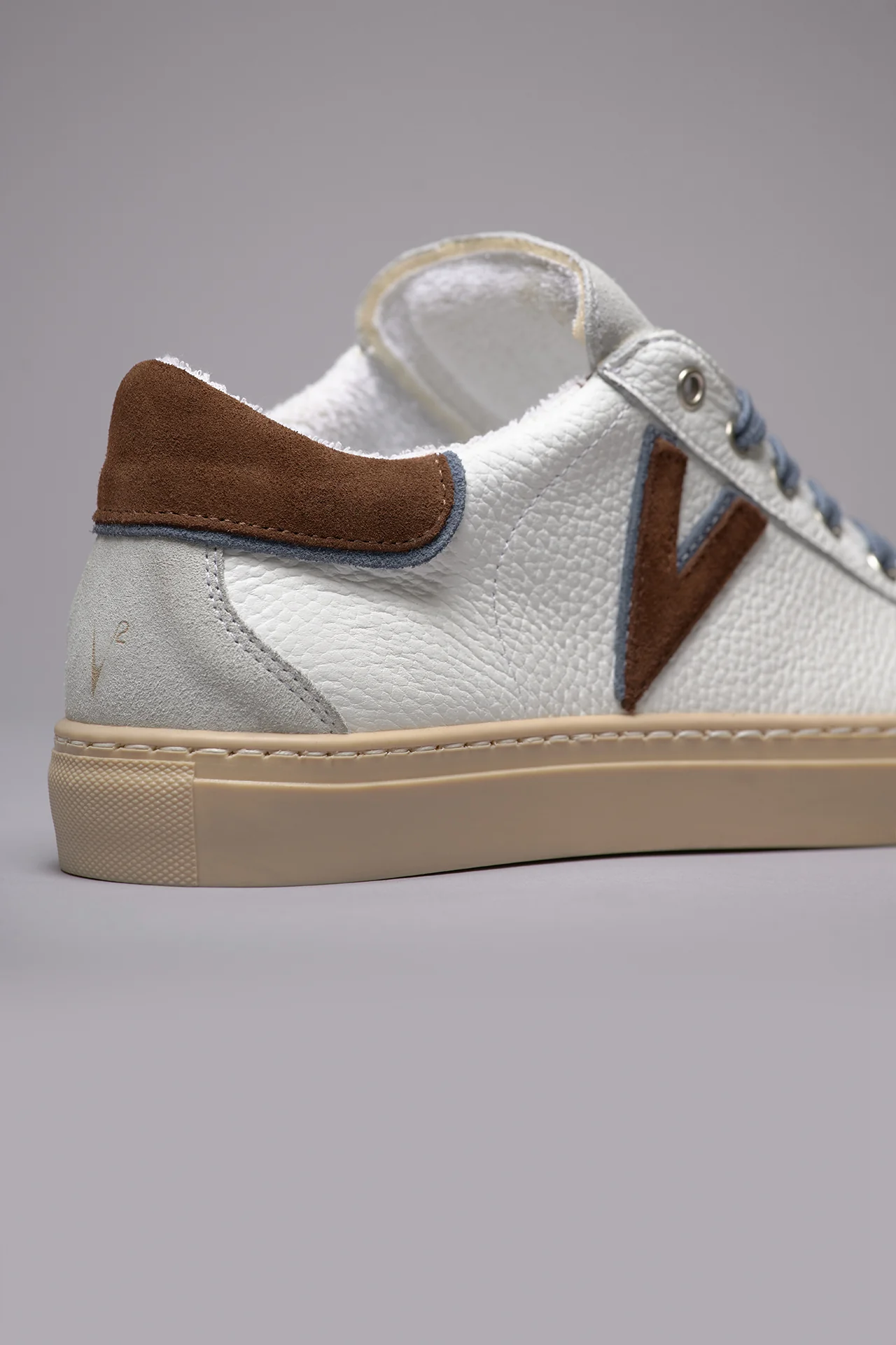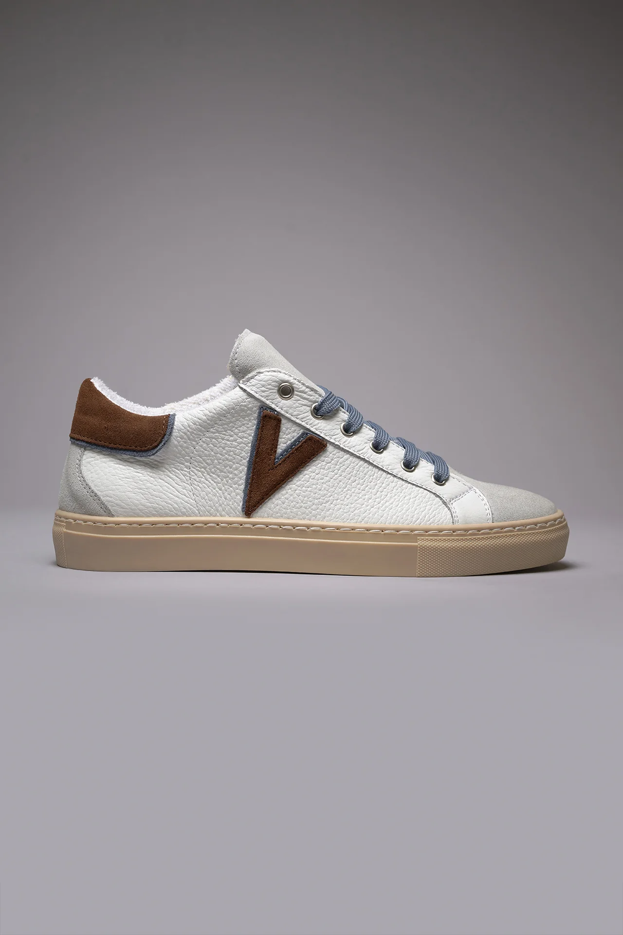 OLYMPIC V – Sneakers a suola bassa in pelle martellata con inserto e retro Bicolor Moro e Jeans