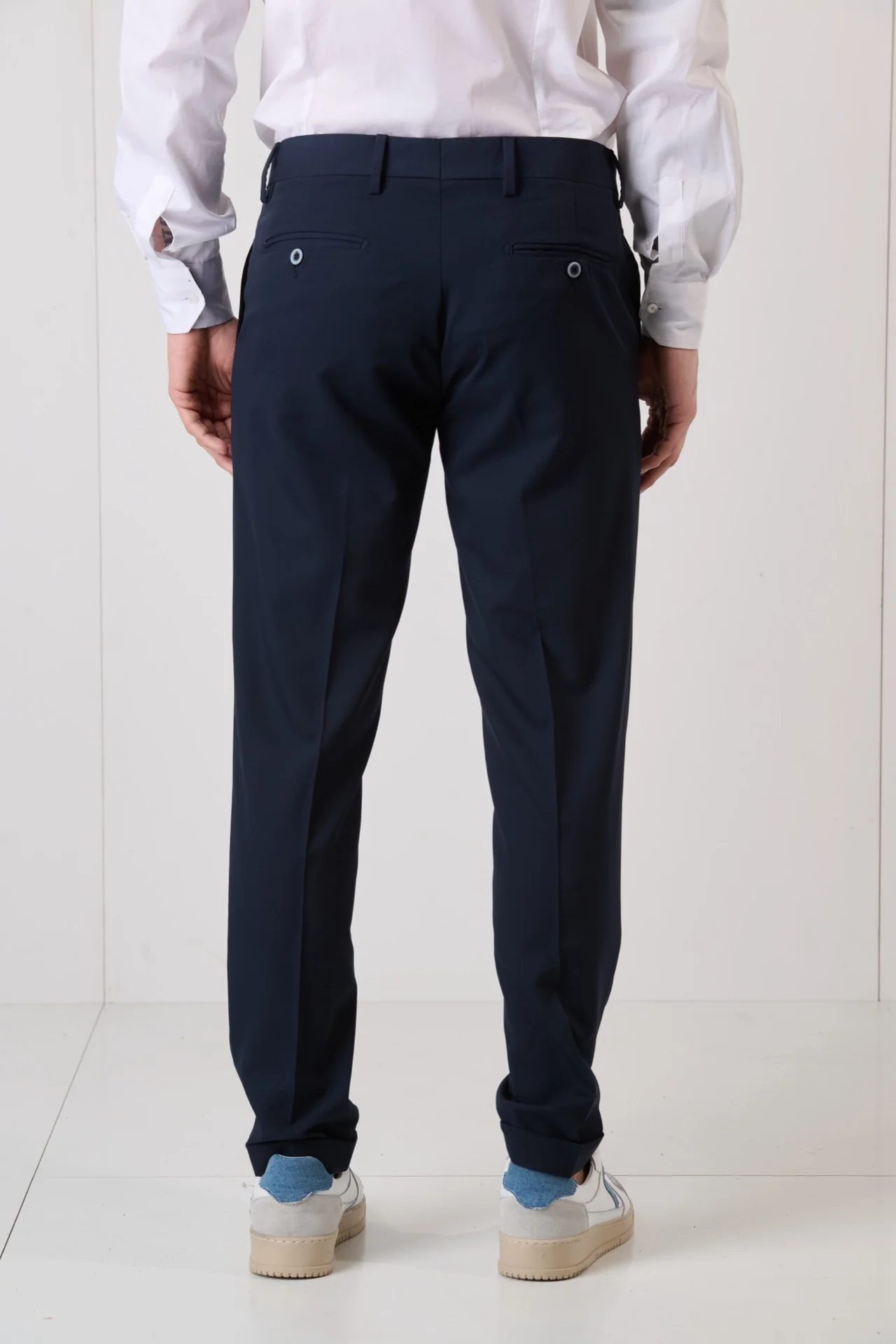 Pantalone di Alta Sartoria Blu con bottone interamente foderato in tessuto V2