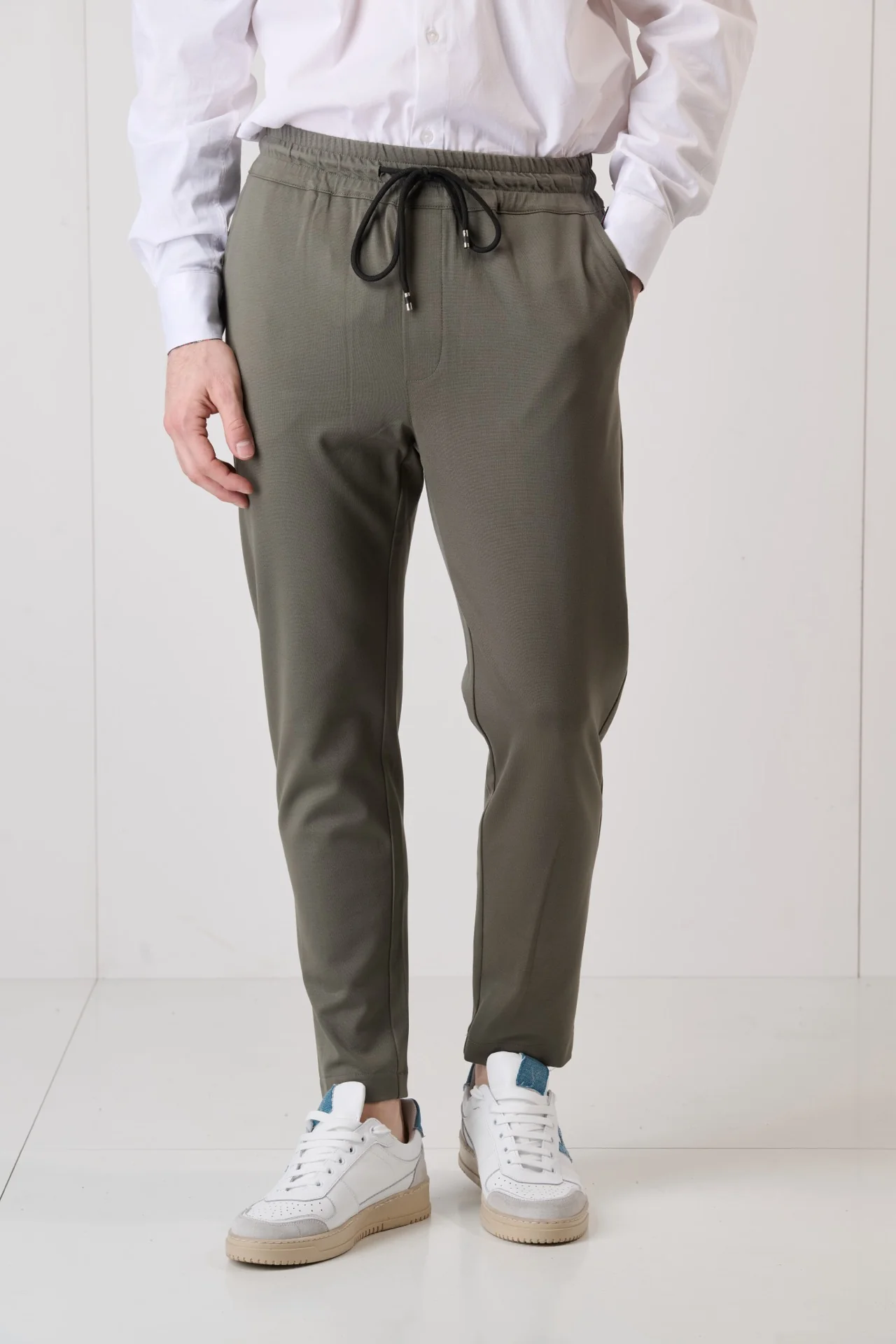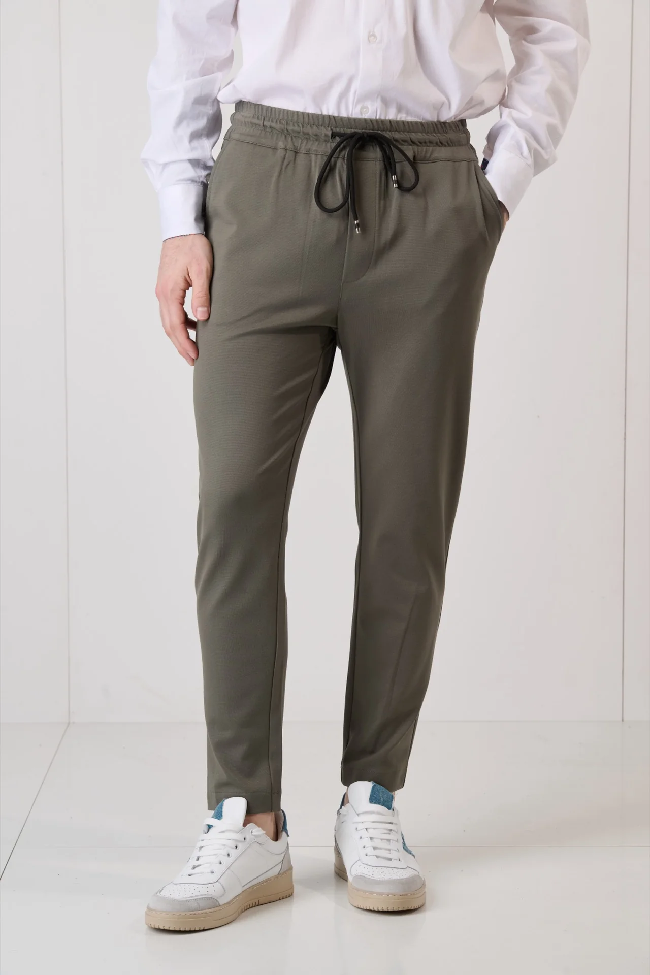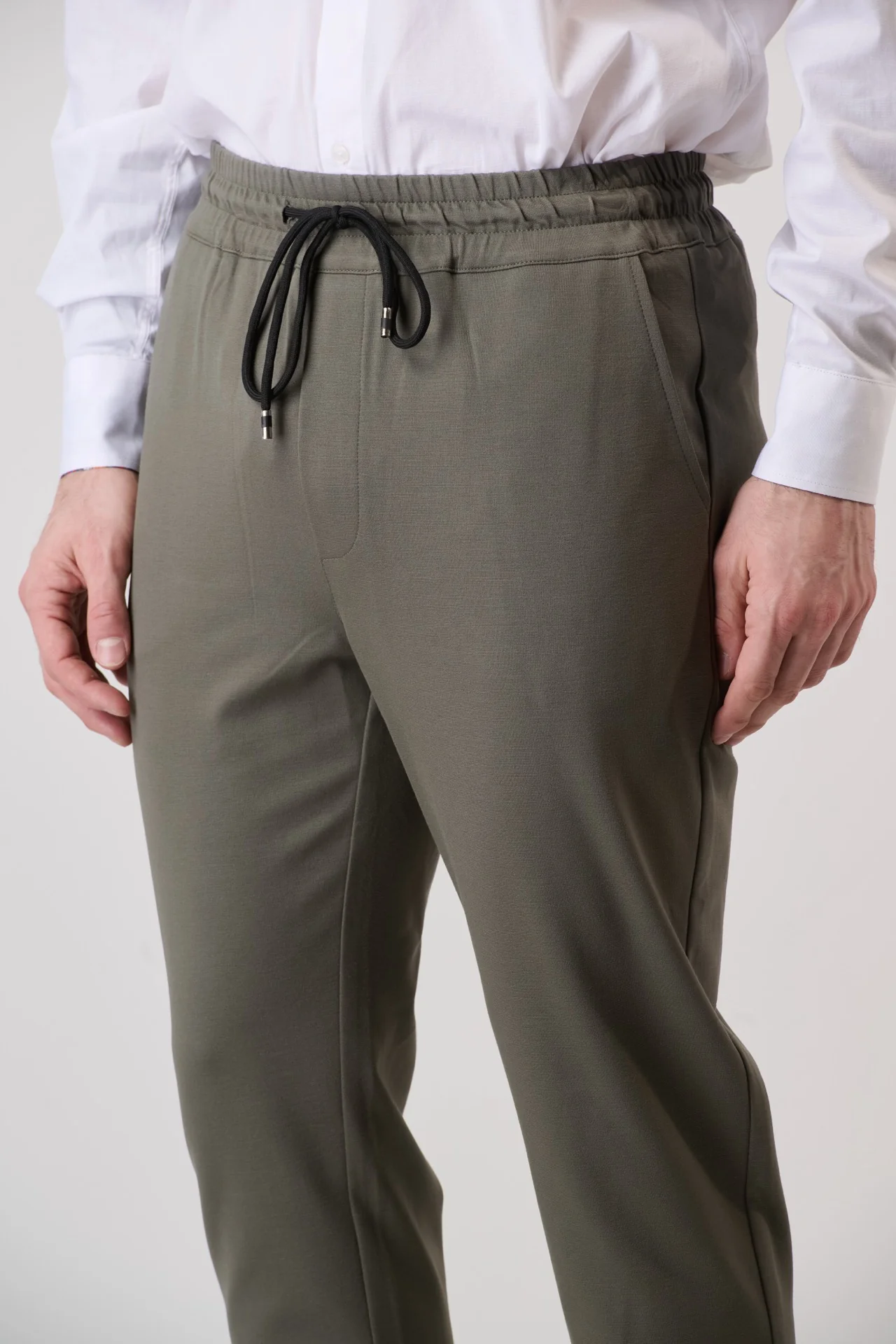 Pantalone Sartoriale Verde Militare con elastico in vita e interni in tessuto V2