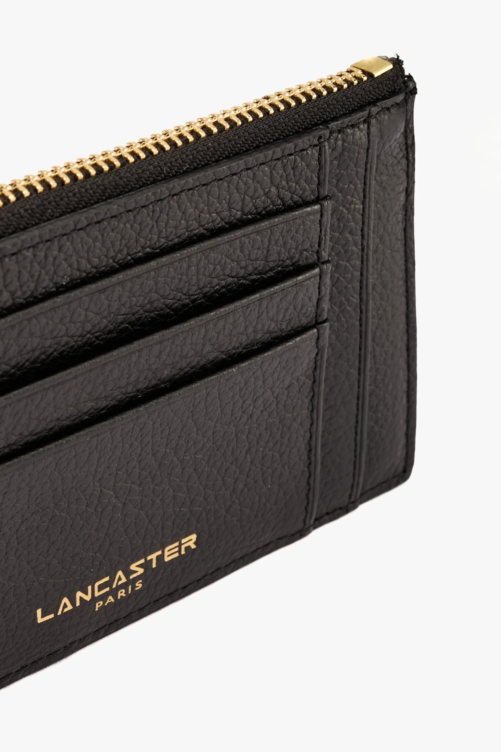Portacarte in pelle martellata nera Slot portacarte e tasca porta monete con zip 12.5x9x1 cm