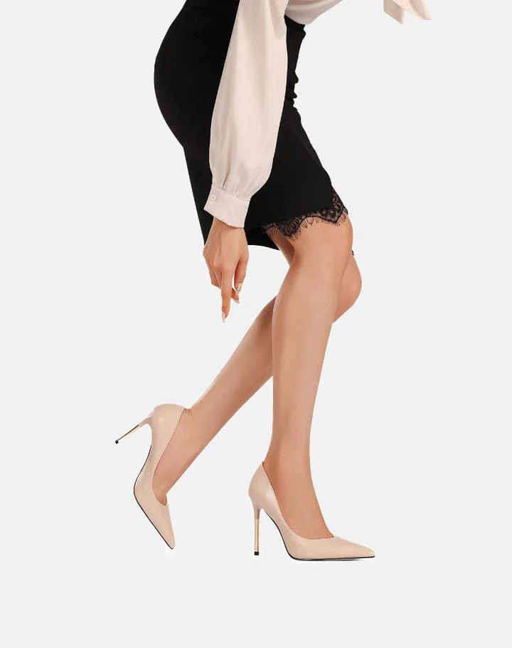 Questa dรฉcolletรฉ a punta รจ simbolo di eleganza, perfetta per completare ogni outfit con raffinatezza. Il design minimalista รจ arricchito dal tacco a spillo con dettagli in oro, che aggiungi un tocco di lusso e modernitร