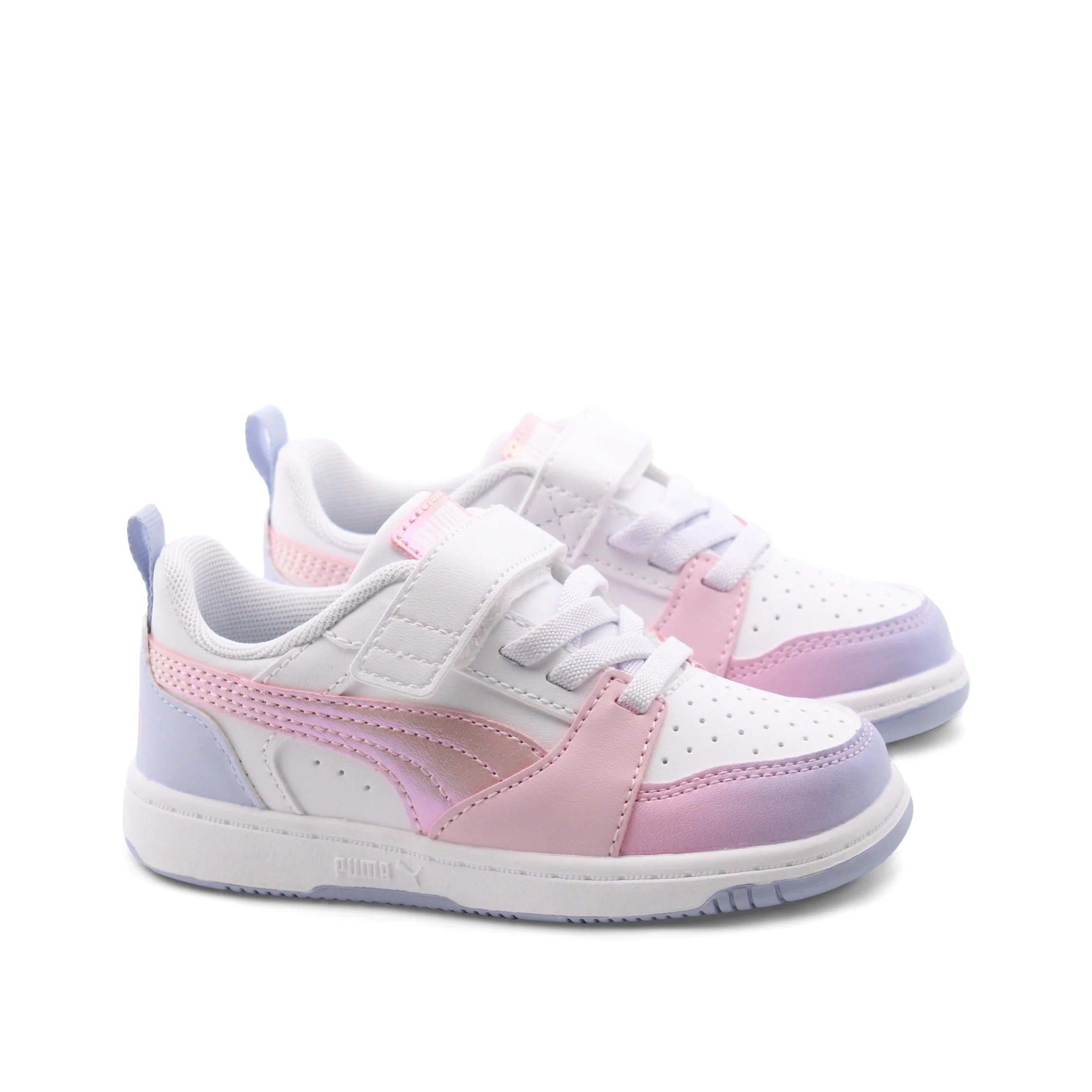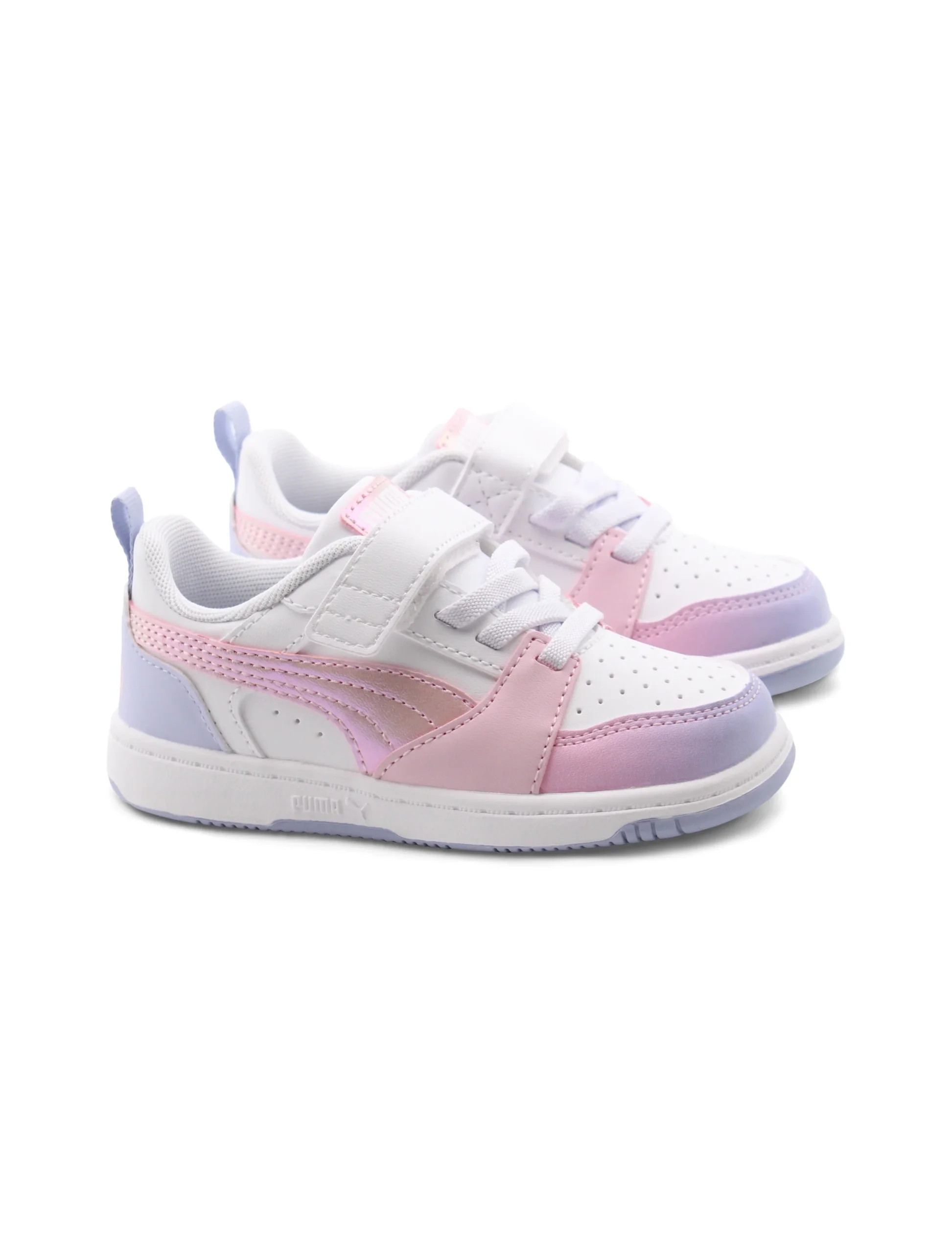 Le Rebound V6 Blurry Dreams di Puma sono il perfetto mix di stile e comfort per le piccole esploratrici. Con una chiusura pratica a velcro e lacci elastici, queste sneaker si indossano in un attimo, dando a tua figlia la libertร di muoversi senza pensieri.