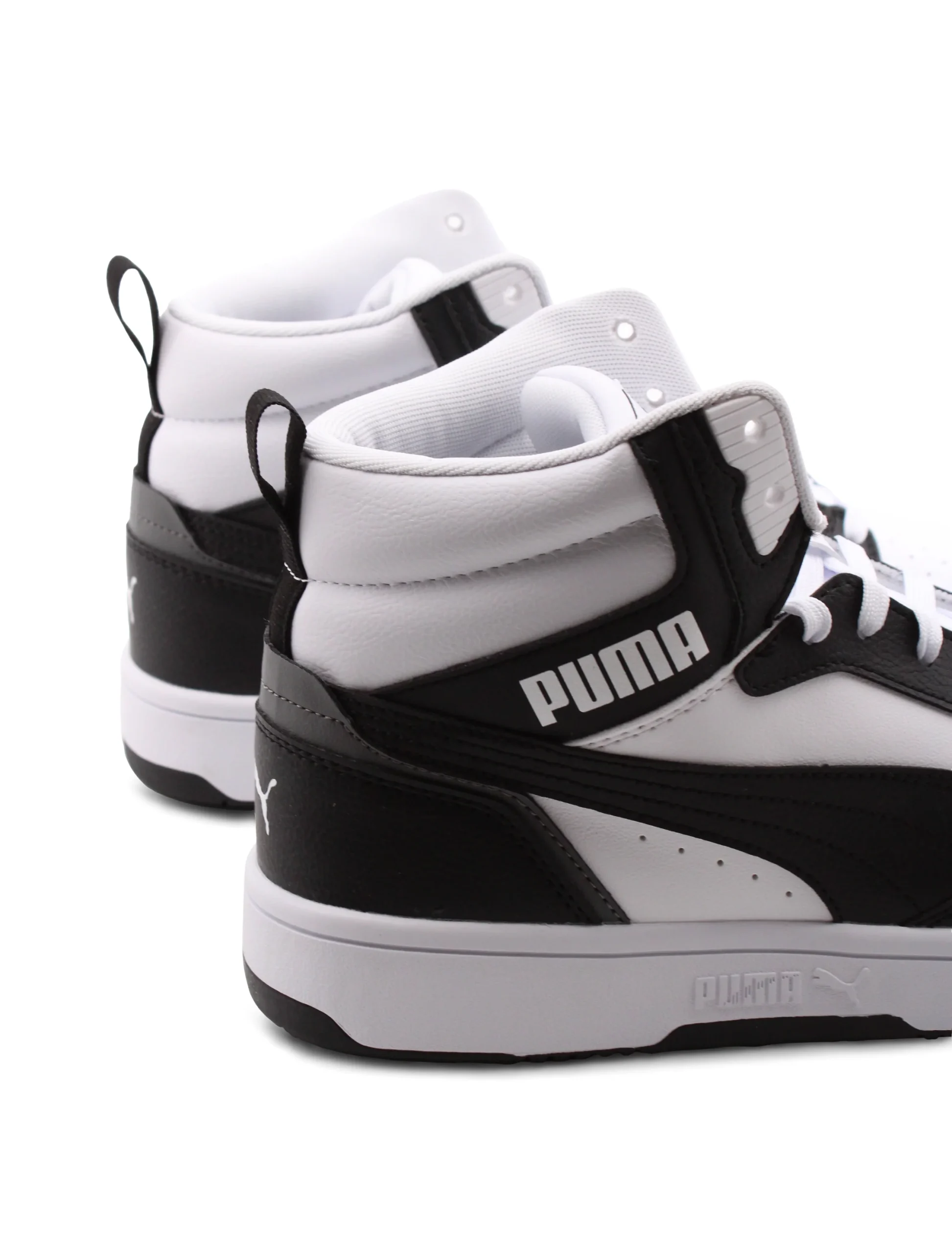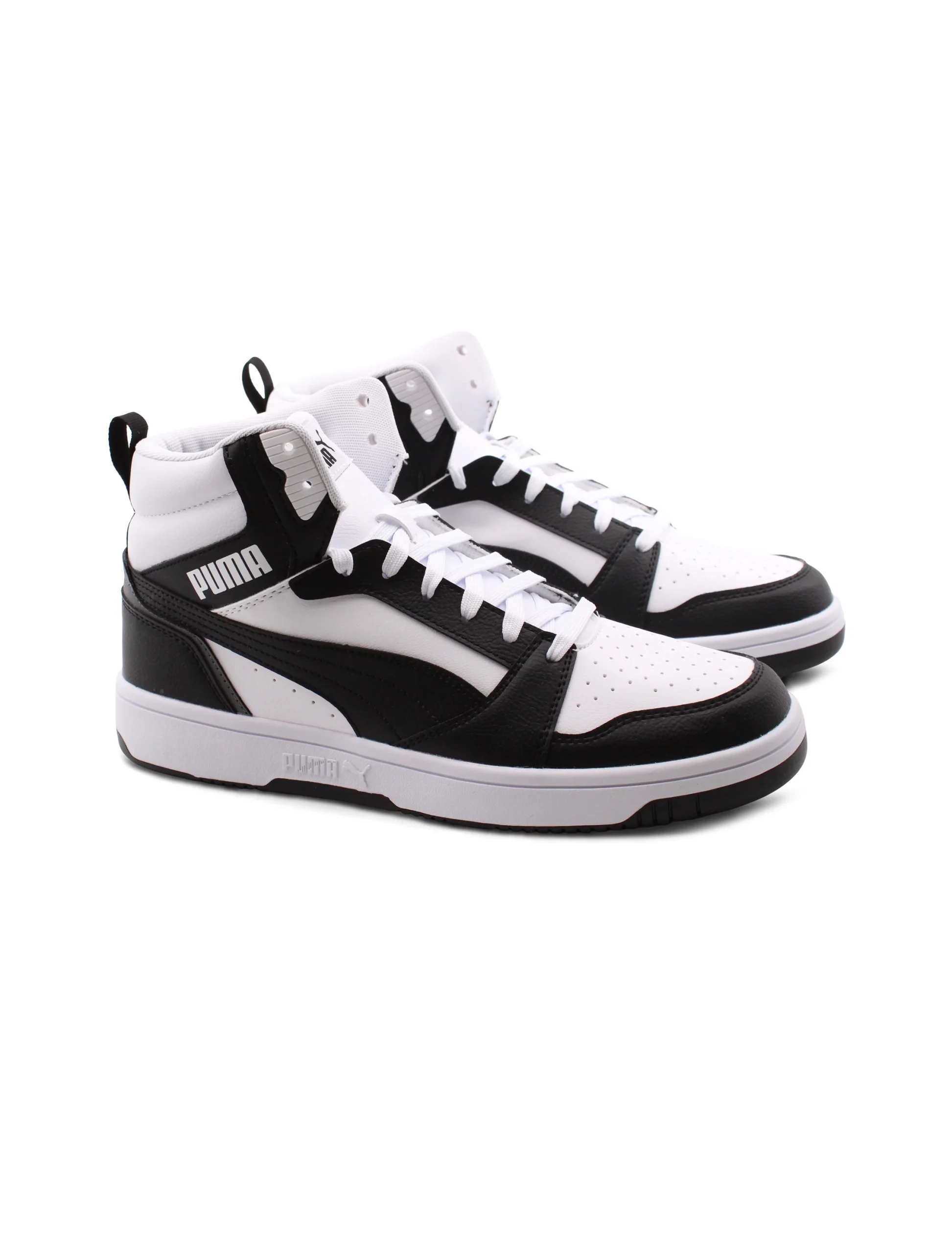 Sneaker alta da uomo Puma Rebound V6 in pelle sitnetica con soffice sottopiede removibile in tessuto e suola in gomma. Comoda e alla moda. Perfette per completare i tuoi look streetwear.