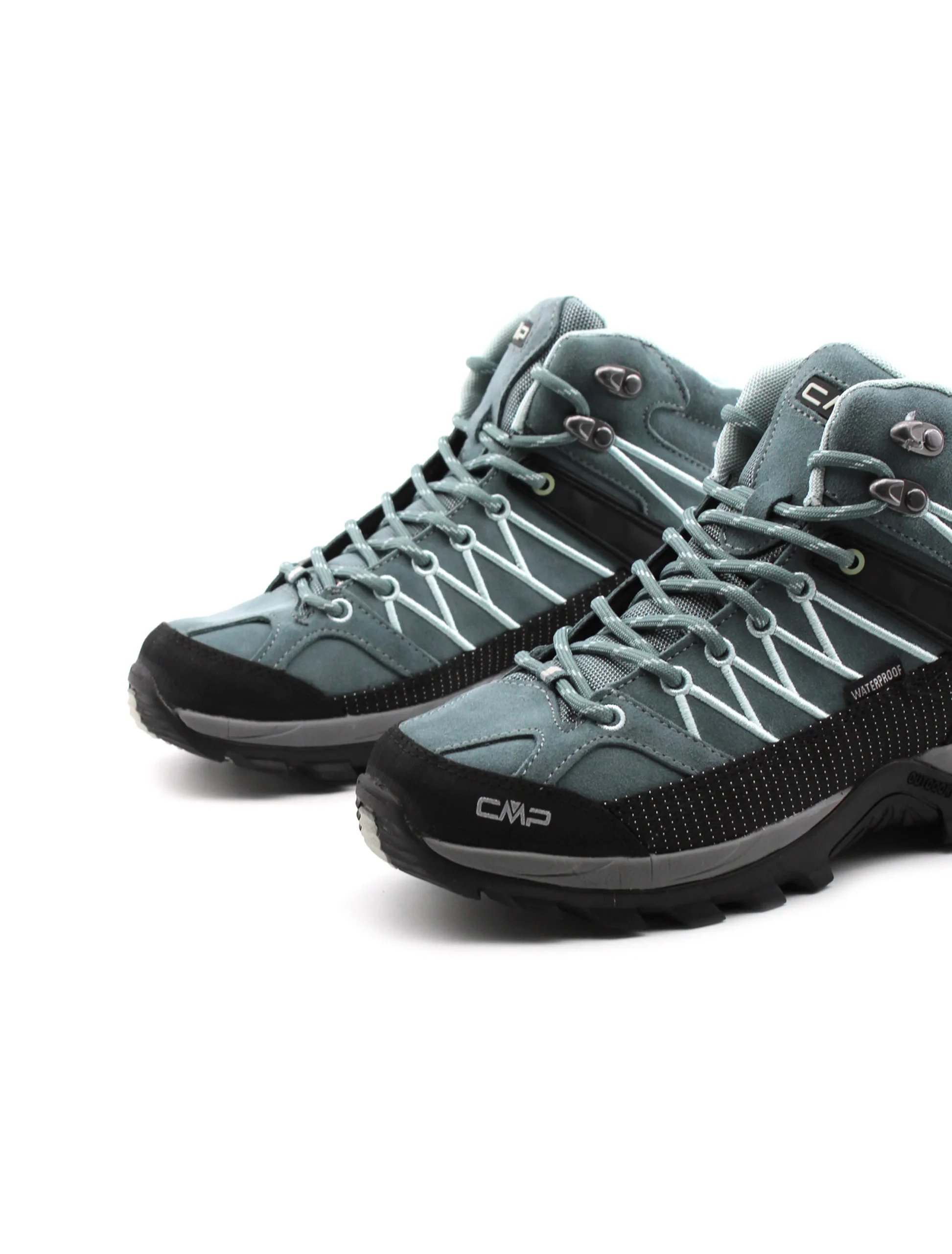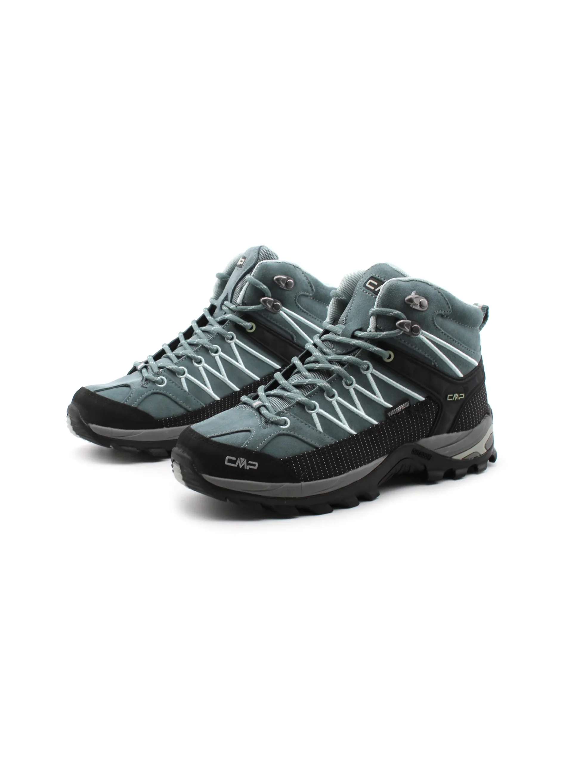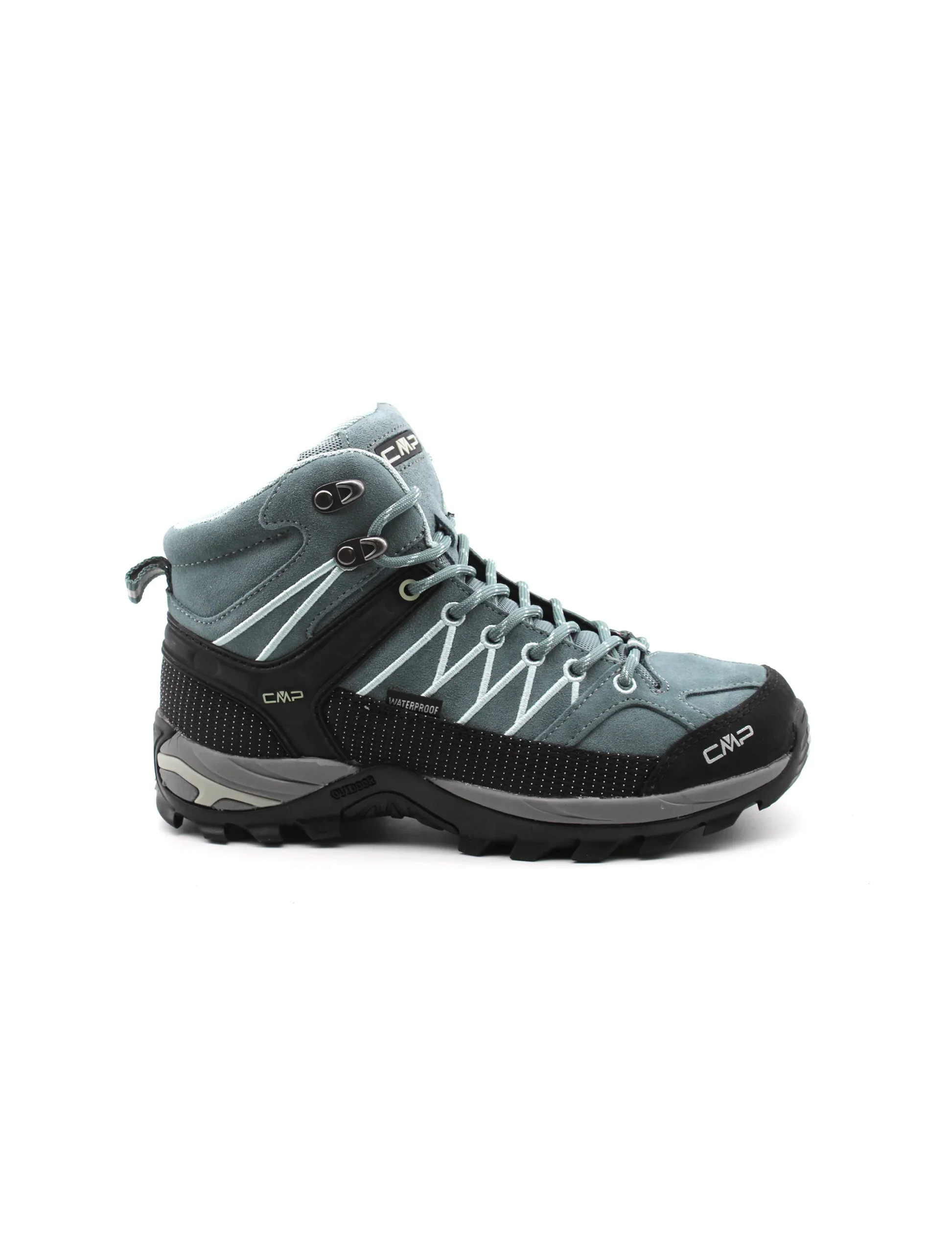 Scarpone trekking da donna Cmp Rigel Mid in vera pelle con inserti in tessuto e fondo in gomma Fullongrip, sottopiede Ortholite e fodera Waterproof Clima Protect. Modello ideale per le tue escursioni.