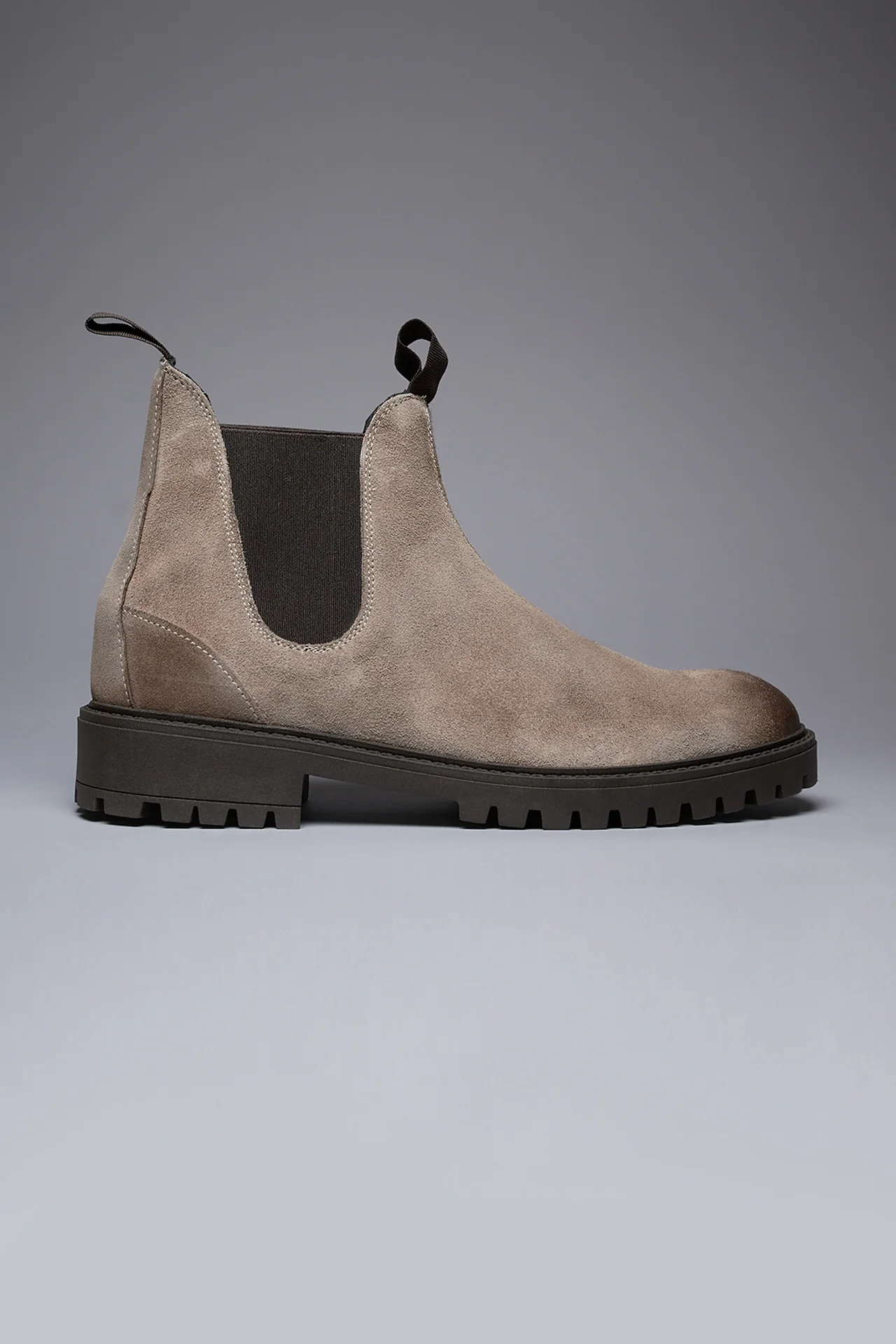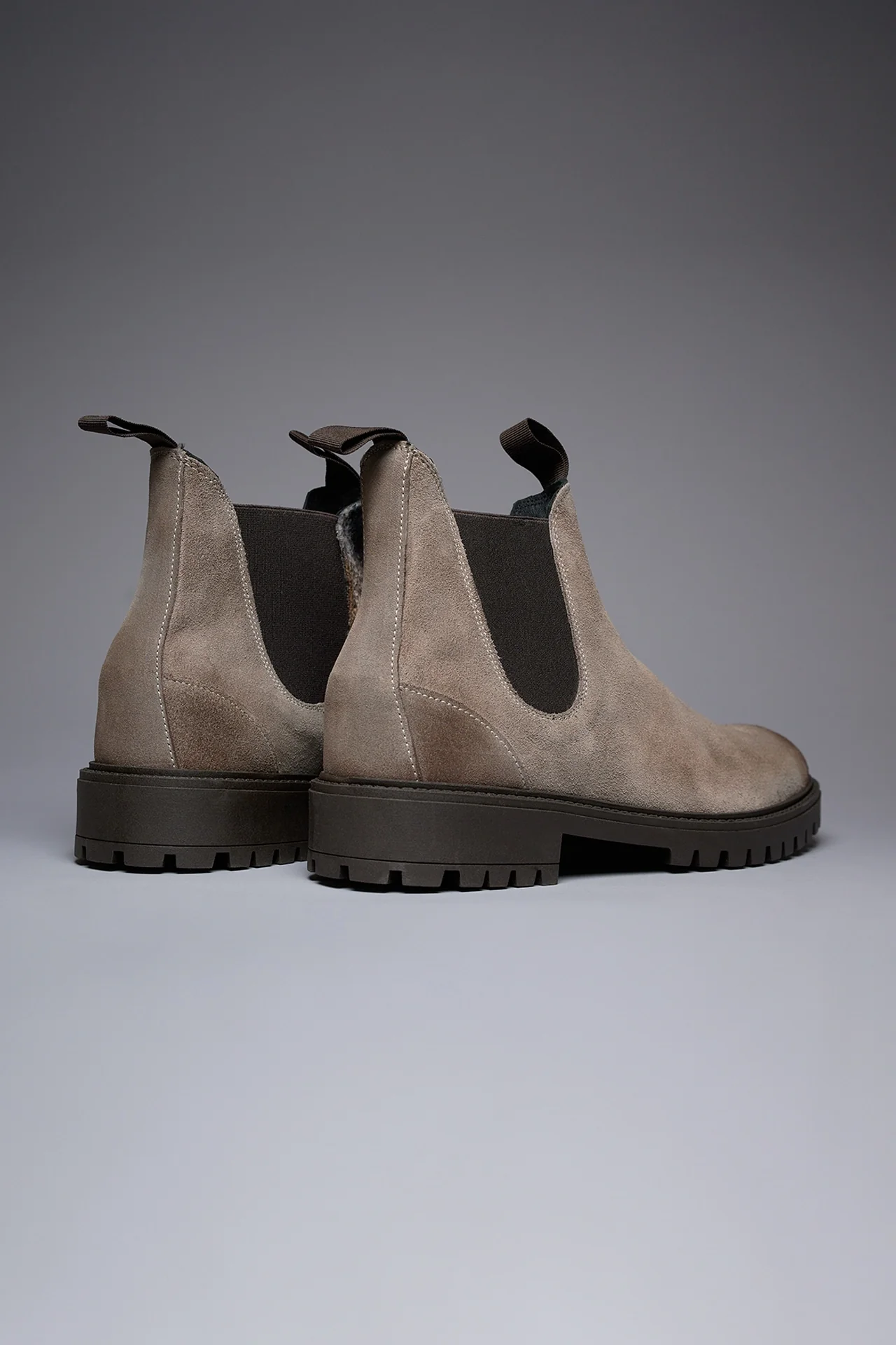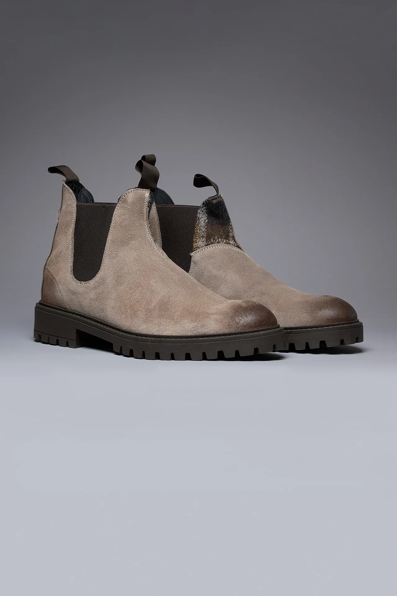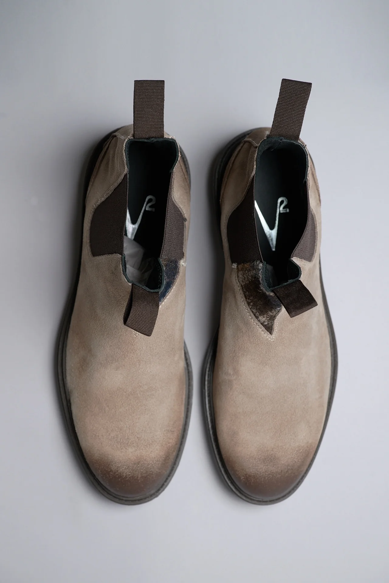 SHERLOCK – Stivaletto scamosciato Tortora con inserto in tessuto V2