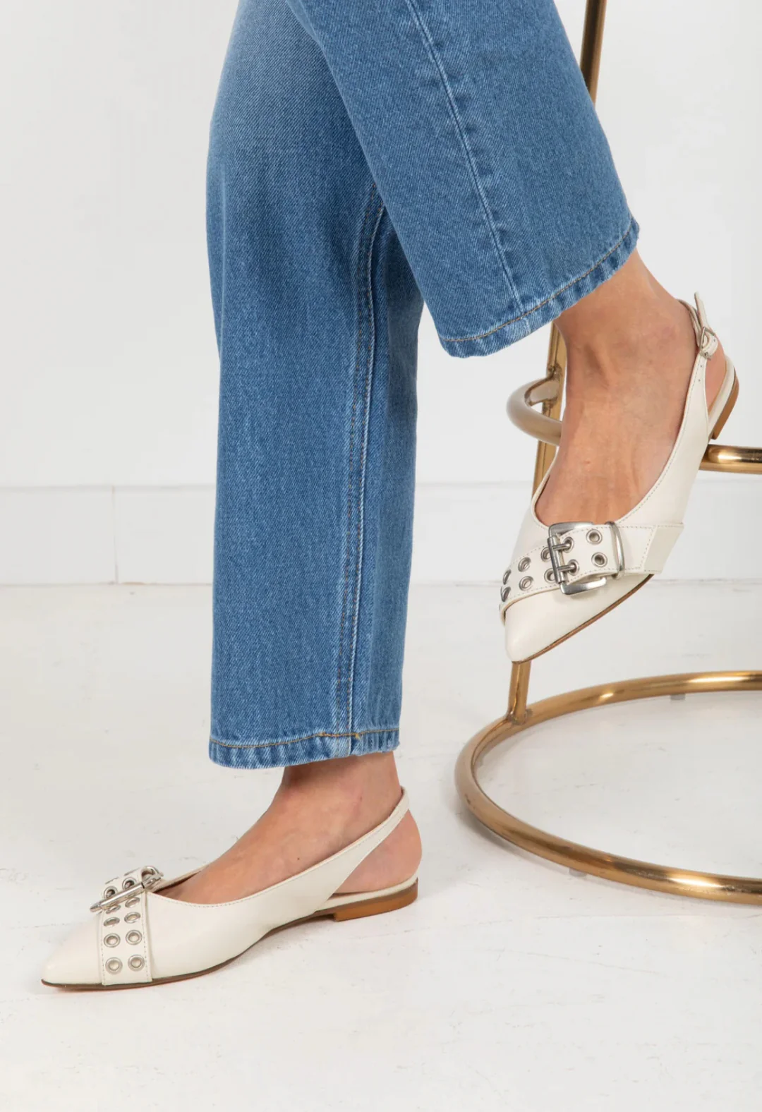 Slinback a punta con fibia, chiusura con cinturino regolabile, altezza tacco 2 cm