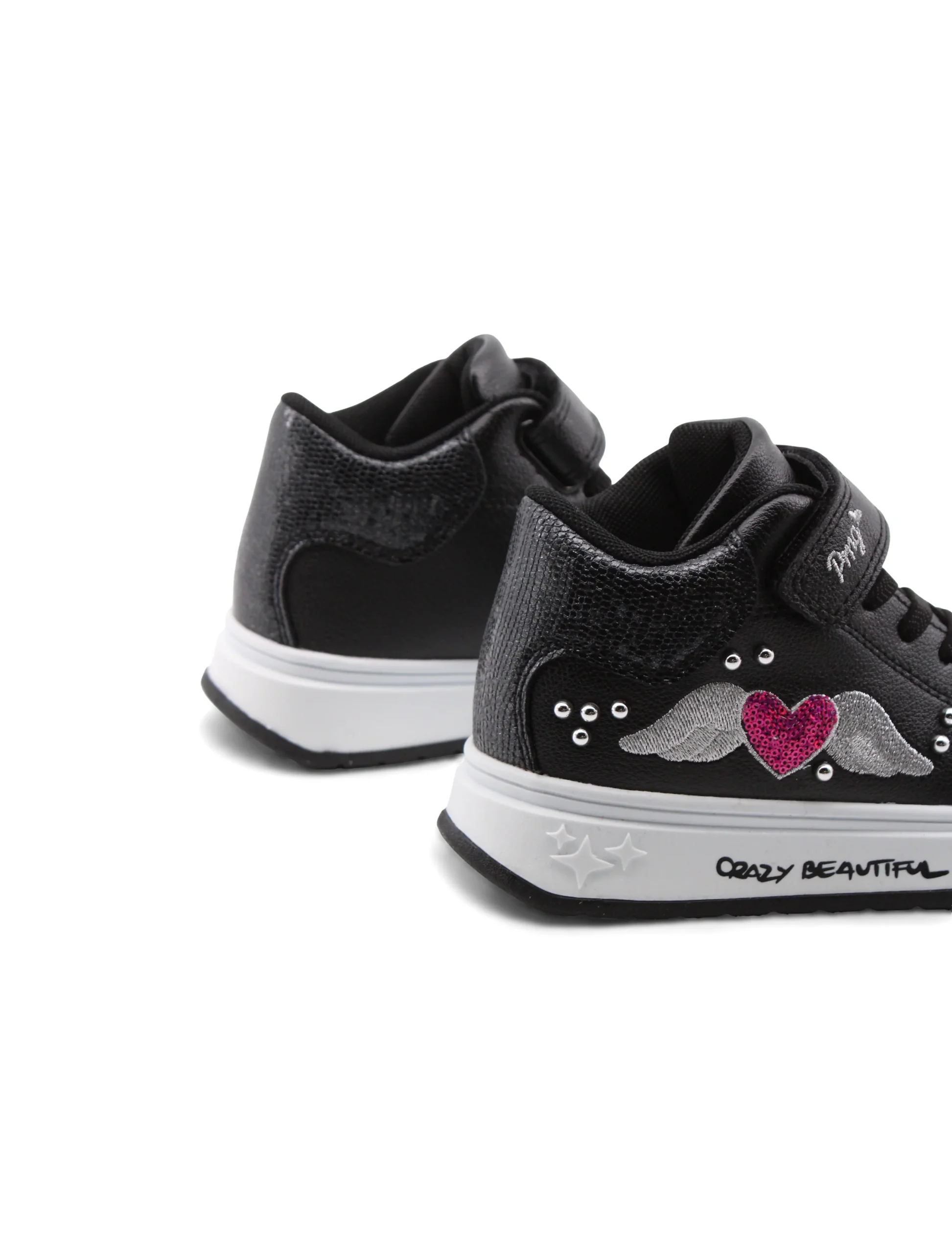 Sneaker bimba con paillettes e borchie