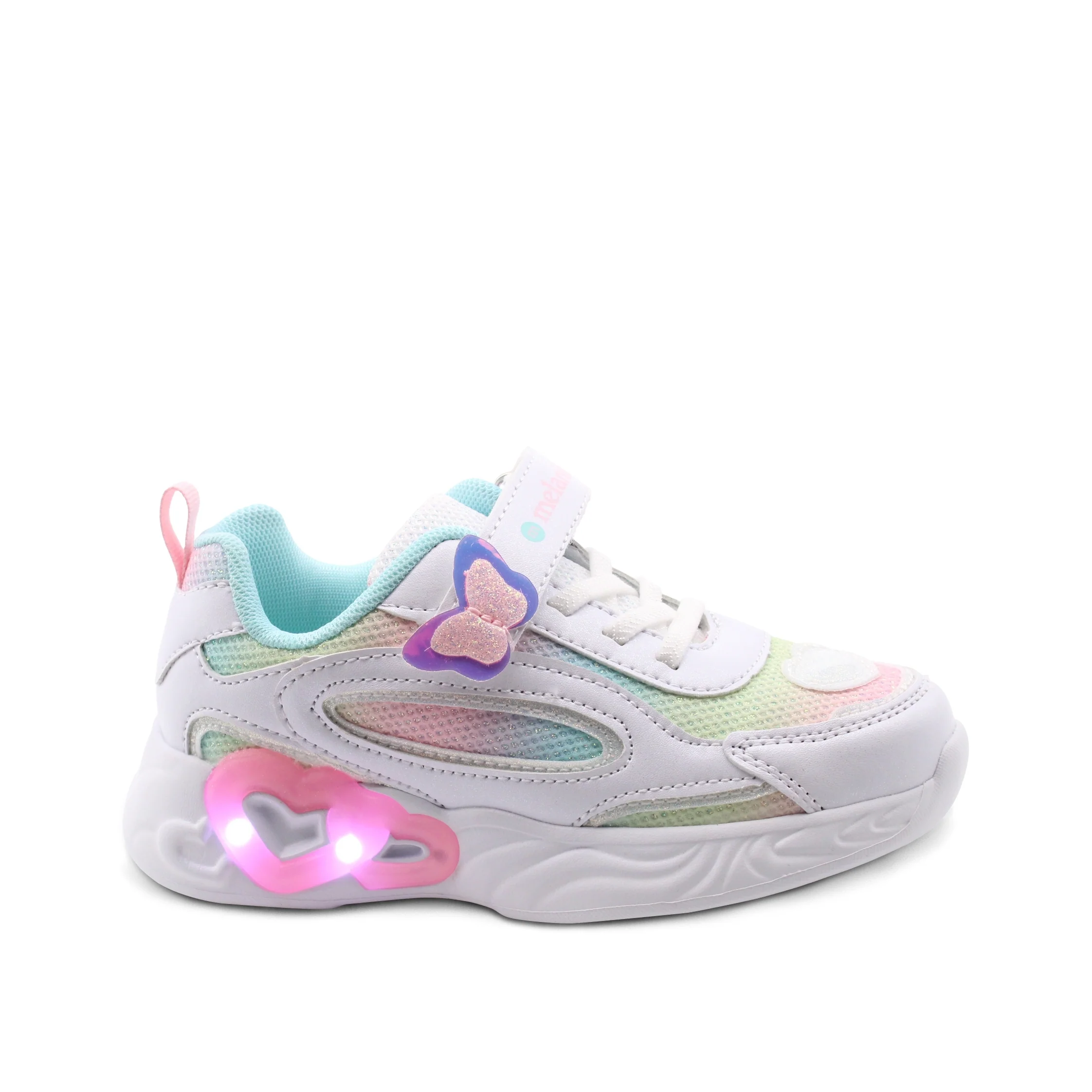 Le sneaker multicolor con luci da bimba di Melania sono il jackpot per ogni piccola fashionista! La chiusura con velcro e lacci elastici rende la vita facile: basta un attimo per infilarsi le scarpe e partire allโavventura. Non solo pratiche, ma anche super comode grazie alla fodera in tessuto, perfetta per mantenere i piedi freschi anche nelle giornate piรน attive.