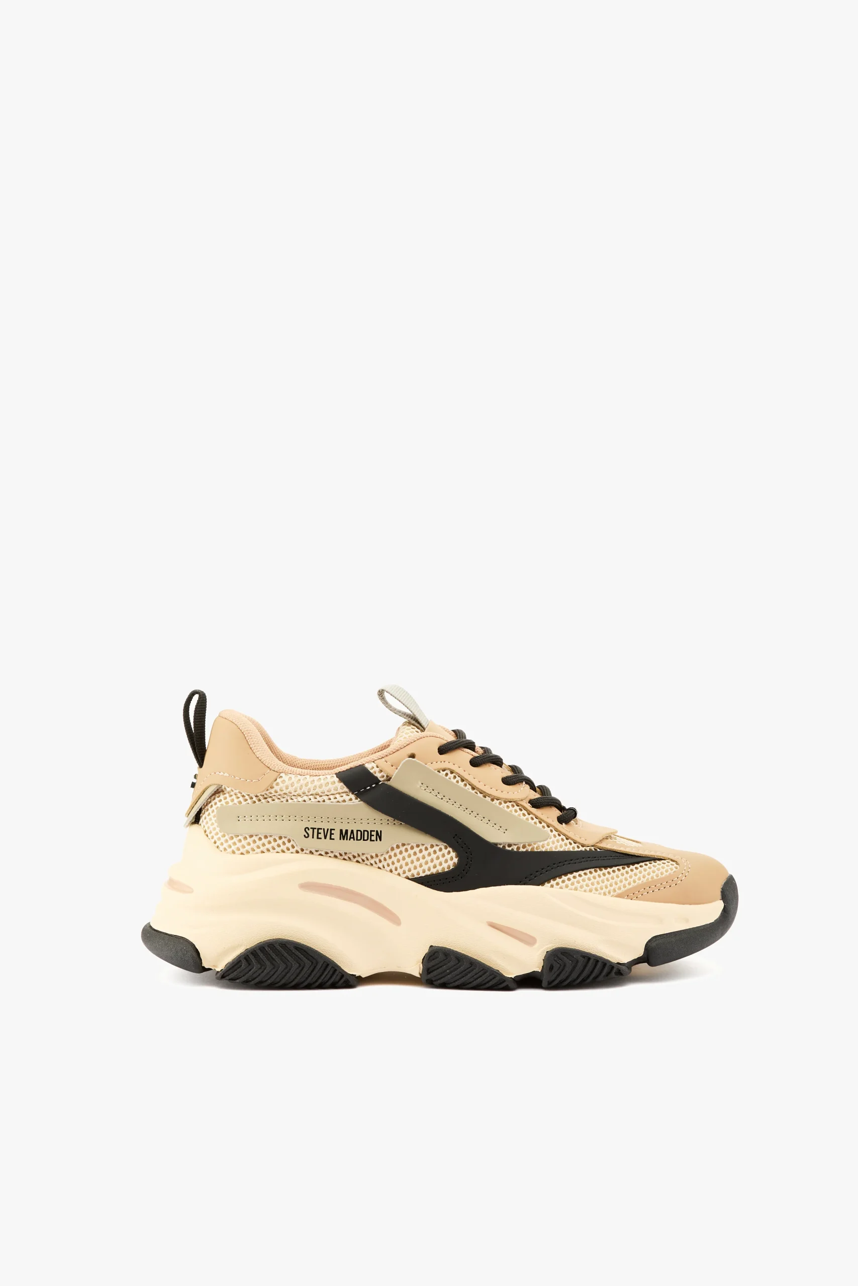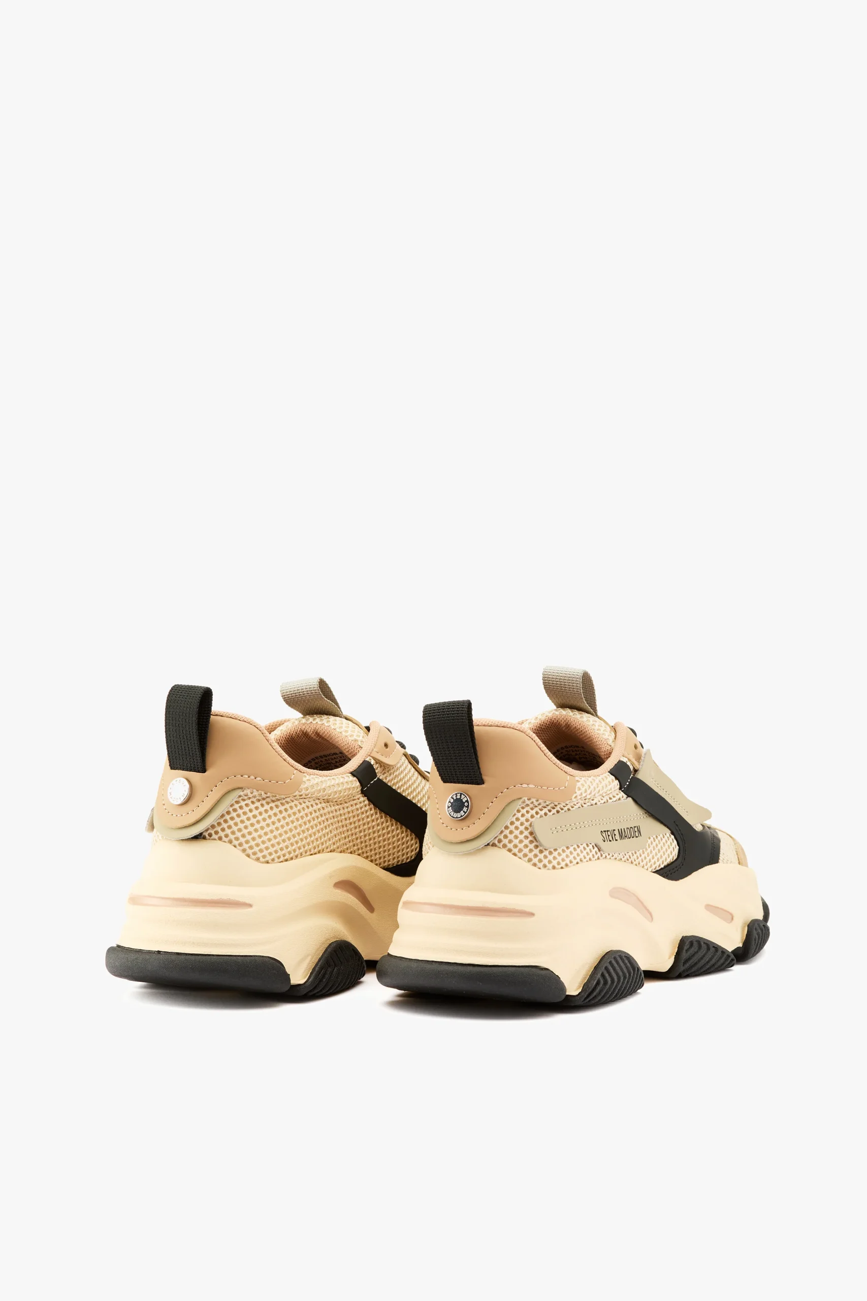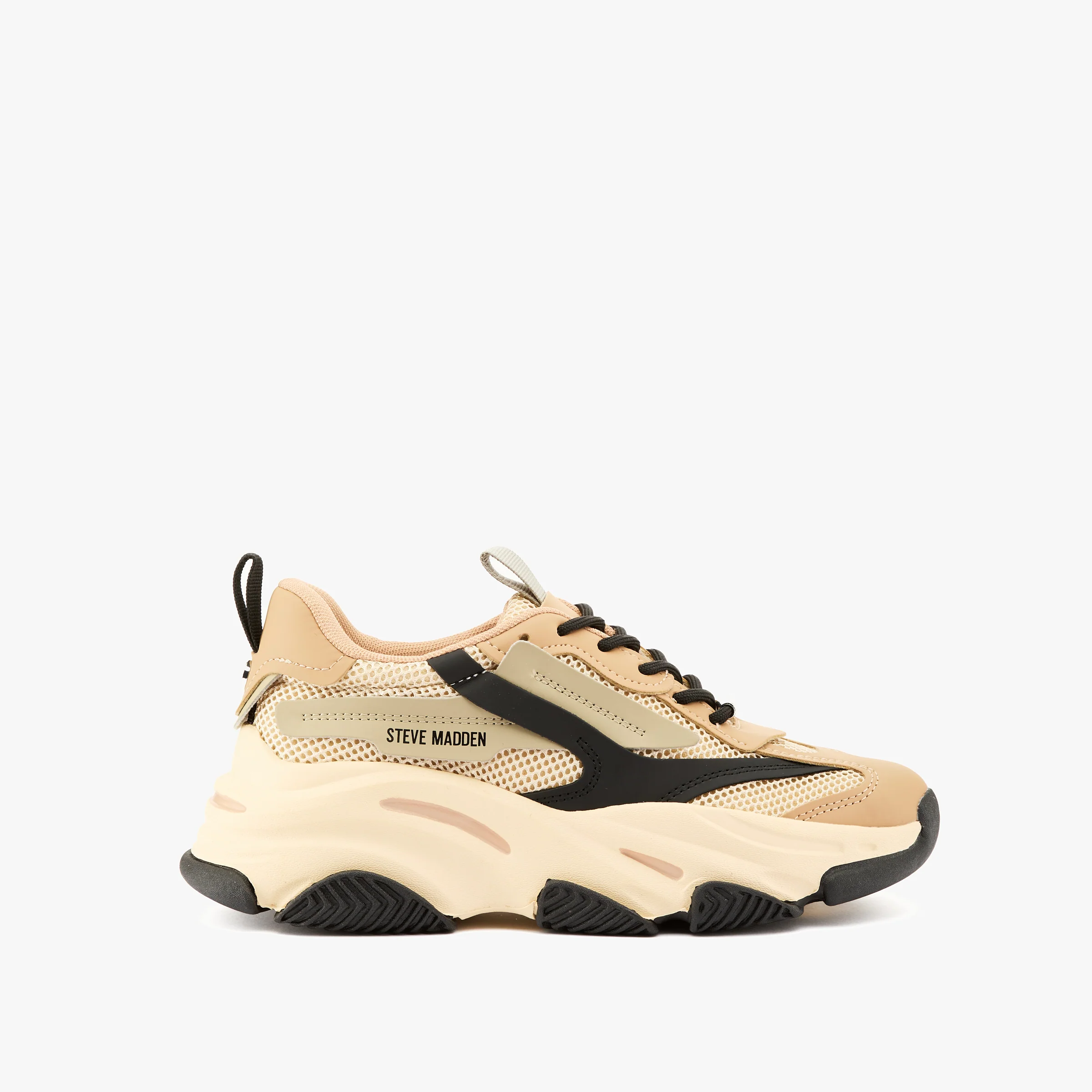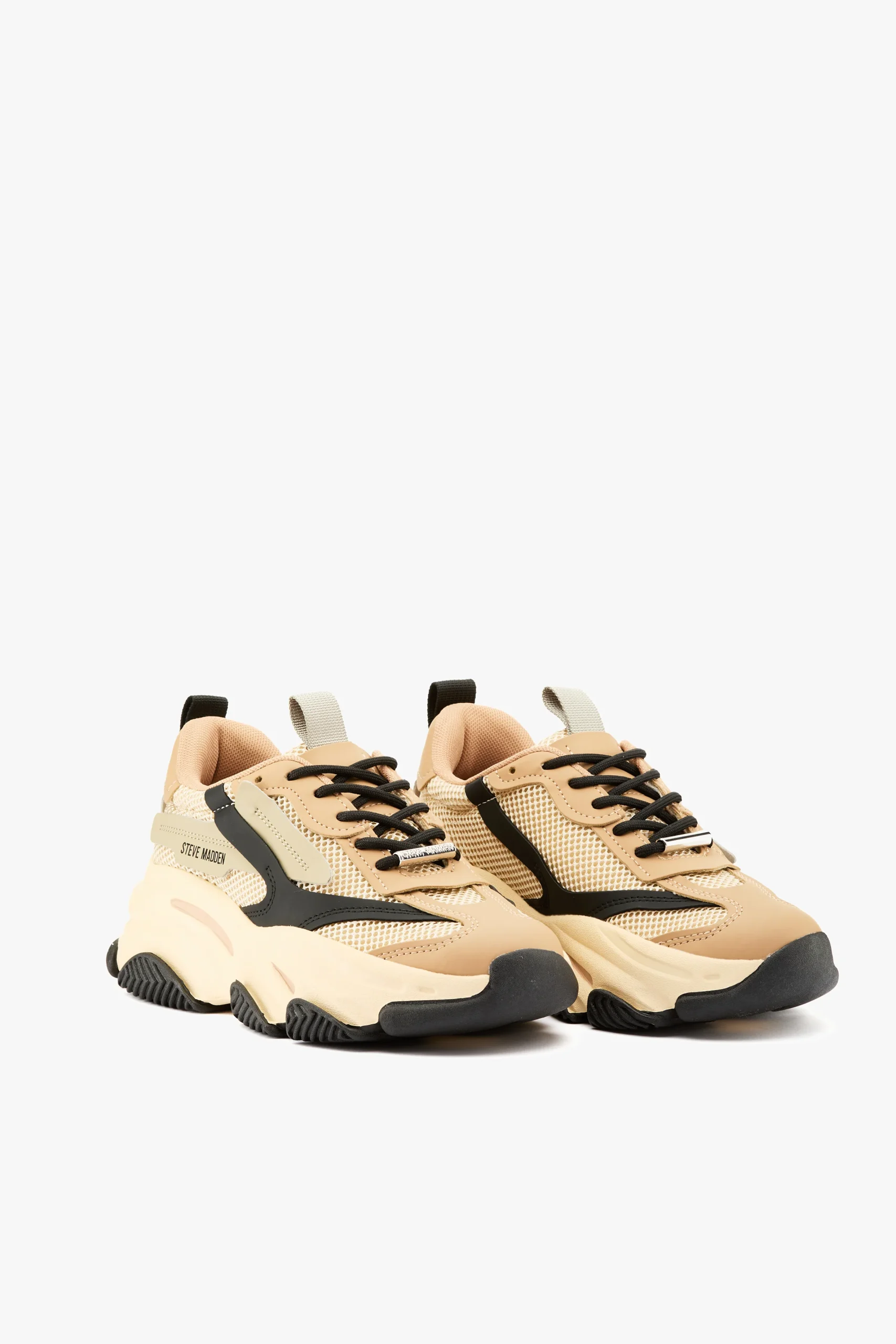 Sneaker in pelle vegetale e tessuto khaki e nero