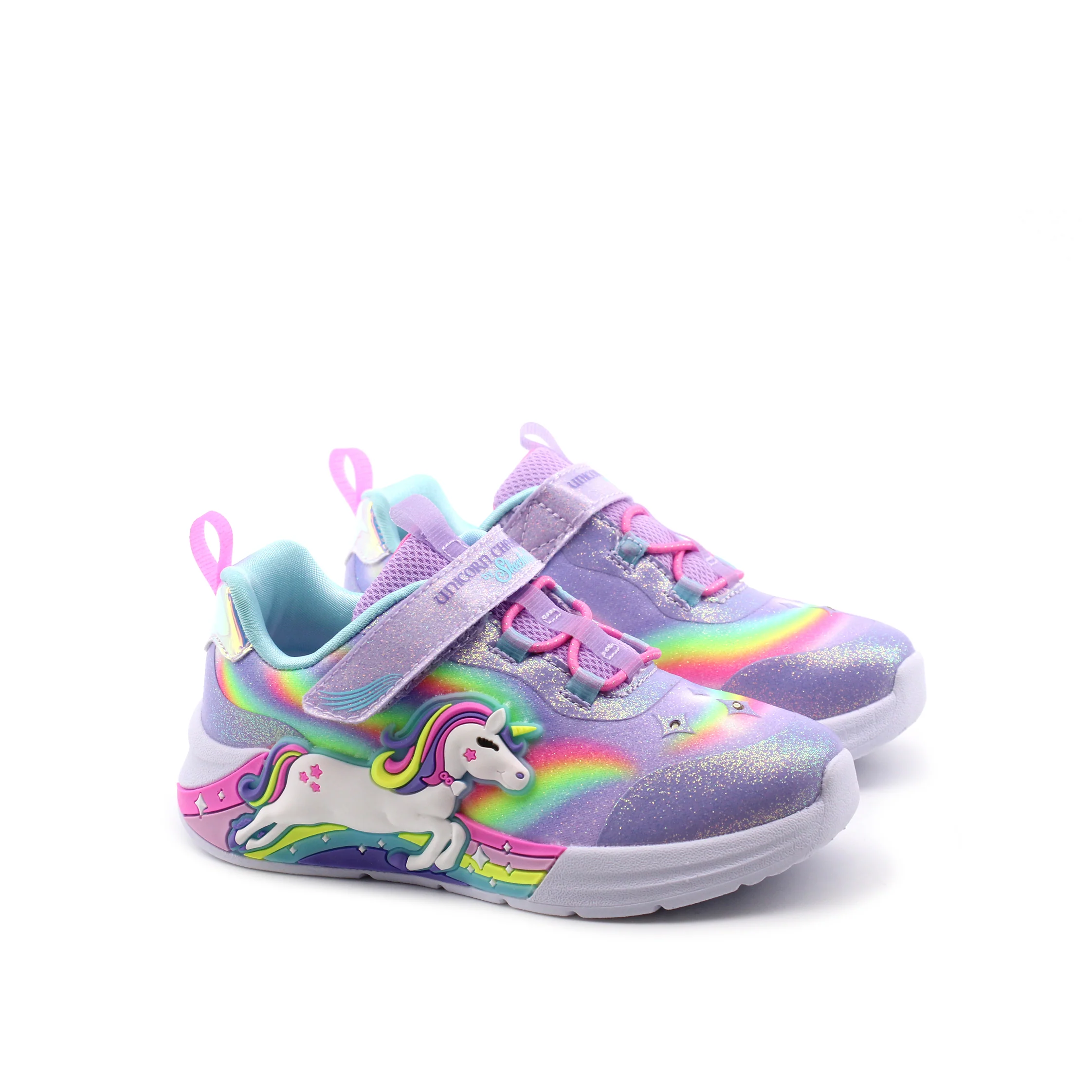 Presentiamo le Sneakers primi passi da bimba di Skechers, pensate per accompagnare ogni piccolo passo con stile e comfort. La chiusura combinata di velcro e lacci elastici rende queste scarpe facili da indossare e garantisce una vestibilitร sicura, permettendo alle bambine di muoversi in libertร .