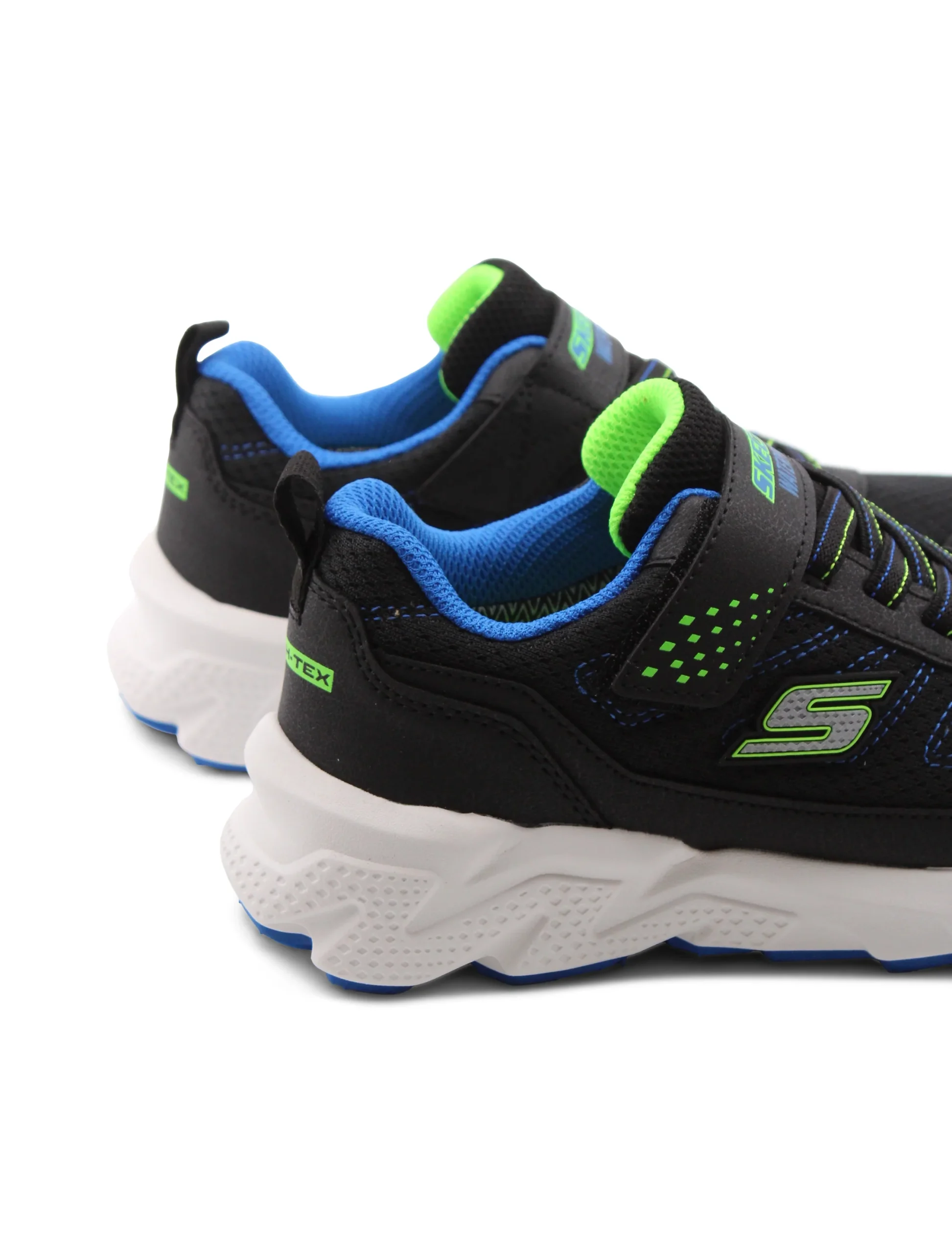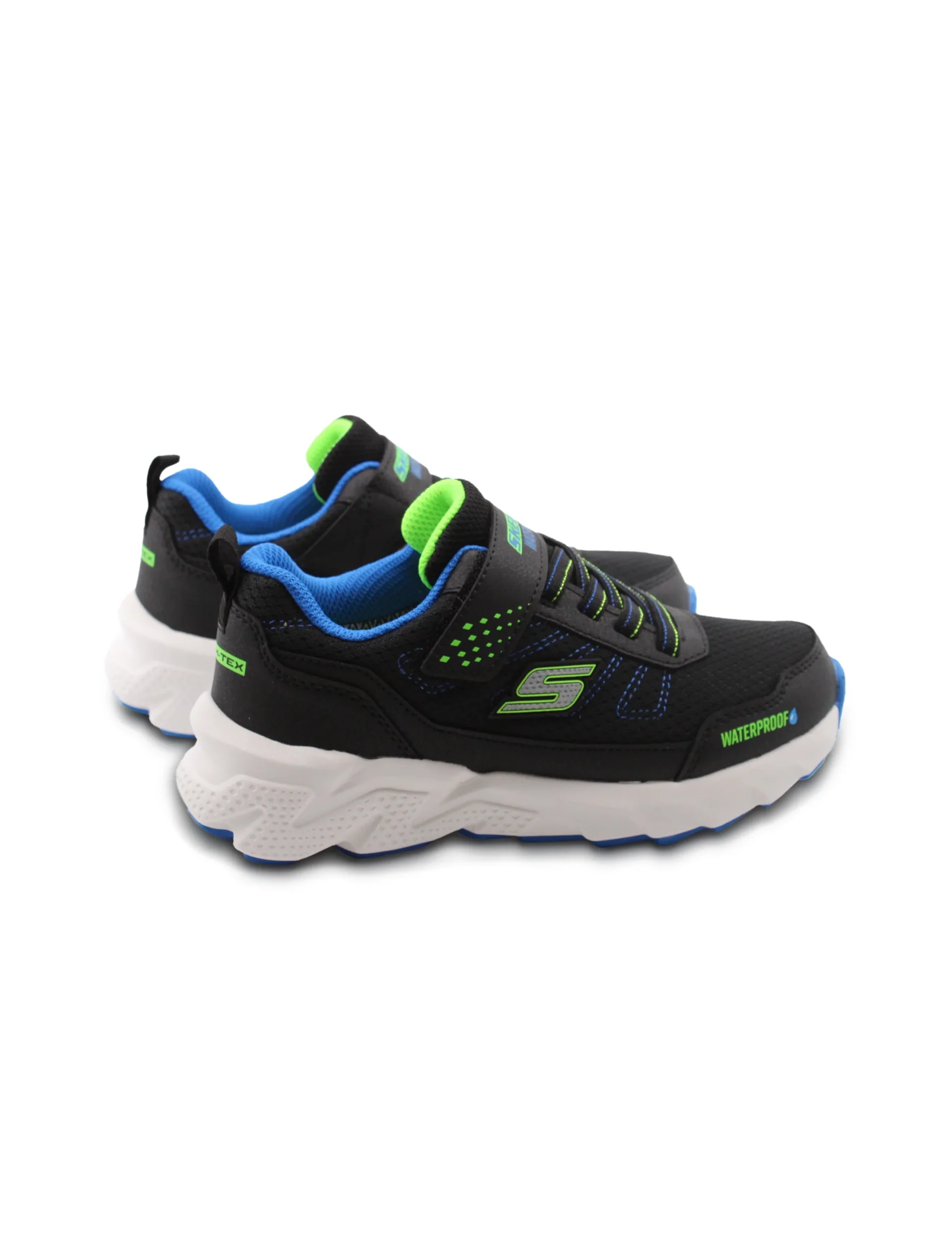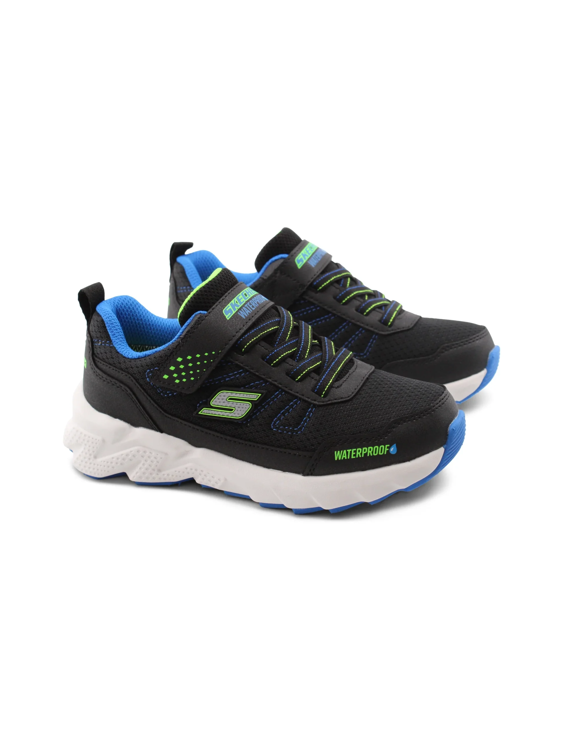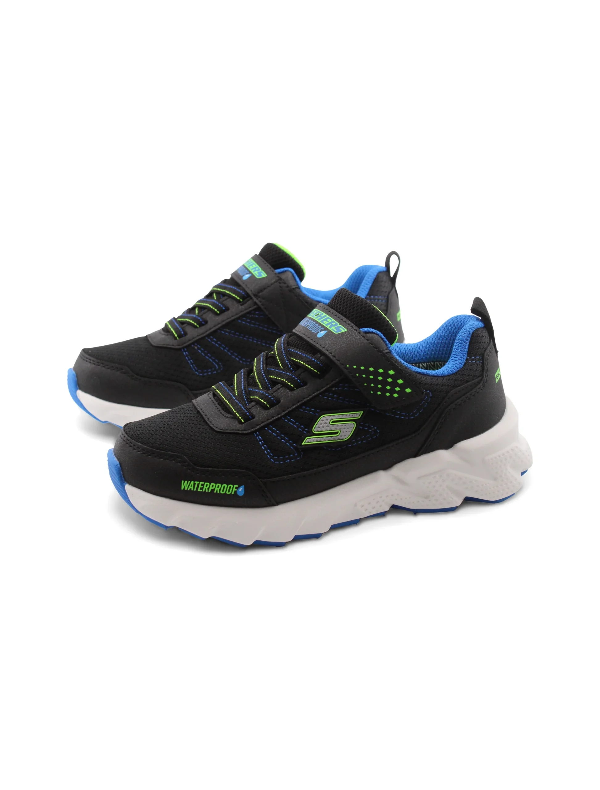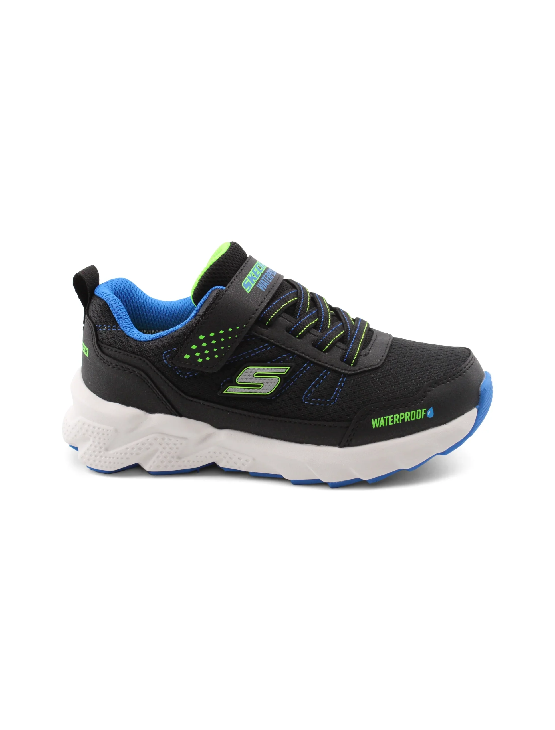 Le sneaker waterproof da bimbo di Skechers sono perfette per affrontare le avventure quotidiane con stile e comfort. La chiusura combinata di velcro e lacci elastici permette di indossarle facilmente, offrendo una vestibilitร sicura che si adatta perfettamente al piede.