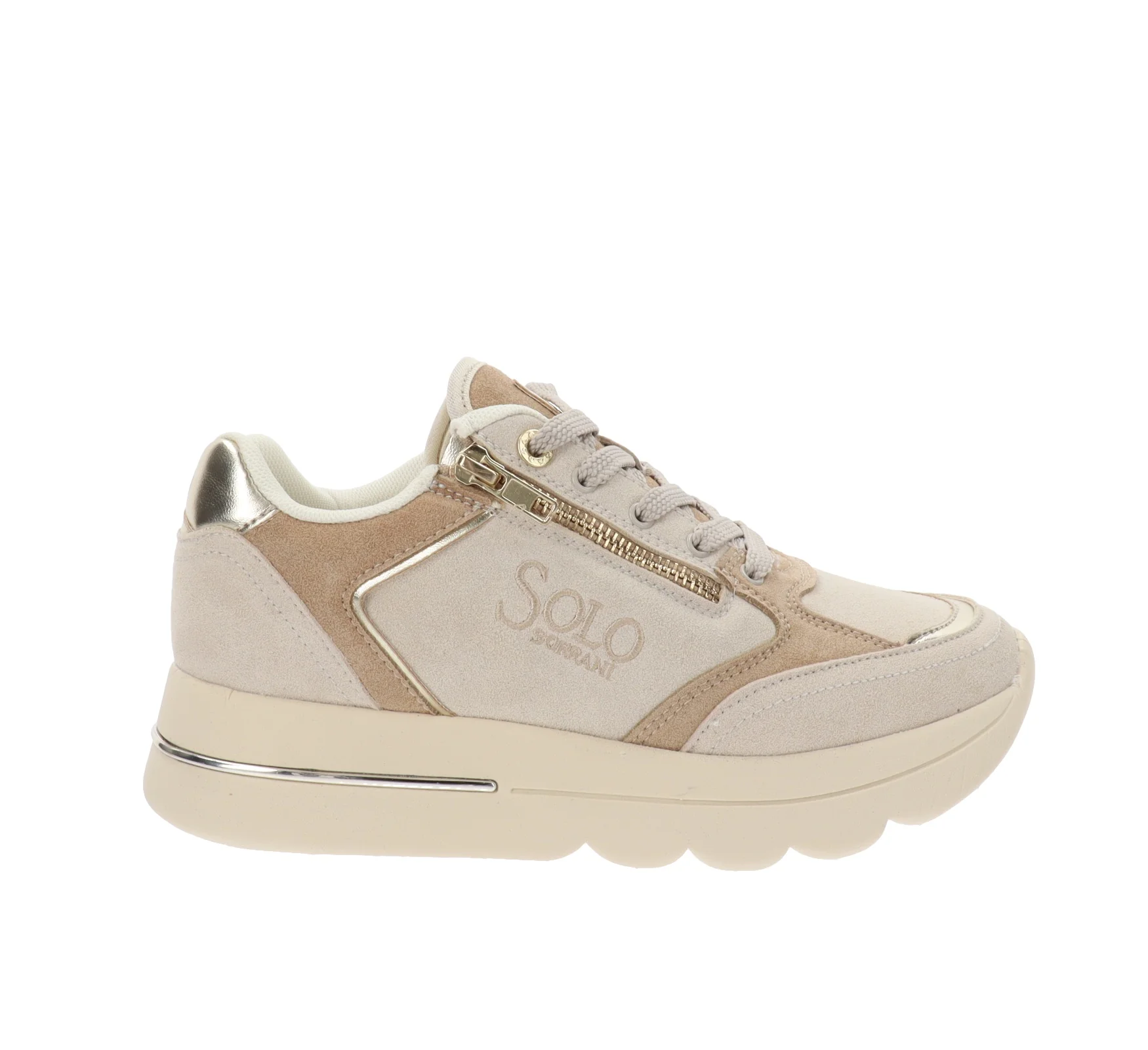Le sneakers Solo Soprani da donna in similpelle coniugano stile contemporaneo e comfort quotidiano. Realizzate con materiali sintetici di alta qualitร , garantiscono resistenza e facile manutenzione. Il design ergonomico assicura una calzata avvolgente, rendendole ideali per accompagnare ogni look con un tocco di sofisticatezza e praticitร .