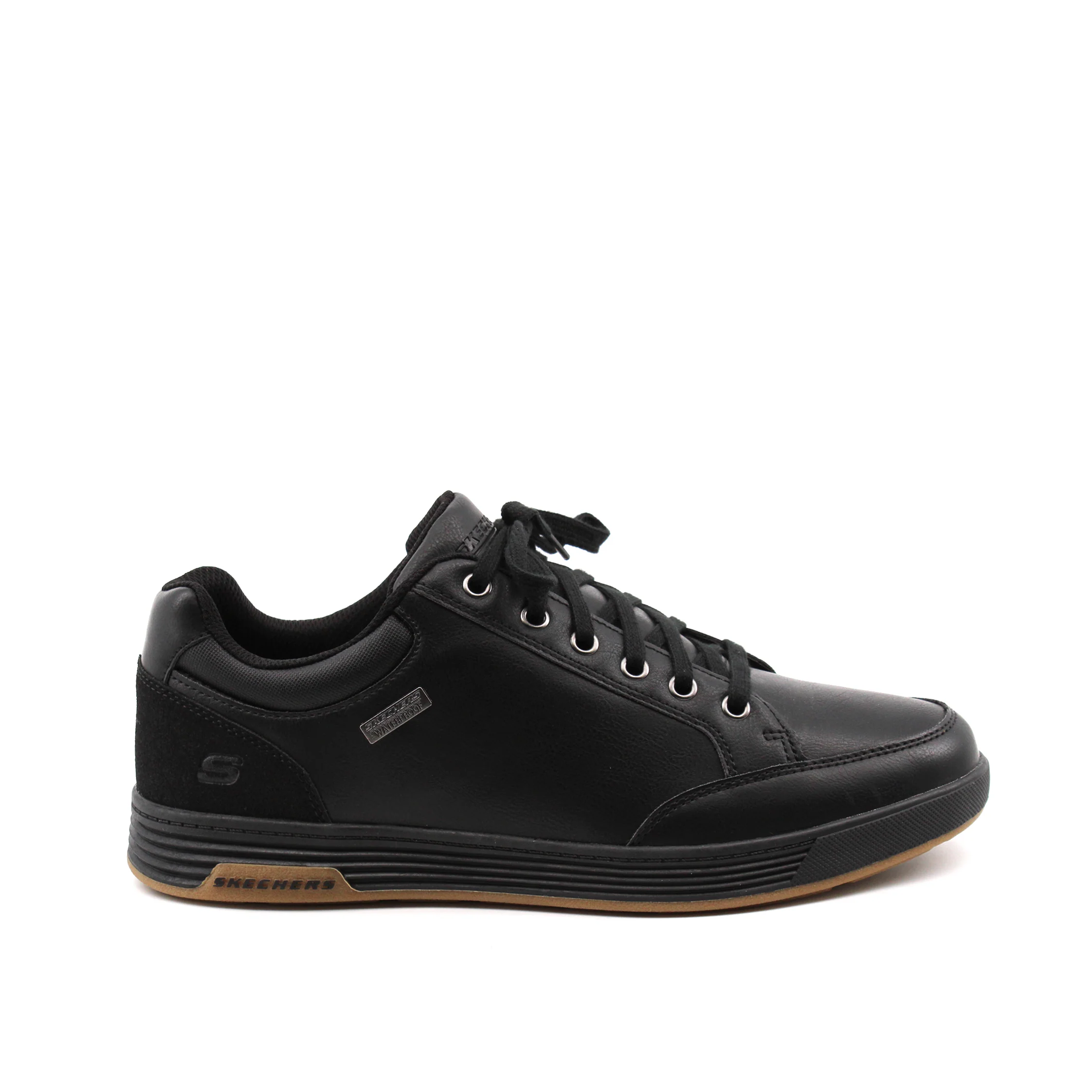 La scarpa Sparkman stringata waterproof da uomo di Skechers รจ pensata per chi cerca un equilibrio tra stile e comfort. Con un’altezza della suola di 3,5 cm, offre una leggera elevazione che si adatta perfettamente a diverse occasioni, sia per una passeggiata che per un’uscita informale.