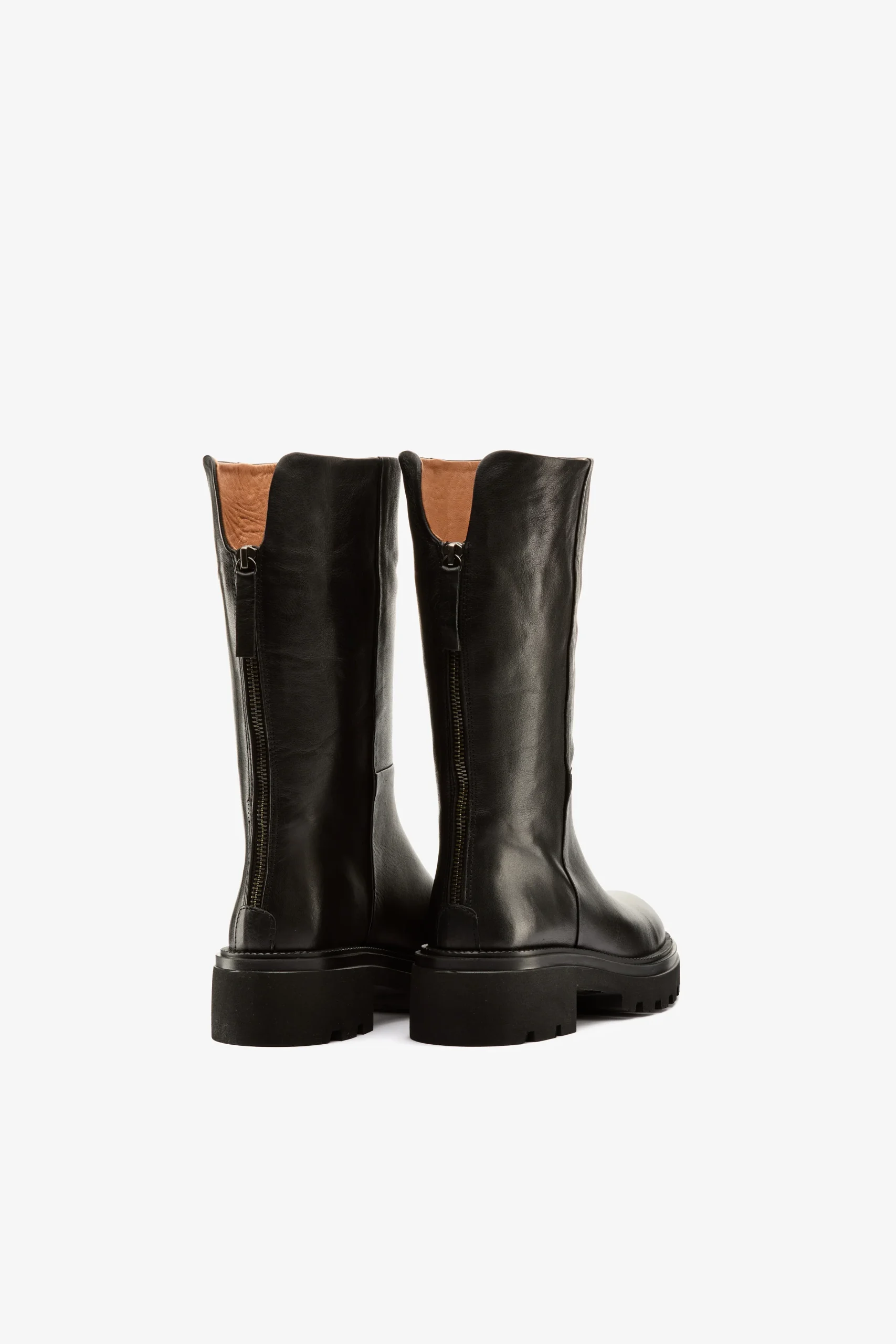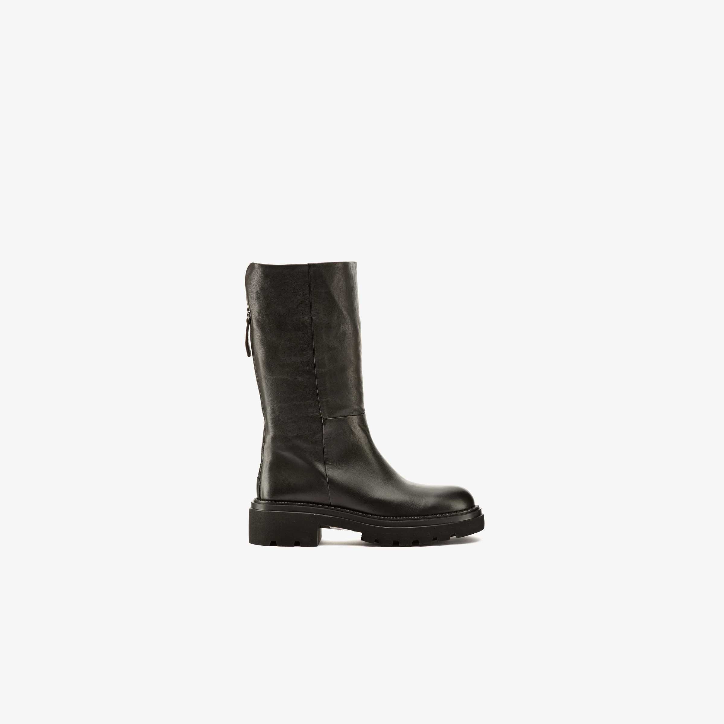Stivale biker al polpaccio in pelle nero, cerniera posteriore