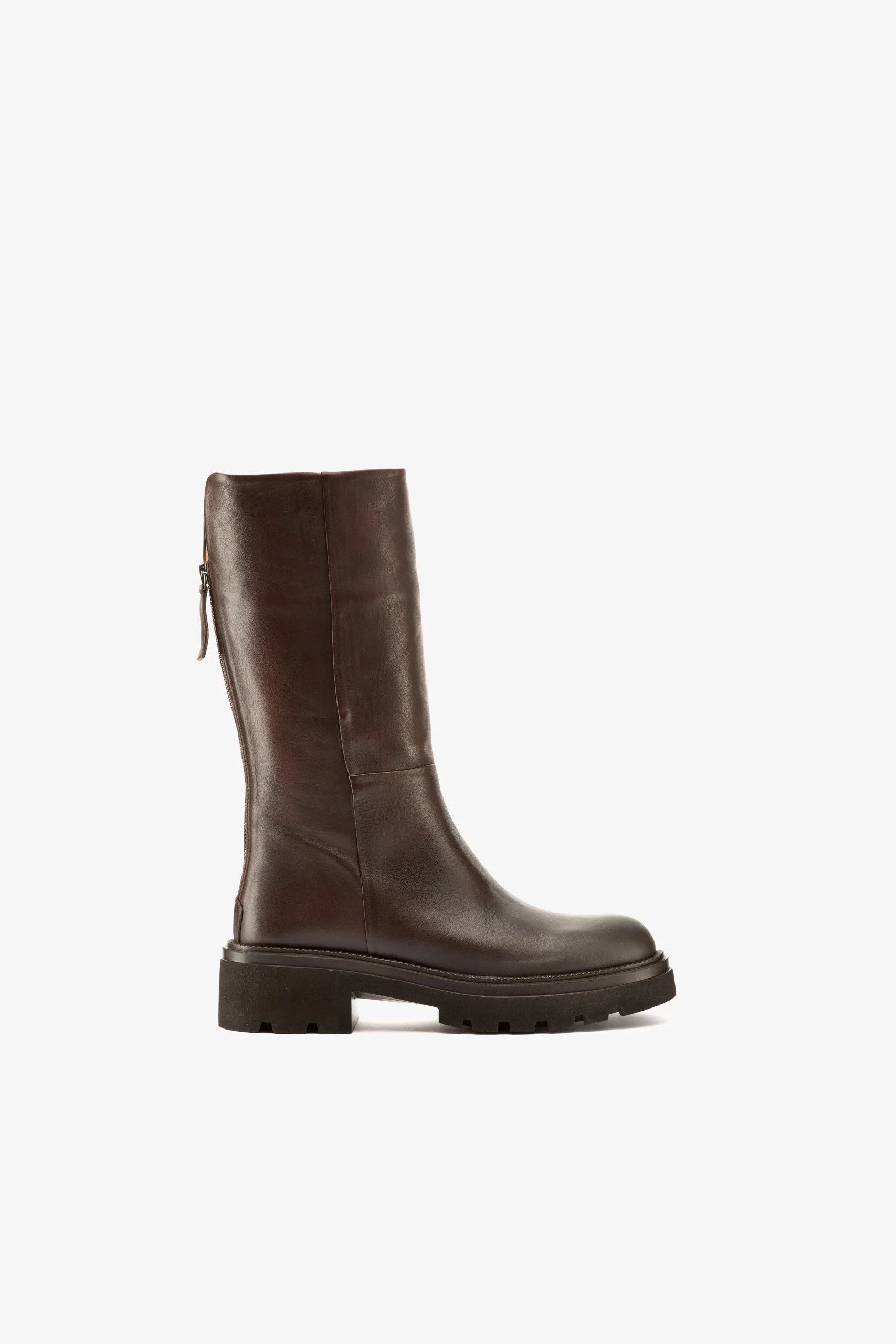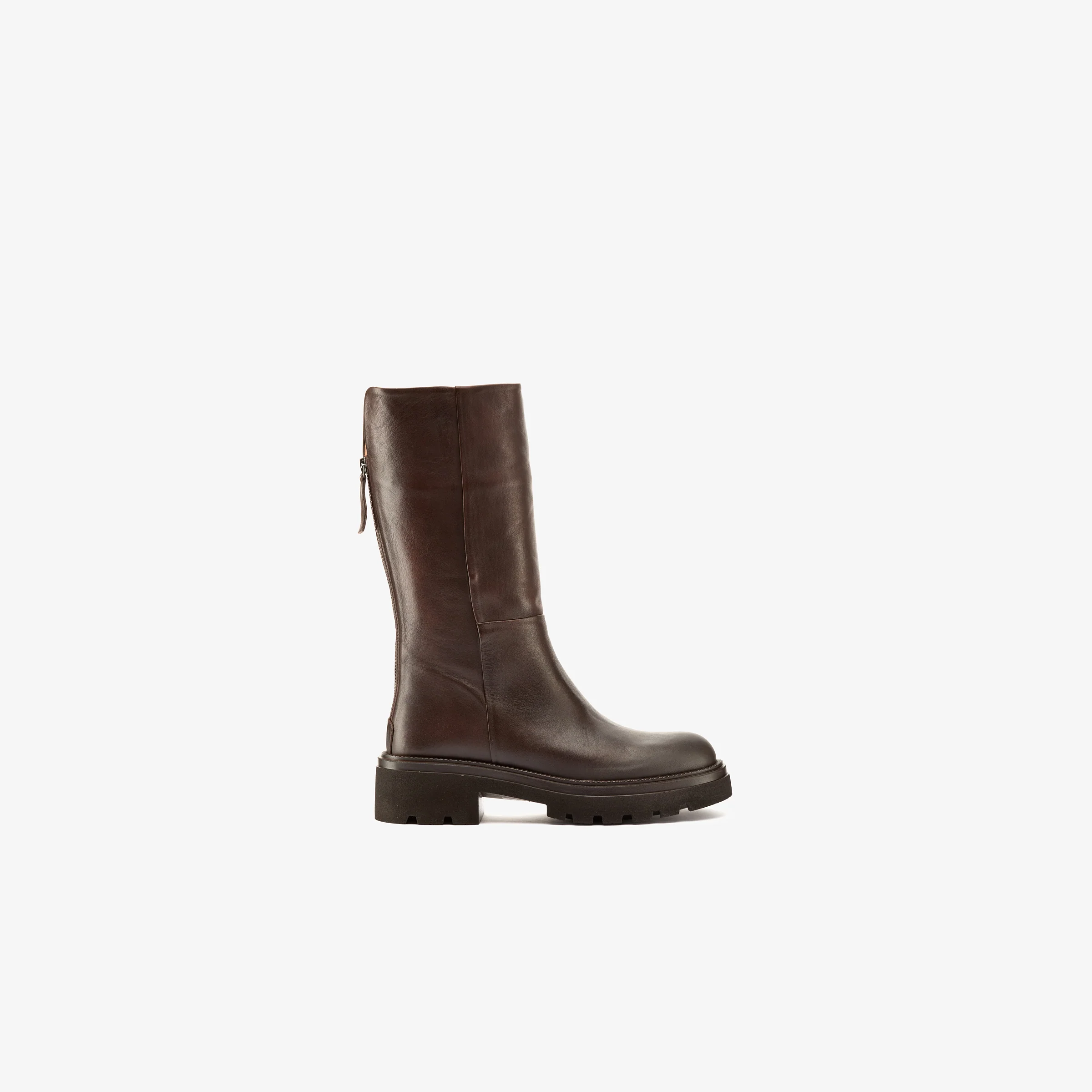 Stivale biker al polpaccio in pelle testa moro, cerniera posteriore