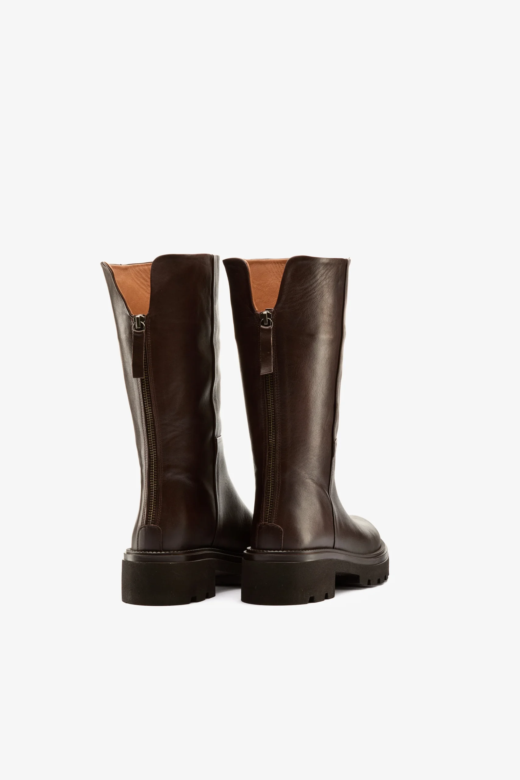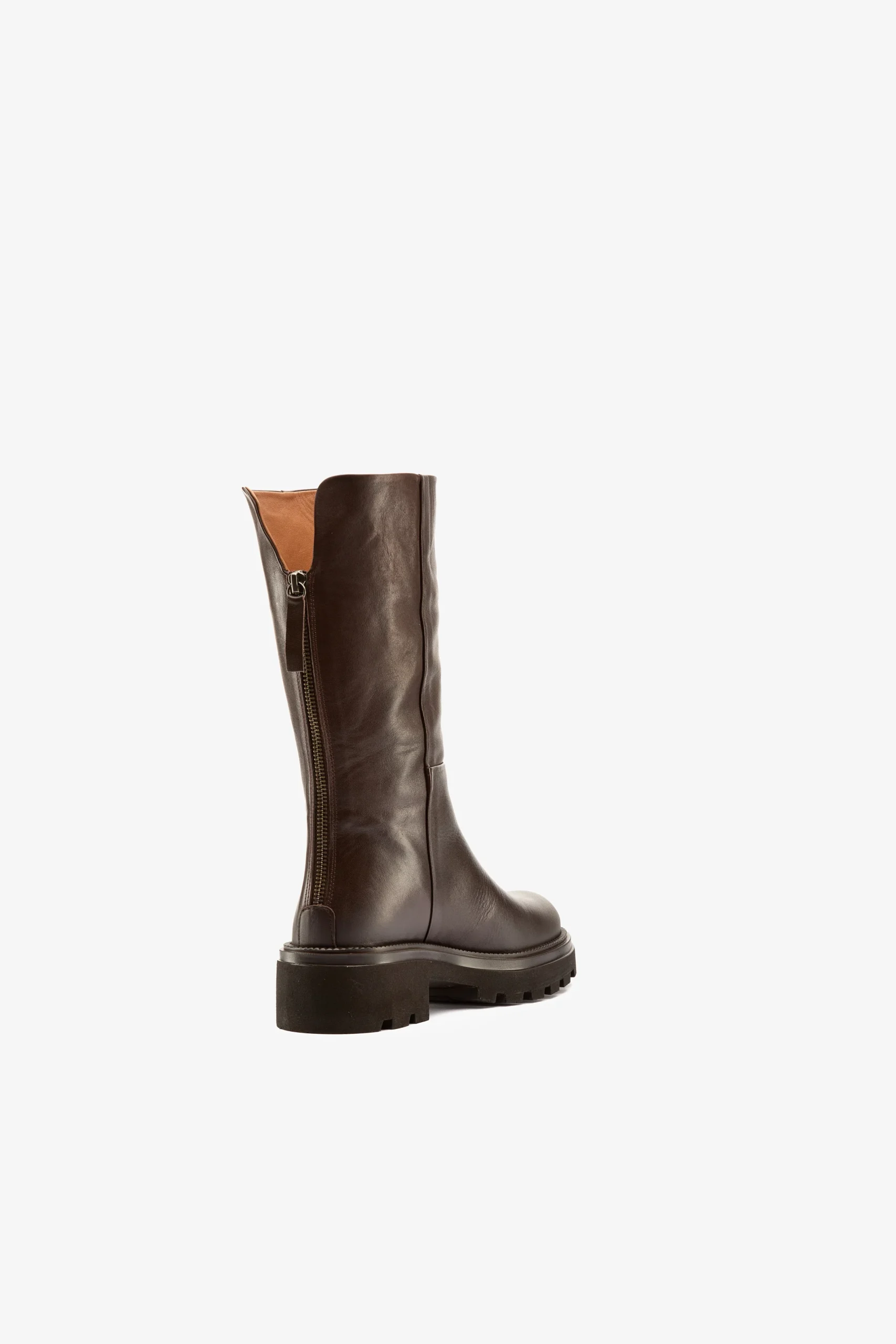Stivale biker al polpaccio in pelle testa moro, cerniera posteriore Sottopiede e fodera in pelle, suola in gomma Calzata regolare