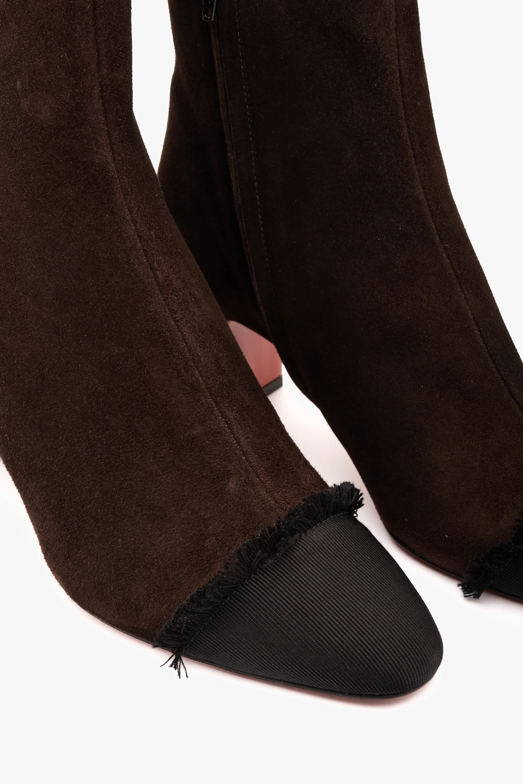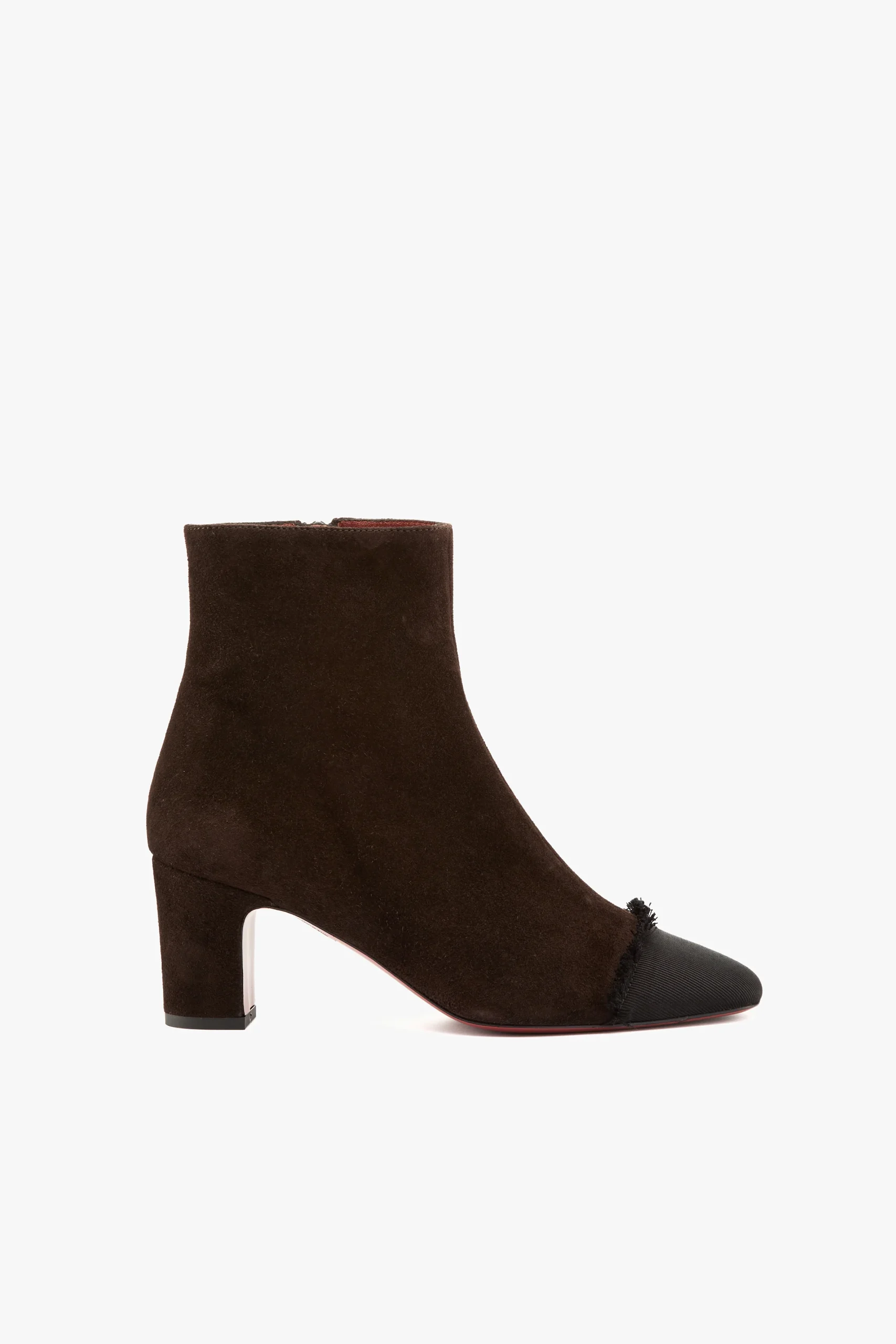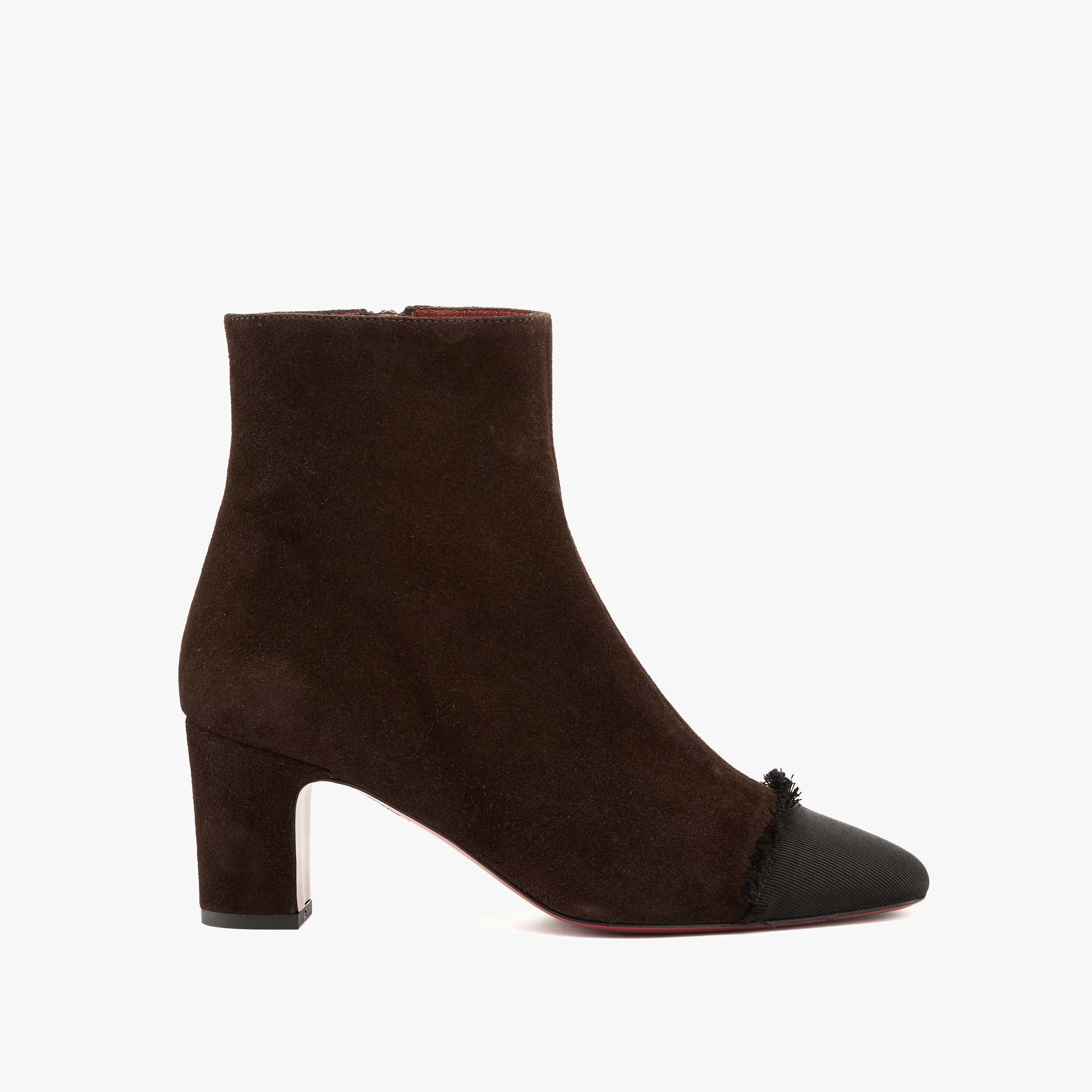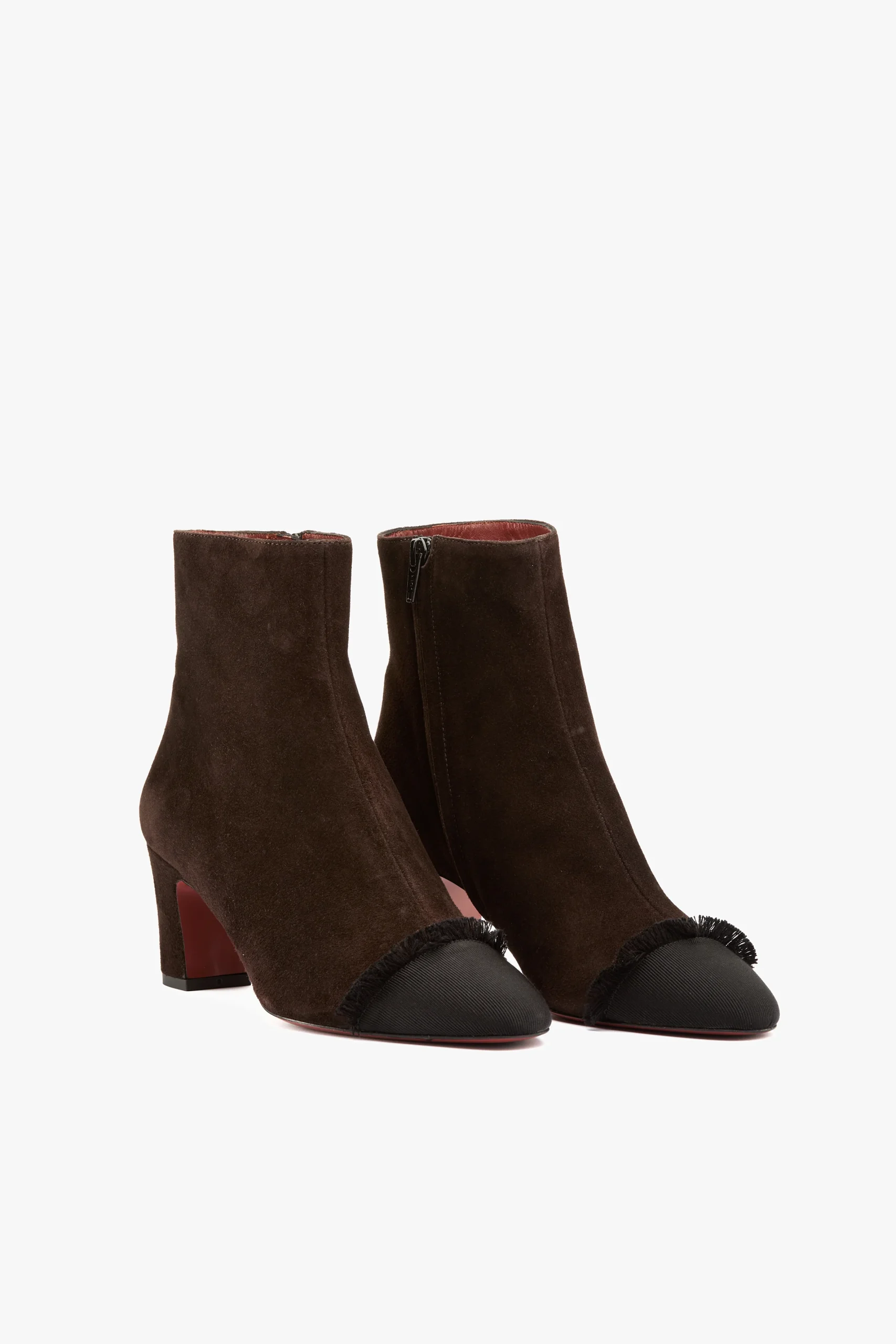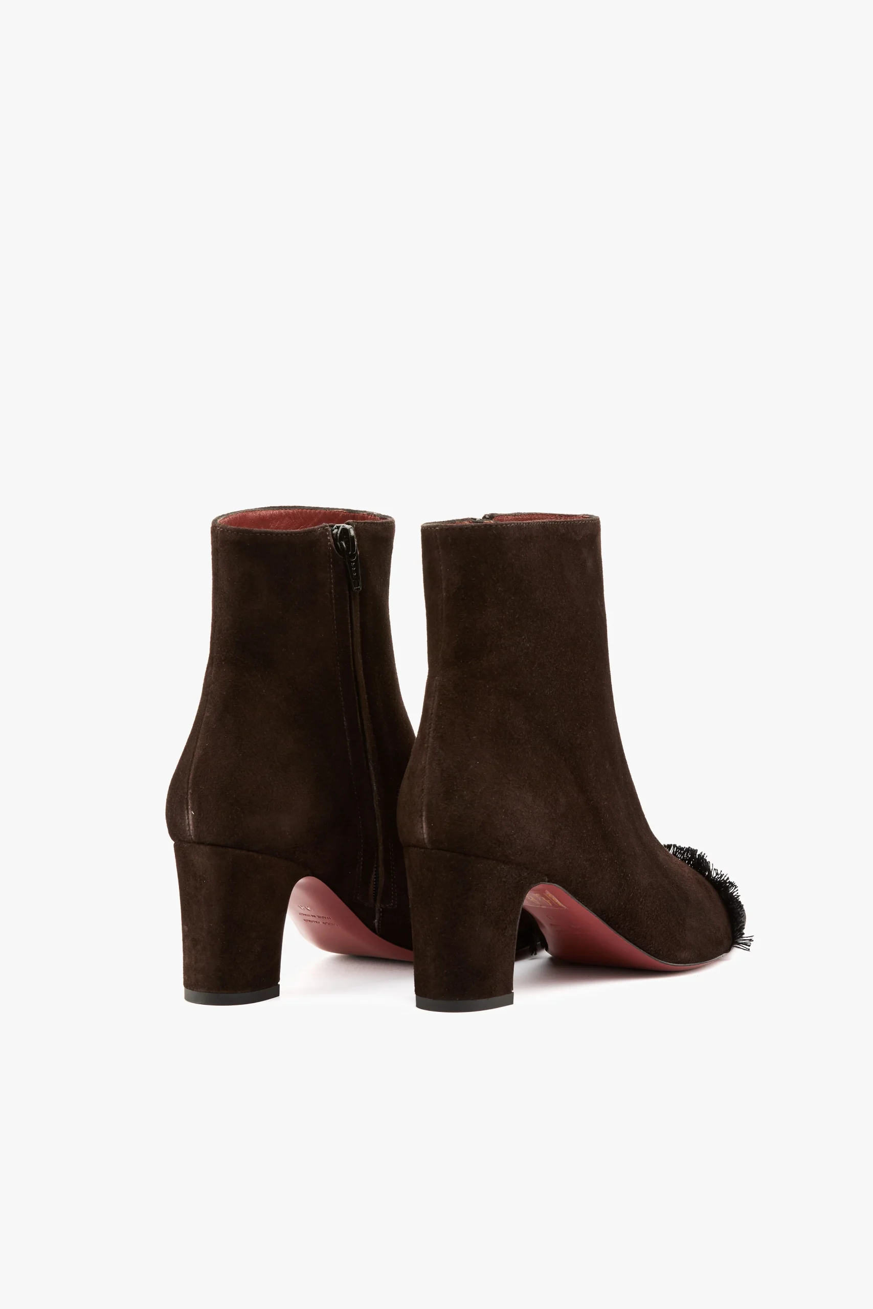 Stivaletto in camoscio testa moro con punta grò nera frange