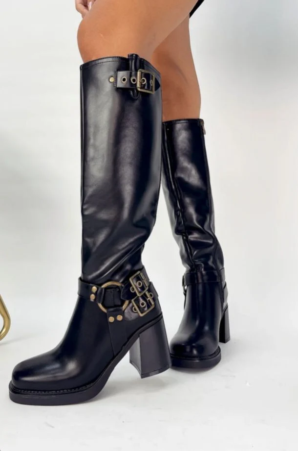 TAMIEKA-STIVALI IN ECOPELLE Stivale in ecopelle con fibbie e borchie, altezza tacco 8 cm e plateau 2 cm