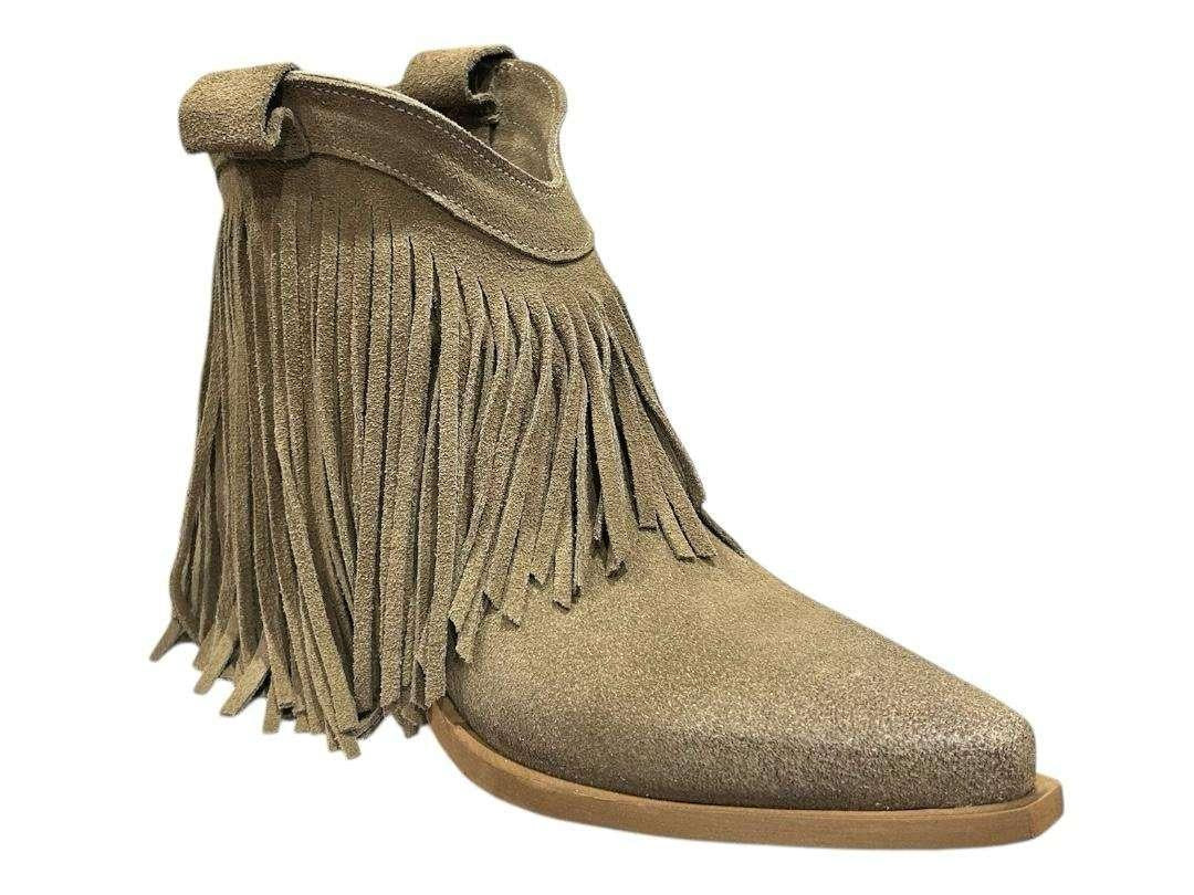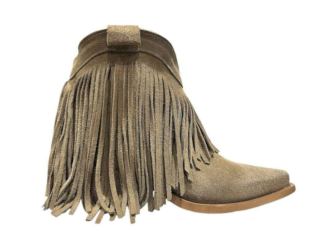 Stivali texani in camoscio con frange color tortora