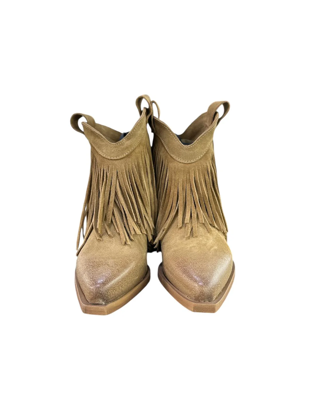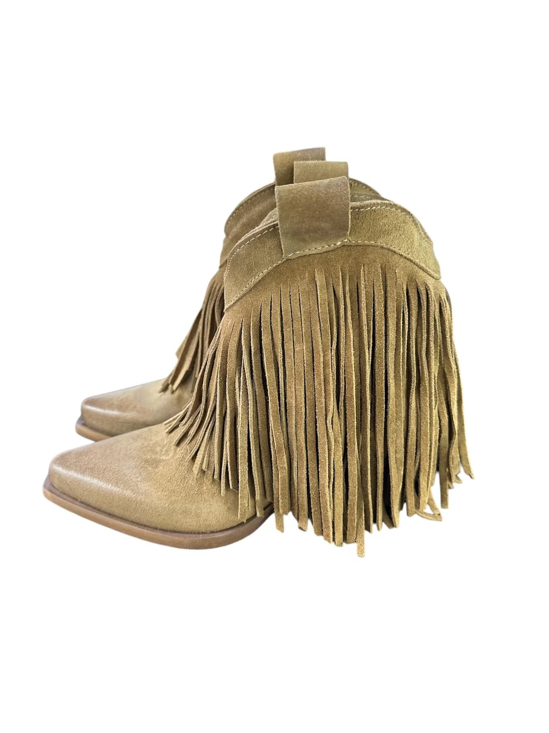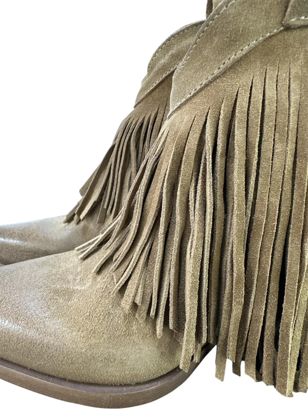 Stivali texani realizzati in camoscio morbidissimo con frange laterali Modello: stivali texani Materiale tomaia: camoscio Colore: tortoraFodera: ecopelle Soletta: pelle Suola: cuoio Tipologia punta: a punta
