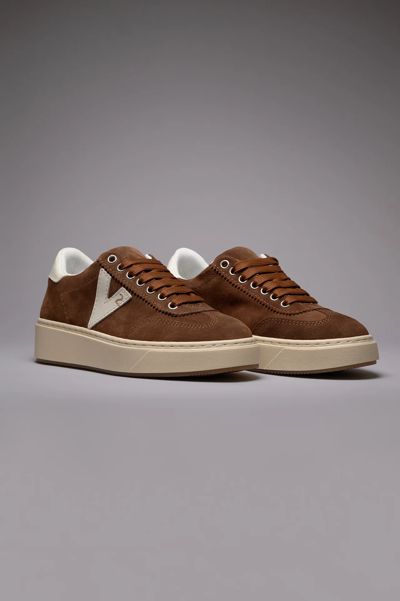 SUÈDE – Sneakers in pelle scamosciata Moro con inserti e retro Bianco