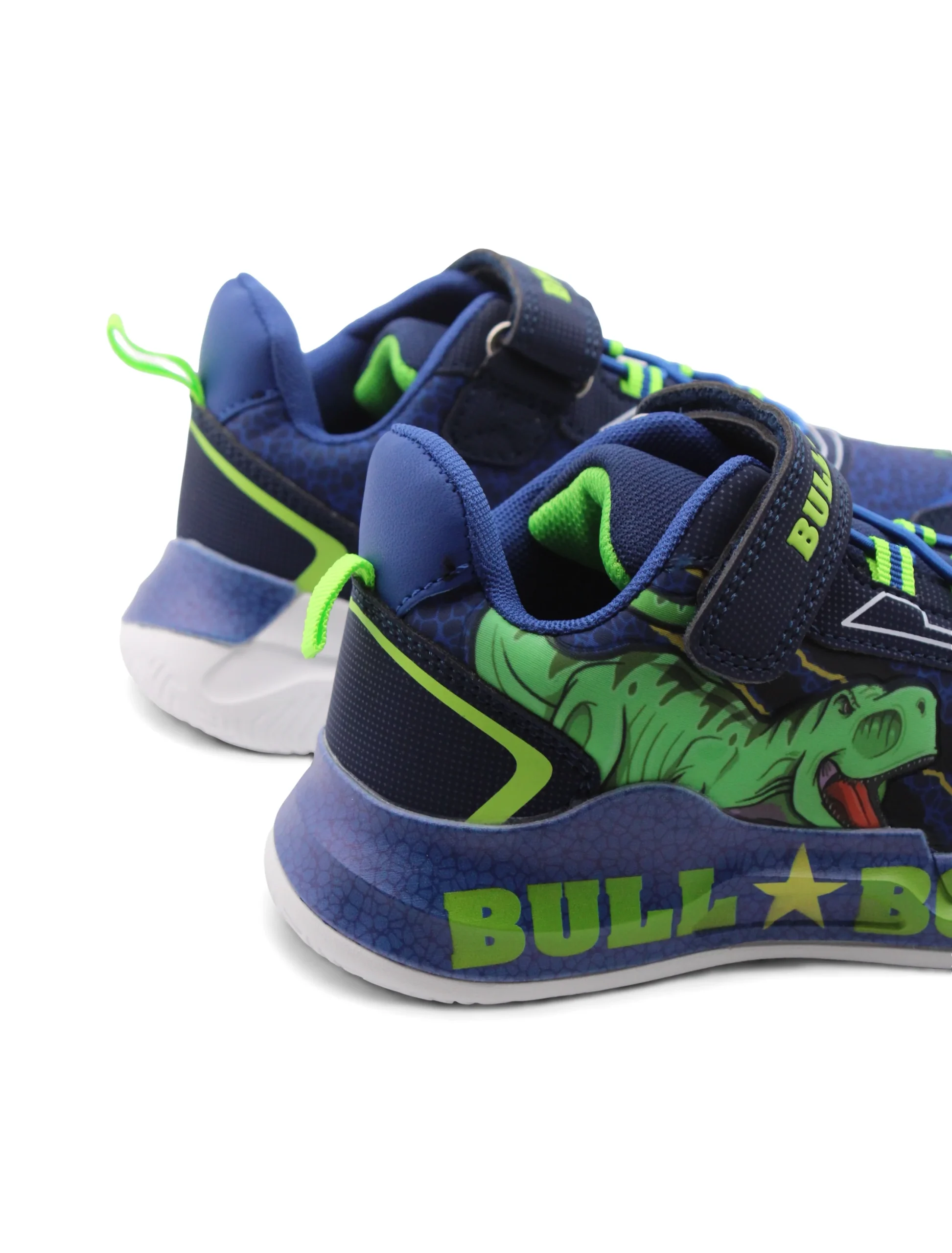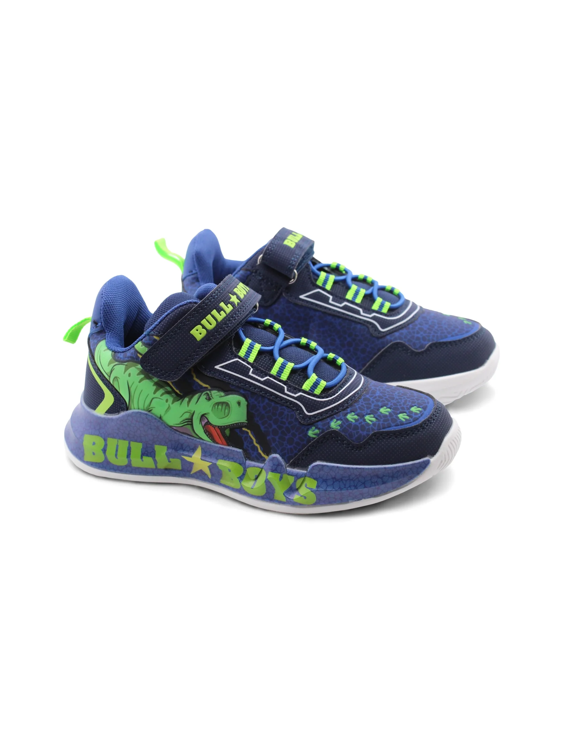 La sneaker T-Rex di Bull Boys รจ pensata per i piccoli esploratori che amano avventurarsi con stile e comfort. La chiusura combinata di velcro e lacci elastici rende facile e veloce indossarle, garantendo una calzata sicura e adattabile. Non dovrai piรน preoccuparti che i tuoi bimbi si tolgano le scarpe mentre giocano!