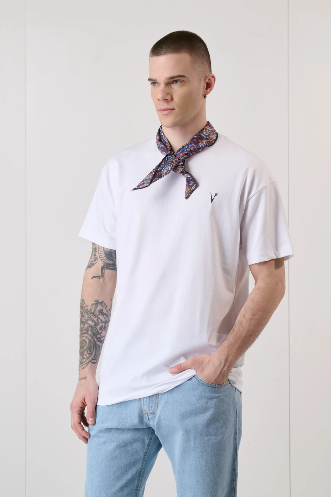 T-Shirt Bianca con Bandana in tessuto V2