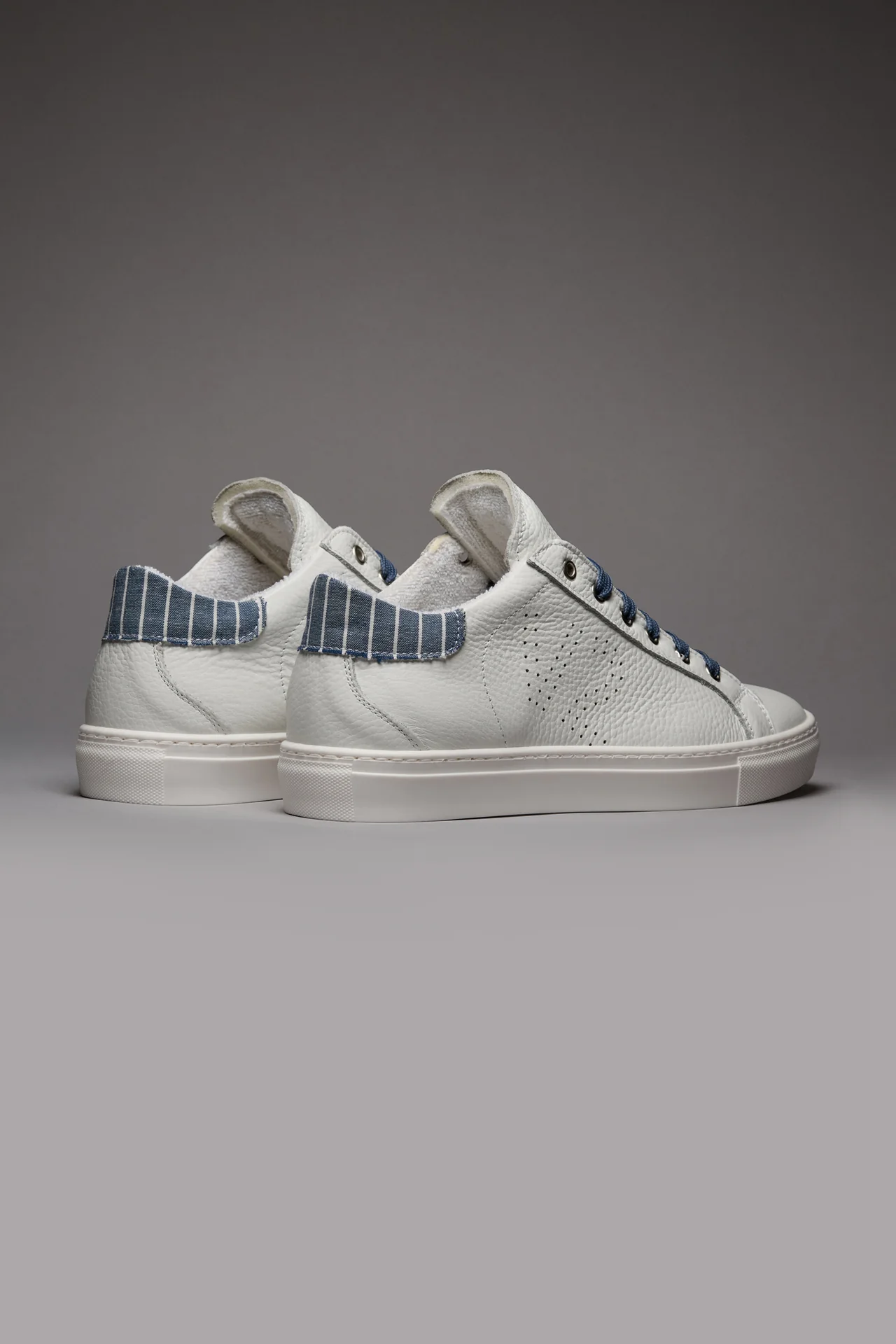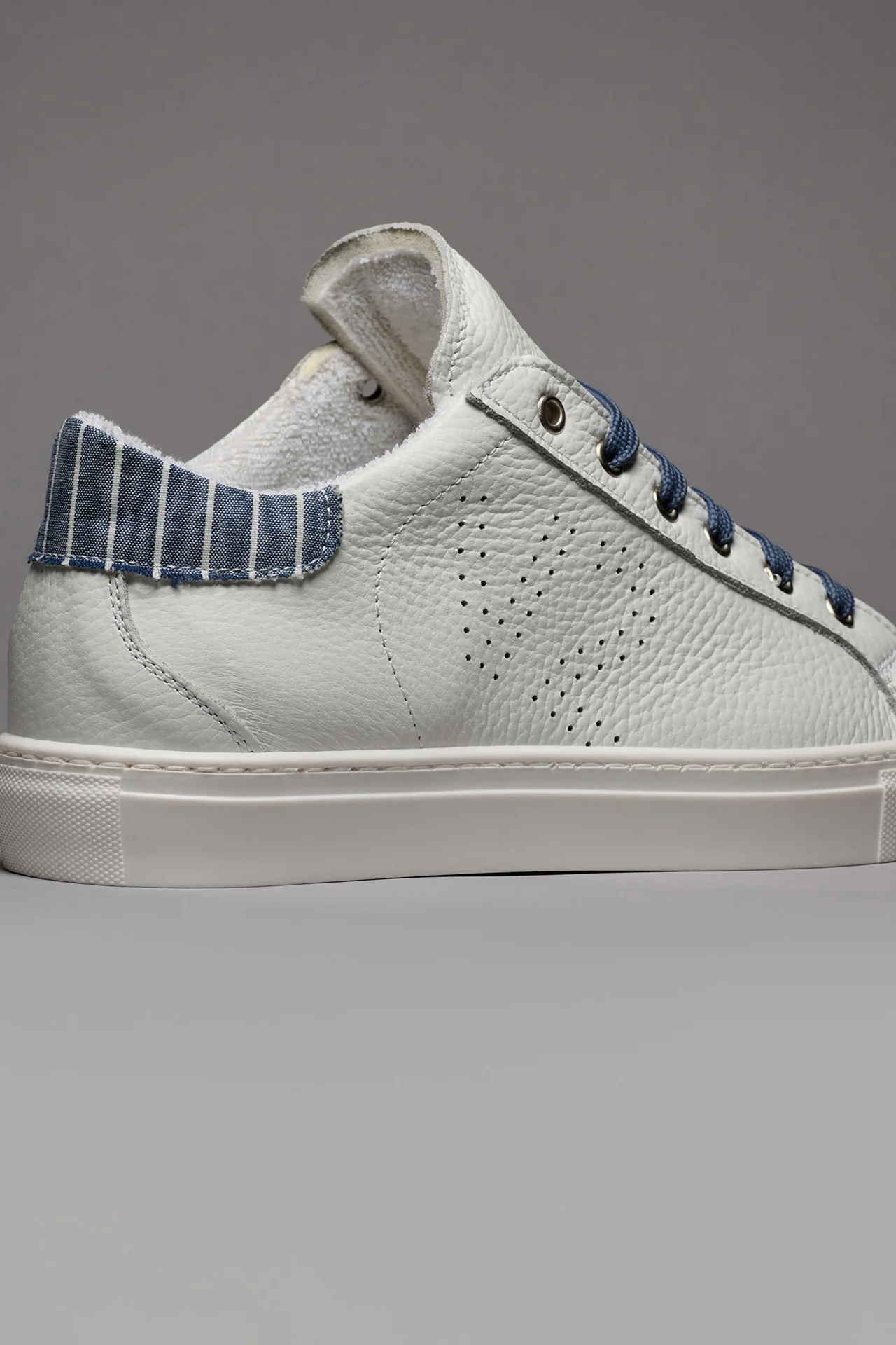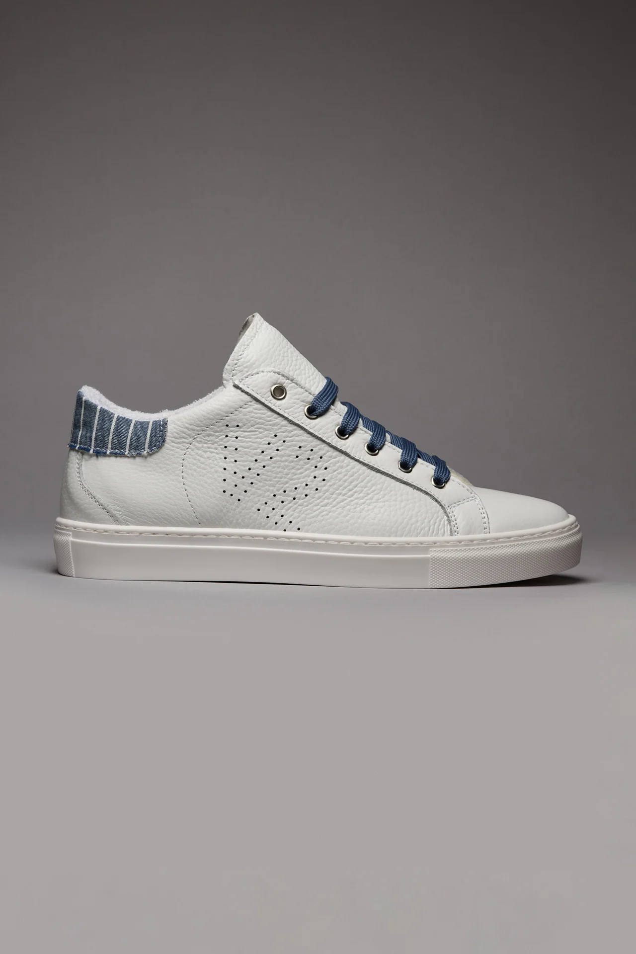 TENNIS – Sneakers a suola bassa Bianca con retro in tessuto Gessato Blu