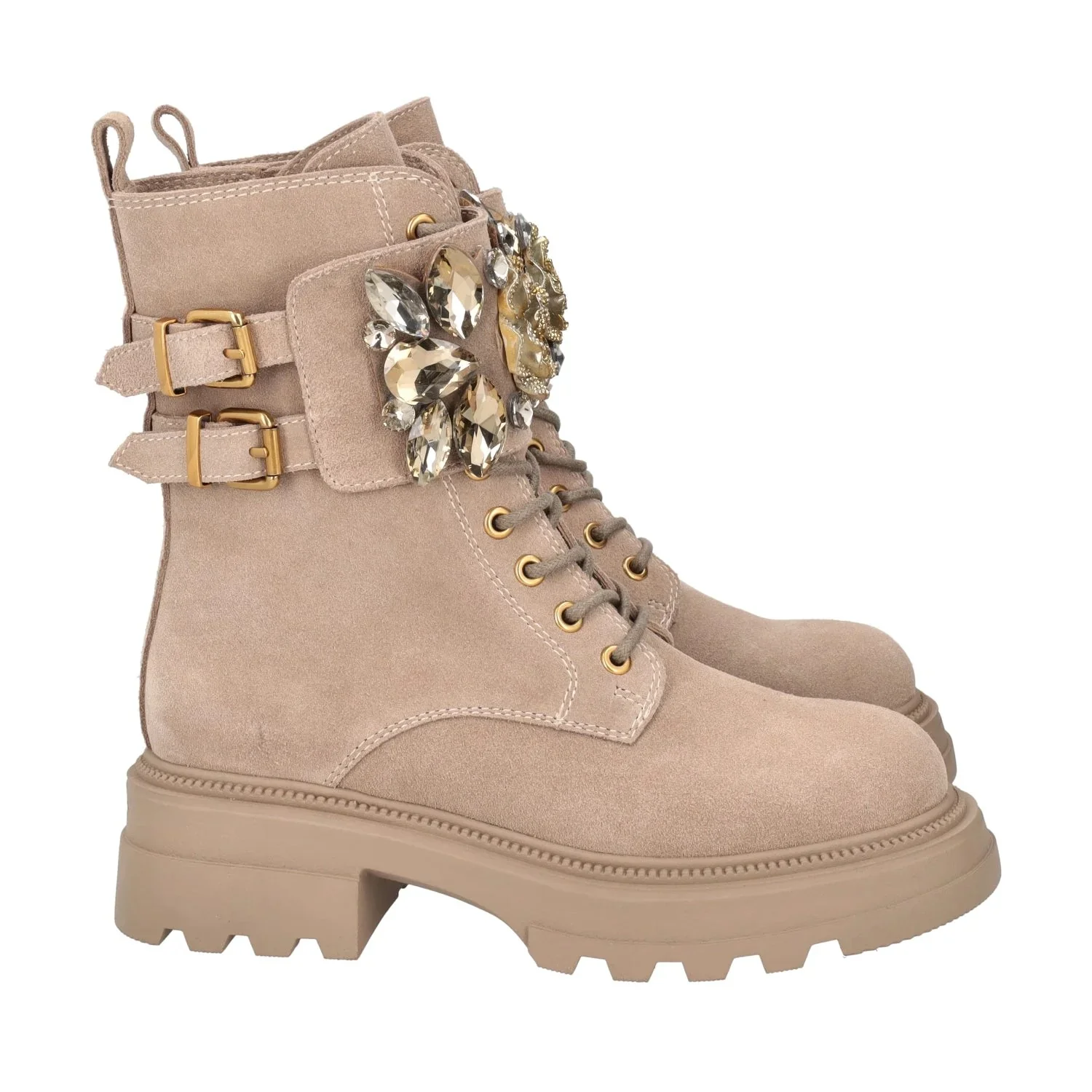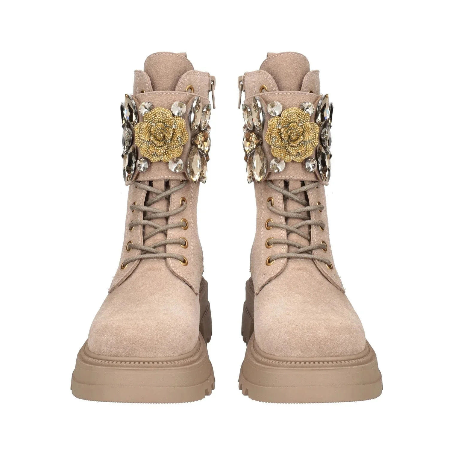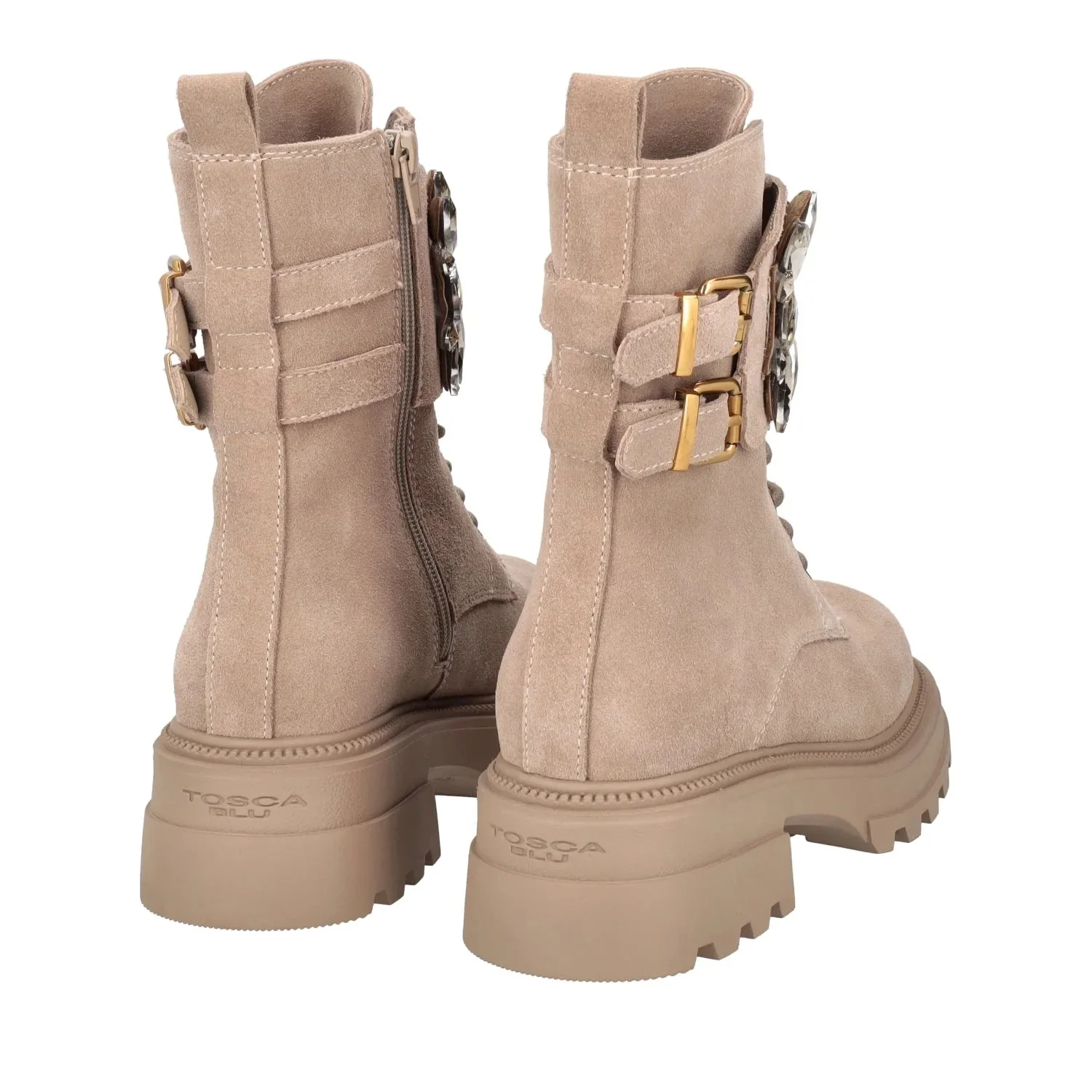 TOSCA BLU BEATLES SF2438S432(SUN VALLEY) BEIGE Anfibi eleganti con chiusura con zip laterale e stringhe, accessorio al centro, altezza tacco 4,5 cm
