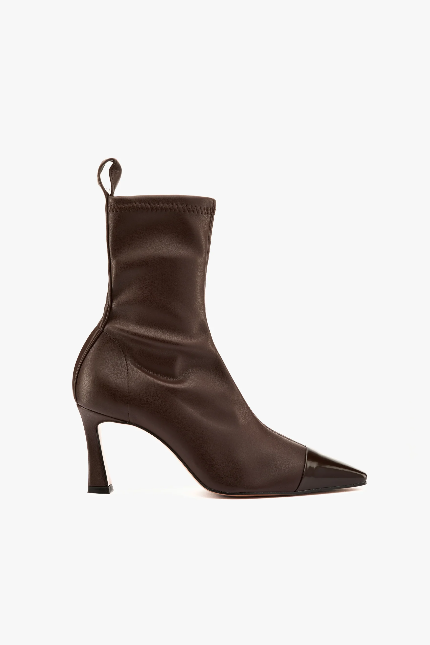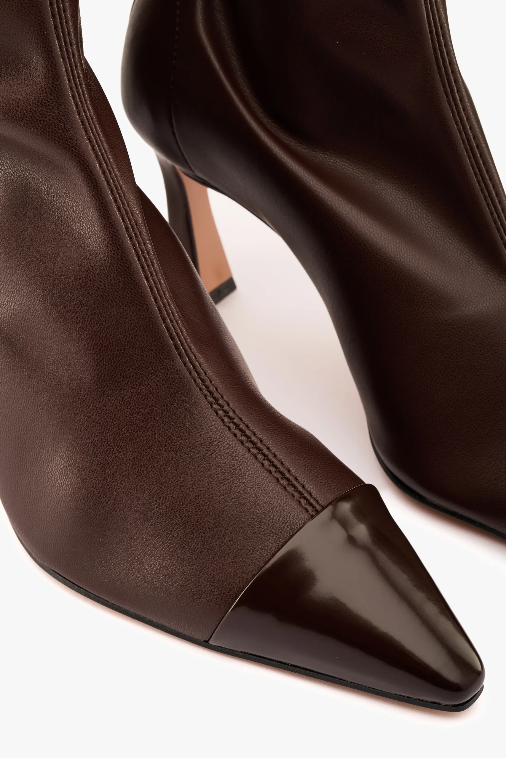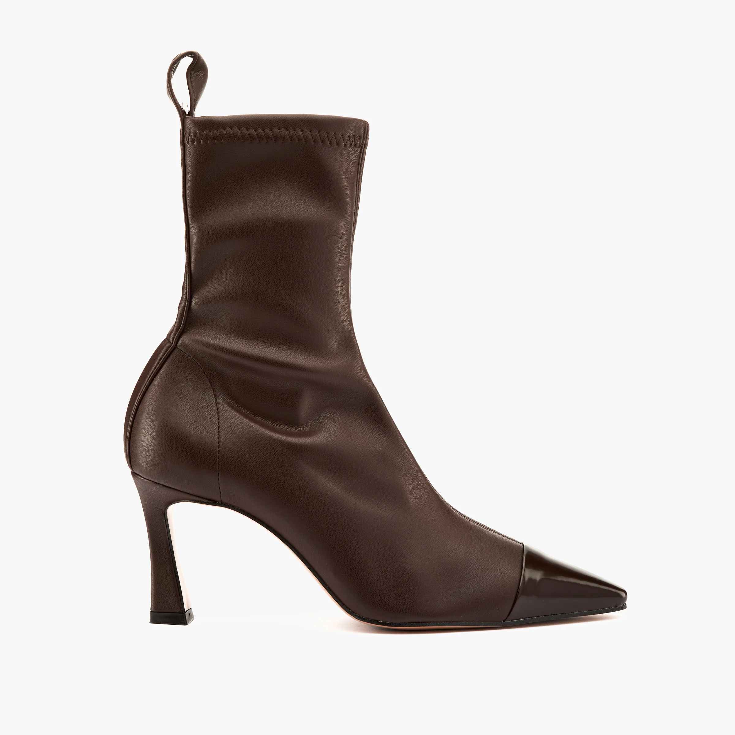 Tronchetto elasticizzato in pelle vegetale caffè punta vernice
