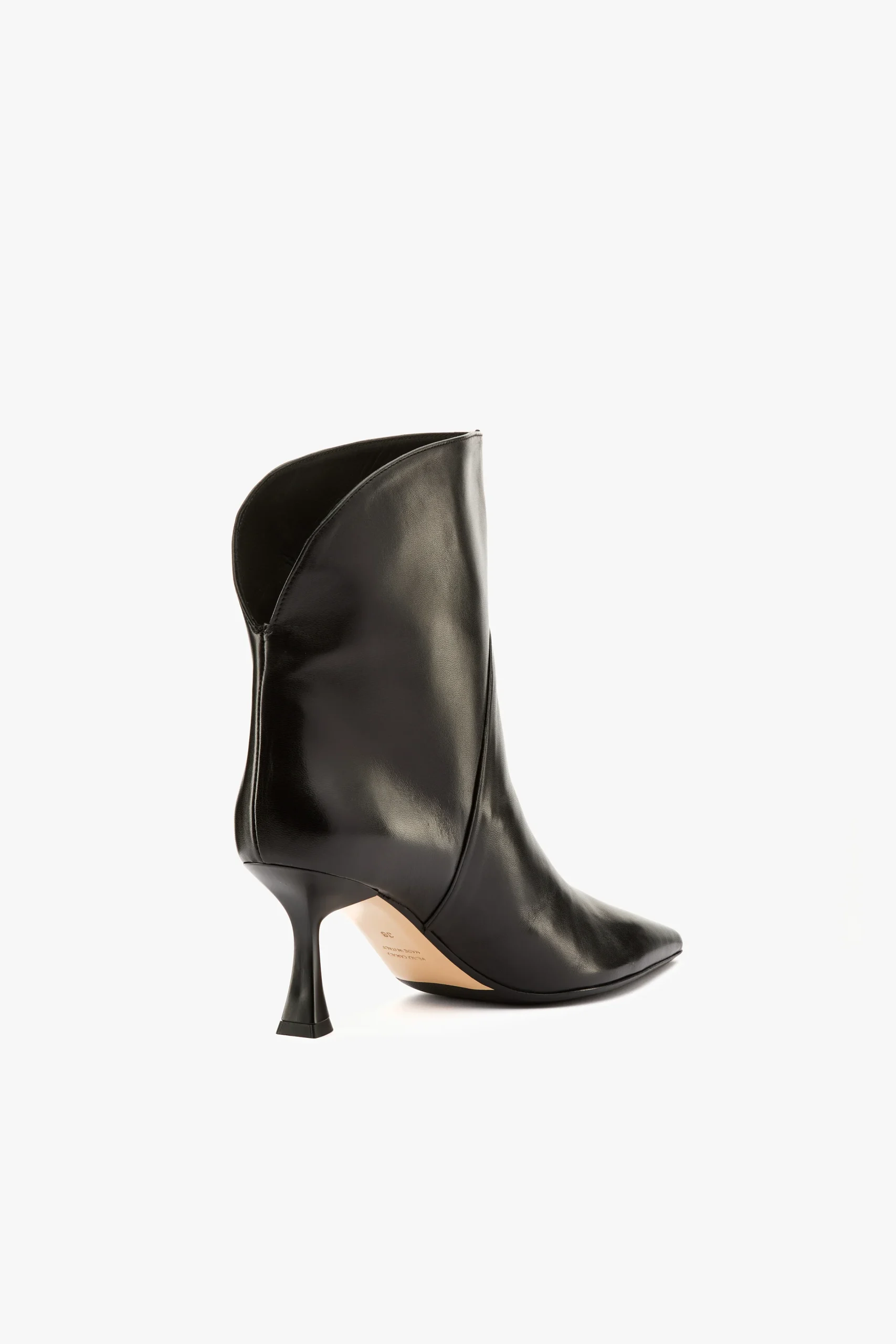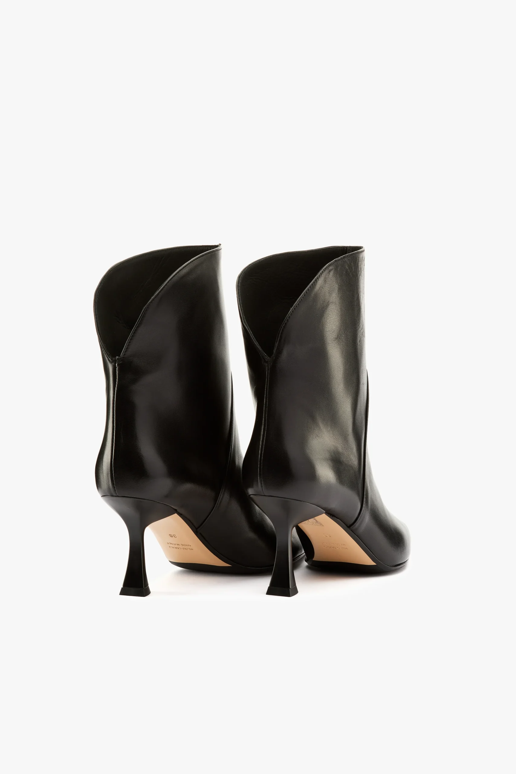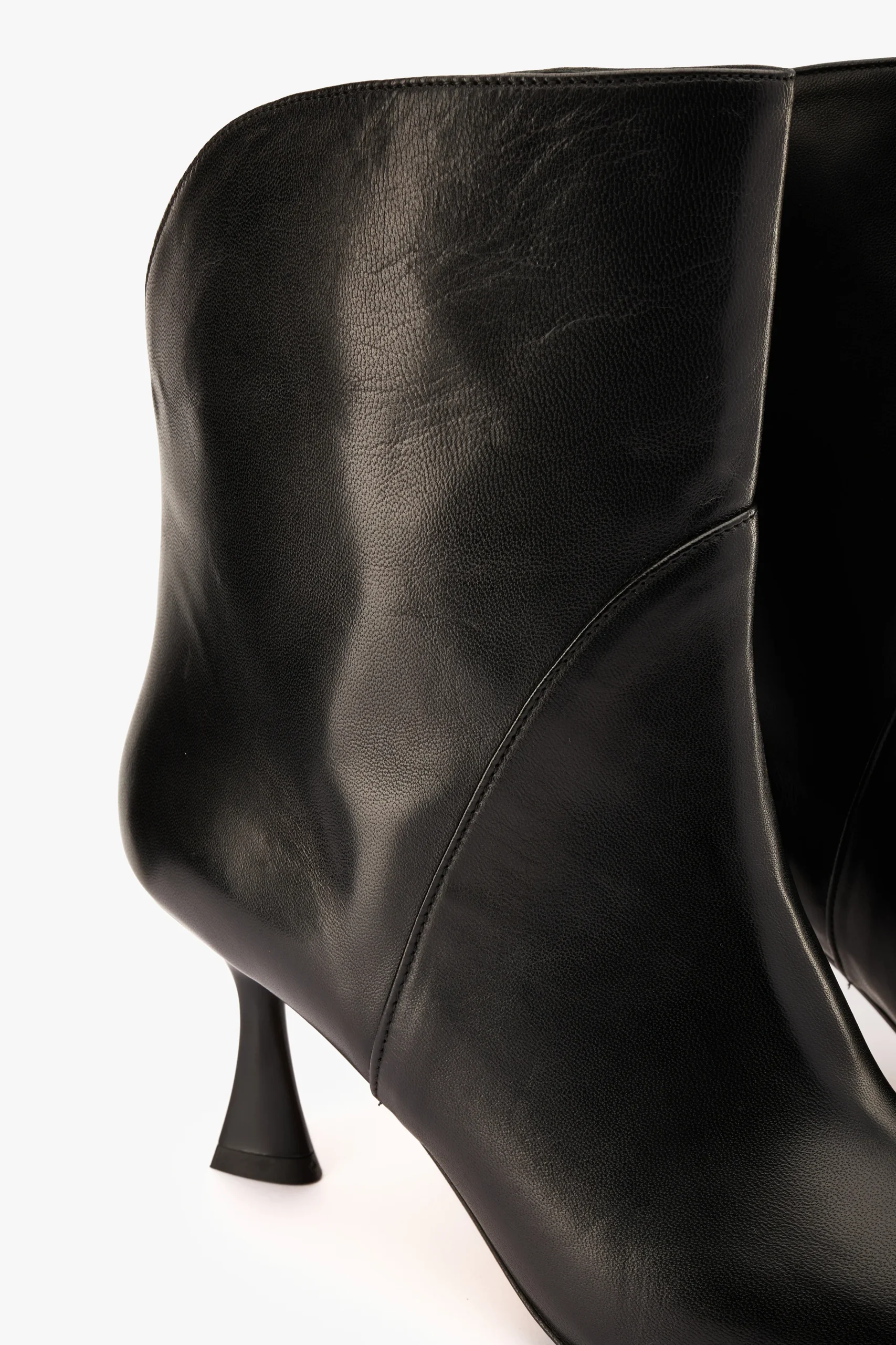 Tronchetto in nappa nero con dettaglio posteriore Sottopiede e fodera in pelle, suola in gomma Altezza tacco 7 cm Made in Italy Calzata regolare