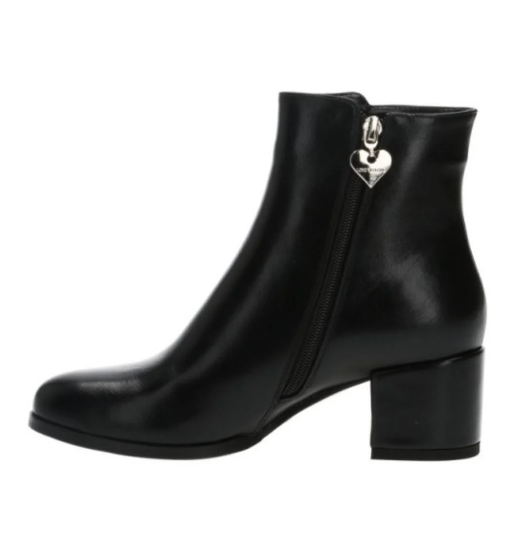 Tronchetto con interno foderato, chiusura a zip , punta tonda, tacco quadrato , suola in gomma, altezza tacco 7 cm